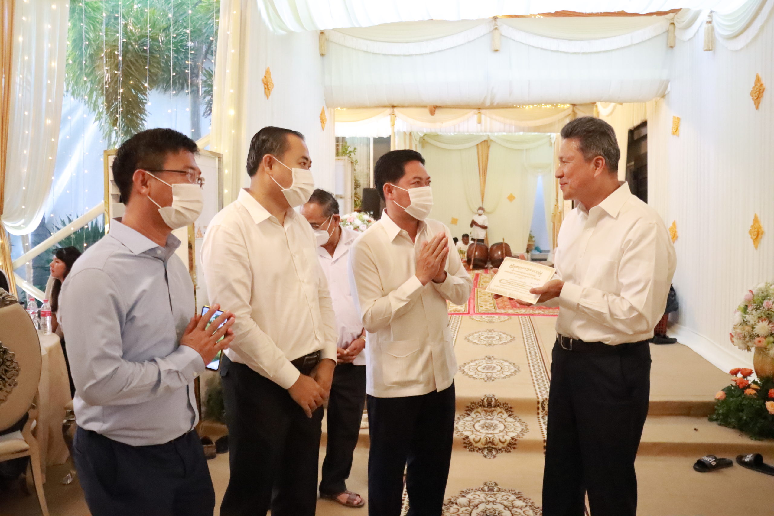 (ភ្នំពេញ)៖ នារសៀលថ្ងៃព្រហស្បតិ៍ ទី០៨ ខែធ្នូ ឆ្នាំ២០២២នេះ ឯកឧត្តម សុខ សំអាត អនុរដ្ឋលេខាធិការក្រសួងមុខងារសាធារណៈ តំណាងដ៏ខ្ពង់ខ្ពស់ ឯកឧត្តមរដ្ឋមន្ត្រី ព្រុំ សុខា បានដឹកនាំប្រតិភូក្រសួងមុខងារសាធារណៈ ចូលរួមបុណ្យខួបគម្រប់១០០ថ្ងៃ ឧទ្ទិសមហាកុសលជូនចំពោះដួងវិញ្ញាណក្ខន្ធ មហាវិរិយាភិរ័ក្ខសិរី អគ្គមហាឧបាសកពុទ្ធសាសនូបត្ថម្ភក៍ ខេរ៉ូ ស៊ុនស្រេង ដែលត្រូវជាឪពុកបង្កើត របស់ឯកឧត្តមទេសរដ្ឋមន្ដ្រី ស៊ុន ចាន់ថុល រដ្ឋមន្ត្រីក្រសួងសាធារណការ និងដឹកជញ្ជូន នៅផ្ទះលេខ១៧ ផ្លូវលេខ៦០៤ សង្កាត់បឹងកក់២ ខណ្ឌទួលគោក រាជធានីភ្នំពេញ៕