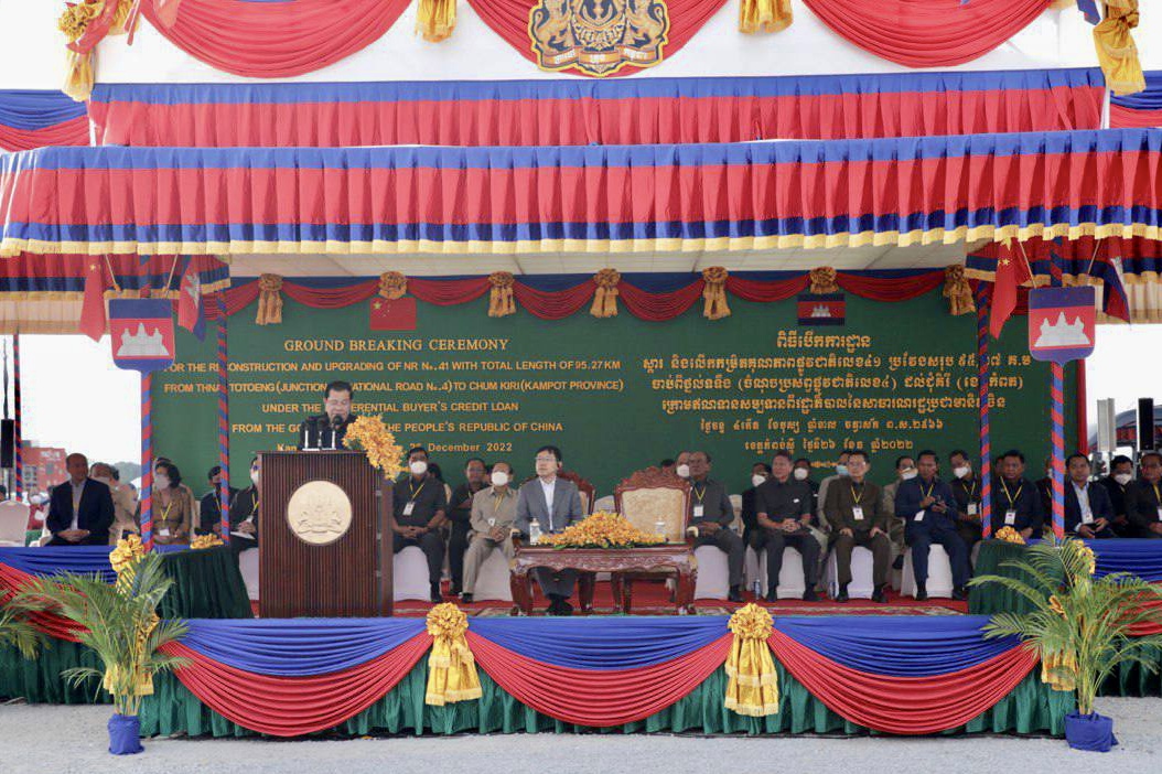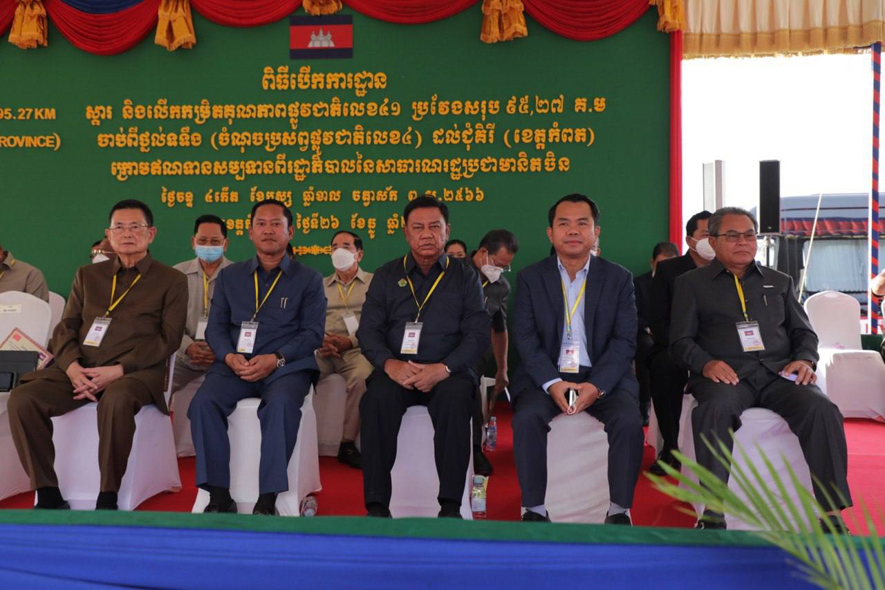 (កំពង់ស្ពឺ)៖ នៅព្រឹក ថ្ងៃចន្ទ ៤កើត ខែបុស្ស ឆ្នាំខាល ចត្វាស័ក ព.ស. ២៥៦៦ ត្រូវនឹង ថ្ងៃទី២៦ ខែធ្នូ ឆ្នាំ២០២២ នេះ សម្ដេចអគ្គមហាសេនាបតីតេជោ ហ៊ុន សែន នាយករដ្ឋមន្ត្រី នៃព្រះរាជាណាចក្រកម្ពុជា រួមជាមួយនឹង ឯកឧត្ដម វ៉ាង វិនធៀន ឯកអគ្គរដ្ឋទូតនៃសាធារណរដ្ឋប្រជាមានិតចិន ប្រចាំ​នៅ​កម្ពុជា បានអញ្ជើញជាអធិបតីក្នុងពិធីបើកការដ្ឋាន​សាង​សង់​ លើកម្រិតគុណភាពផ្លូវជាតិលេខ៤១ មាន​ប្រវែង​ជាង​​៩៥ គីឡូម៉ែត្រ។ ក្នុងពិធីនេះ ក៏វត្តមាន​ឯកឧត្តមរដ្ឋមន្រ្តីក្រសួង​មុខងារ​​សាធារណៈ ចូលរួមផងដែរ៕