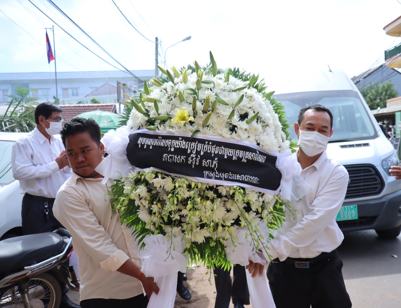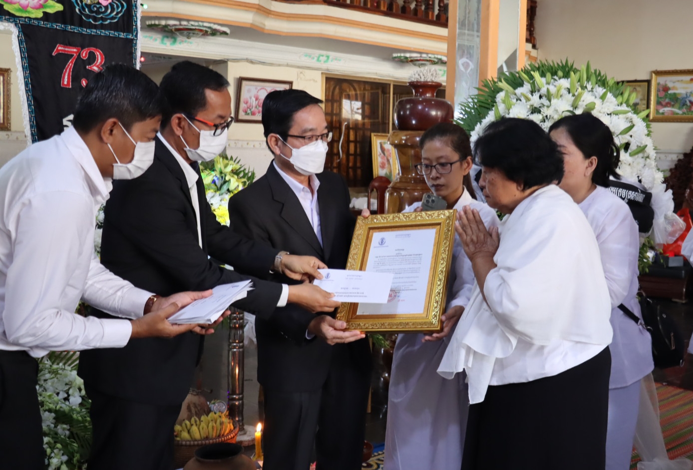 ប្រតិភូក្រសួងមុខងារសាធារណៈ អញ្ជើញចូលរួមគោរពវិញ្ញាណក្ខន្ធ ឧបាសក អ៉ីវ សុភុំ ដែលត្រូវជាឪពុកបង្កើតរបស់កញ្ញា អ៉ីវ សុជាតា អនុប្រធាននាយកដ្ឋានហិរញ្ញវត្ថុនិងផ្គត់ផ្គង់