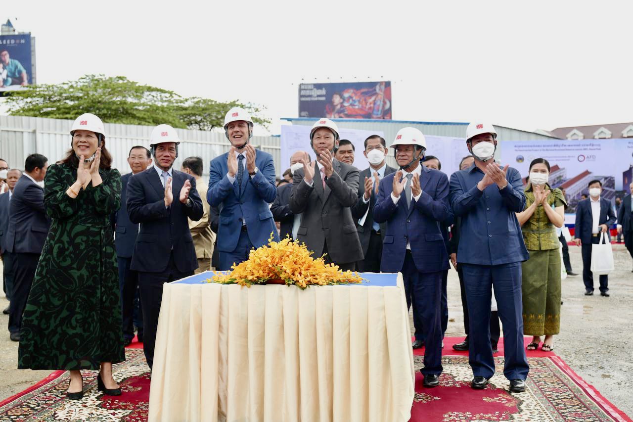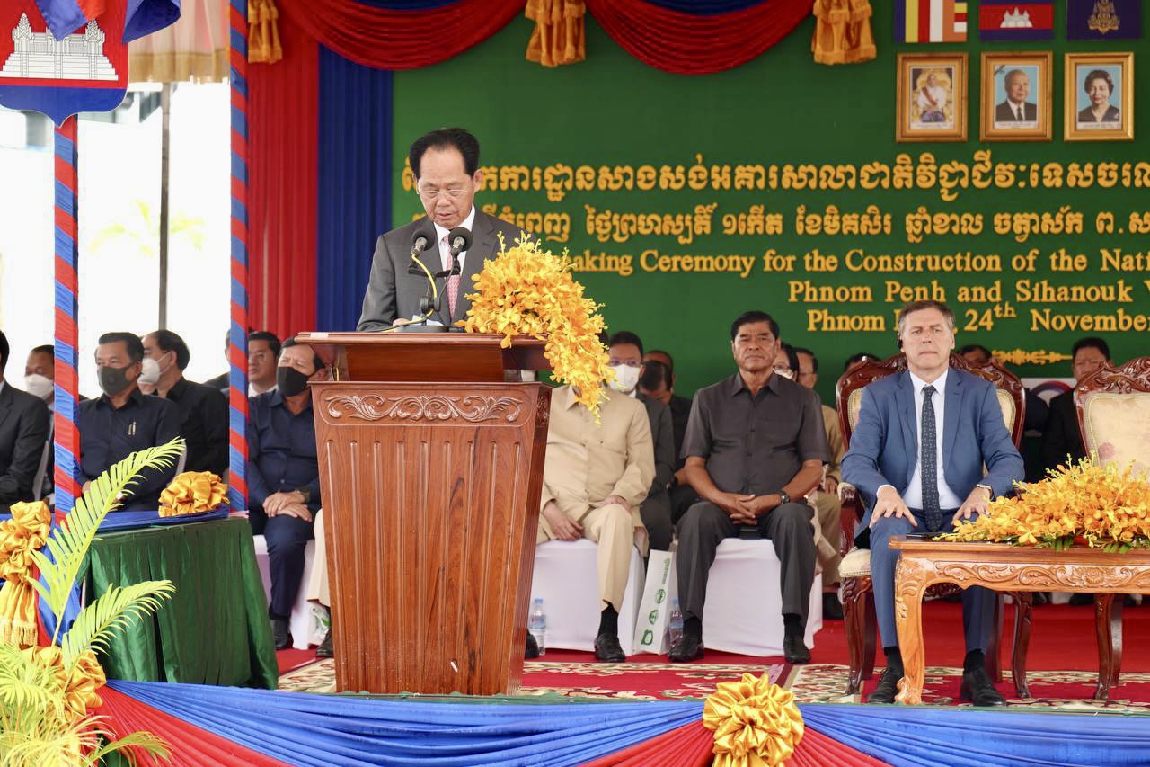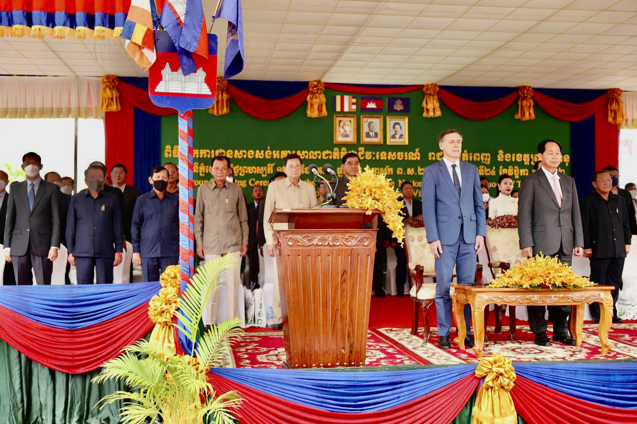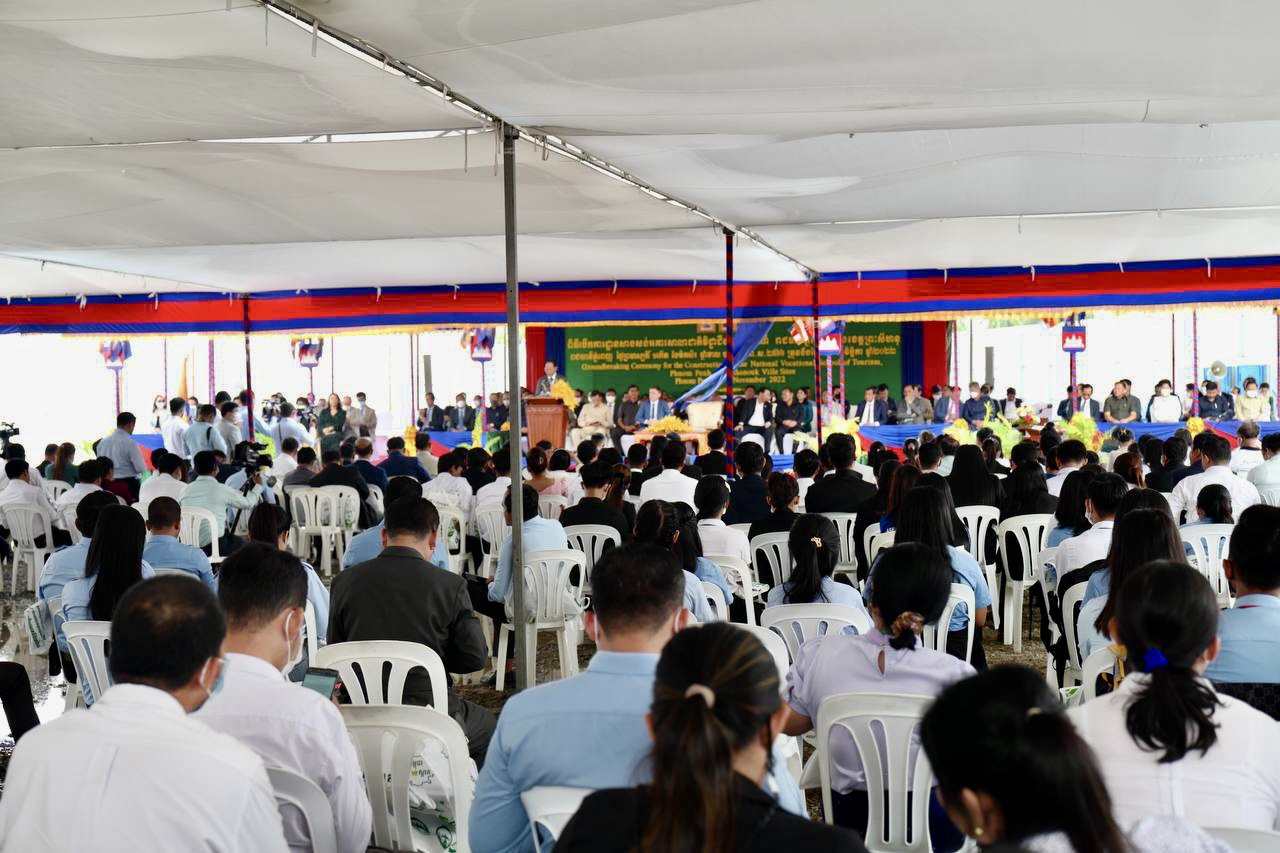 (ភ្នំពេញ)៖ នាព្រឹកថ្ងៃទី២៤ ខែវិច្ឆិកា ឆ្នាំ២០២២ ឯកឧត្តមឧបនាយករដ្ឋមន្ត្រី ជា សុផារ៉ា រដ្ឋមន្ត្រីក្រសួងដែនដី នគរូបនីយកម្ម និងសំណង់ តំណាងដ៏ខ្ពង់ខ្ពស់​ សម្តេច​អគ្គមហាសេនាបតី​តេជោ​ ហ៊ុន​ សែន​ នាយករដ្ឋមន្ត្រី​នៃ​ព្រះរាជាណាចក្រ​កម្ពុជា​ រួមជាមួយឯកឧត្តមJacques PELLET ឯកអគ្គរដ្ឋទូតវិសាមញ្ញ​ និងពេញសមត្ថភាព​ នៃសាធារណរដ្ឋបារាំងប្រចាំនៅព្រះរាជាណាចក្រកម្ពុជា បានអញ្ជើញ​ជា​អធិបតី​ក្នុង​ពិធី​បេីកការដ្ឋានសាងសង់អគារសាលាជាតិវិជ្ជាជីវៈទេសចរណ៍។ ក្នុងពិធីនេះ ក៏មានវត្តមានឯកឧត្តមរដ្ឋមន្ត្រីក្រសួងមុខងារសាធារណៈផងដែរ៕