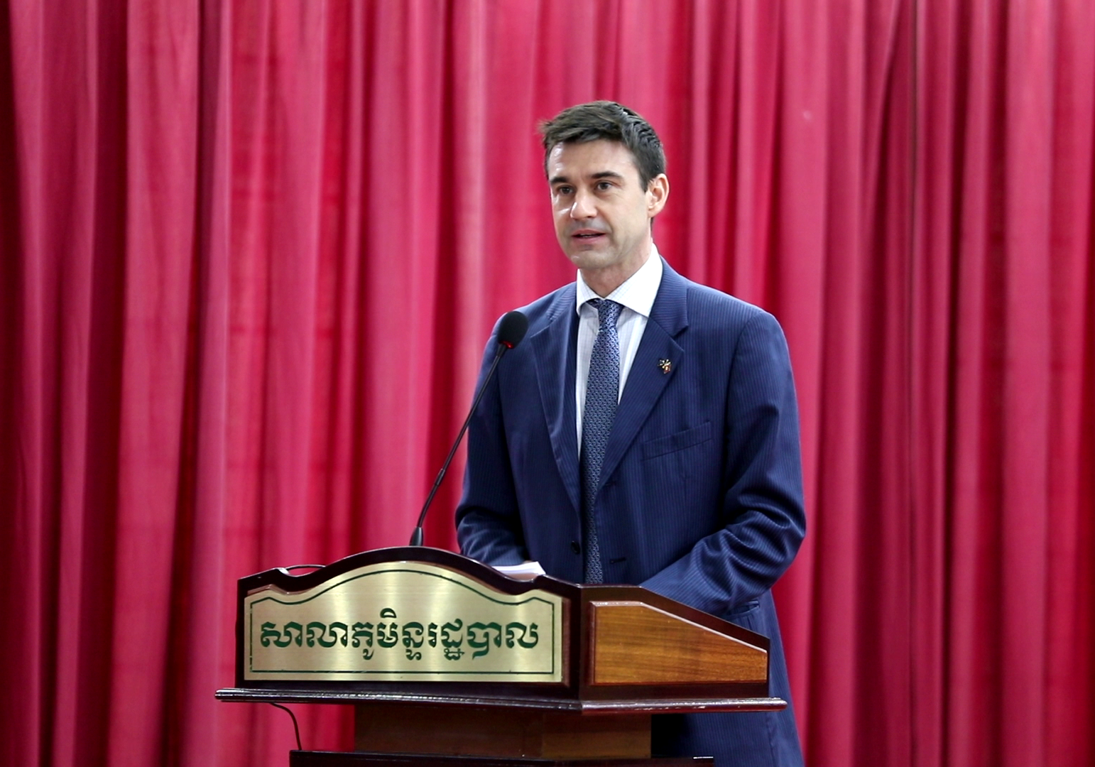 ជាកិច្ចចាប់ផ្តើម លោក Bryan Fornari នាយកផ្នែកសហប្រតិបត្តិការ នៃសហភាពអឺរ៉ុបប្រចាំប្រទេសកម្ពុជាបានឡើងមានមតិស្វាគមន៍គណៈអធិបតី និងអង្គសិក្ខាកាម ដោយធ្វើការរៀបរាប់ពីសាវតារនៃកិច្ចសហប្រតិបត្តិការ ព្រមទាំងគម្រោងកន្លងមកដែលធ្លាប់បានរៀបចំក្រោមកិច្ចសហការជាមួយក្រសួងមុខងារសាធារណៈ និងសាលាភូមិន្ទរដ្ឋបាល។