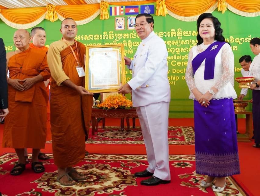 ពិធីប្រគល់ជូនគោរមងារកិត្តិយសជូន សម្ដេចតេជោនាយករដ្ឋមន្ត្រី និងឯកឧត្ដមបណ្ឌិត ហ៊ុន ម៉ាណែត