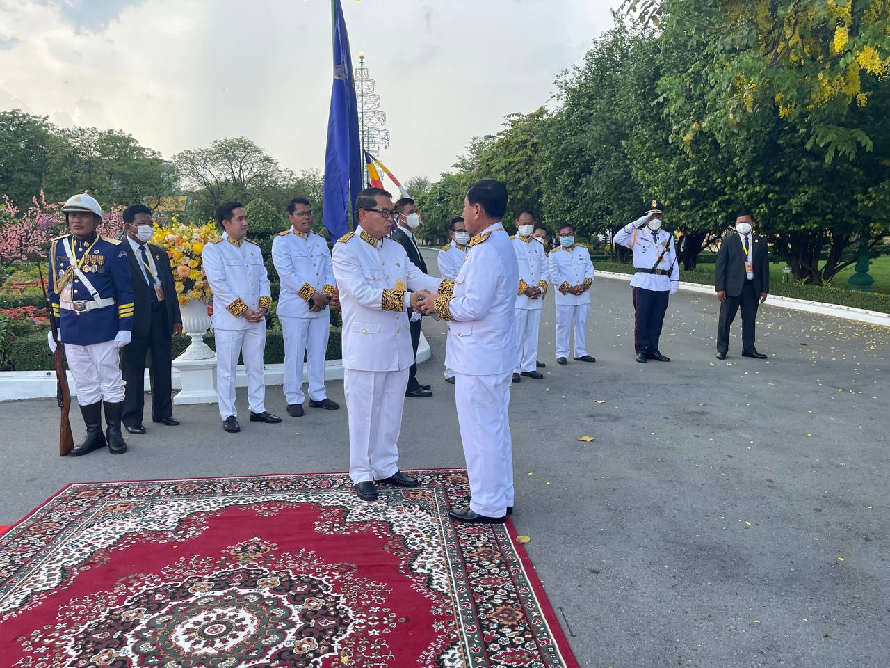 (ភ្នំពេញ)៖ នៅរសៀលថ្ងៃសៅរ៍ ៩ រោច ខែពិសាខ ឆ្នាំថោះបញ្ចស័ក ពុទ្ធសករាជ ២៥៦៧ ត្រូវនឹងថ្ងៃទី១៣ ខែឧសភា ឆ្នាំ២០២៣   នៅព្រះទីនាំងទេវាវិនិច្ឆ័យ នៃព្រះមរបរាជវាំង ក្នុងព្រះរាជពិធីថ្វាយព្រះពរ ព្រះករុណា ព្រះបាទសម្តេចព្រះបរមនាថ នរោត្តម សីហមុនី ព្រះមហាក្សត្រនៃព្រះរាជាណាចក្រកម្ពុជា ជាទីគោរពសក្ការៈដ៏ខ្ពង់ខ្ពស់បំផុត ក្នុងឱកាសចម្រើនព្រះជន្មគម្រប់ ៧០ យាងចូល៧១ ព្រះវស្សា ដោយមានការដឹកនាំដ៏ខ្ពង់ខ្ពស់របស់សម្ដេចវិបុលសេនាភក្តី សាយ ឈុំ ប្រធានព្រឹទ្ធសភា សម្ដេចអគ្គមហាពញាចក្រី ហេង សំរិន ប្រធានរដ្ឋសភា សម្ដេចអគ្គមហាសេនាបតីតេជោ ហ៊ុន សែន នាយករដ្ឋមន្ត្រី និង សម្ដេចកិត្តិព្រឹទ្ធបណ្ឌិត ប៊ុន រ៉ានី ហ៊ុន សែន រួមជាមួយ សម្តេច ឯកឧត្តម សមាជិកព្រឹទ្ឋសភា  រដ្ឋសភា រាជរដ្ឋាភិបាល ក្រុមប្រឹក្សាធម្មនុញ្ញ និងថ្នាក់ដឹកនាំគ្រប់ក្រសួង ស្ថាប័ន ព្រមទាំងប្រធានក្រុមប្រឹក្សា អភិបាលរាជធានីខេត្តទាំង២៥ បានចូលក្រាបថ្វាយបង្គំគាល់និងថ្វាយព្រះពរ។ ឯកឧត្ដម  ព្រុំ  សុខា  រដ្ឋមន្ត្រីក្រសួងមុខងារសាធារណៈ  បានអញ្ជើញចូលក្រាបថ្វាយបង្គំគាល់និងថ្វាយព្រះពរ ក្នុងព្រះរាជពិធីបុណ្យចម្រើនព្រះជន្មនេះផងដែ៕