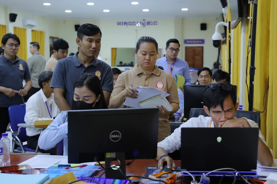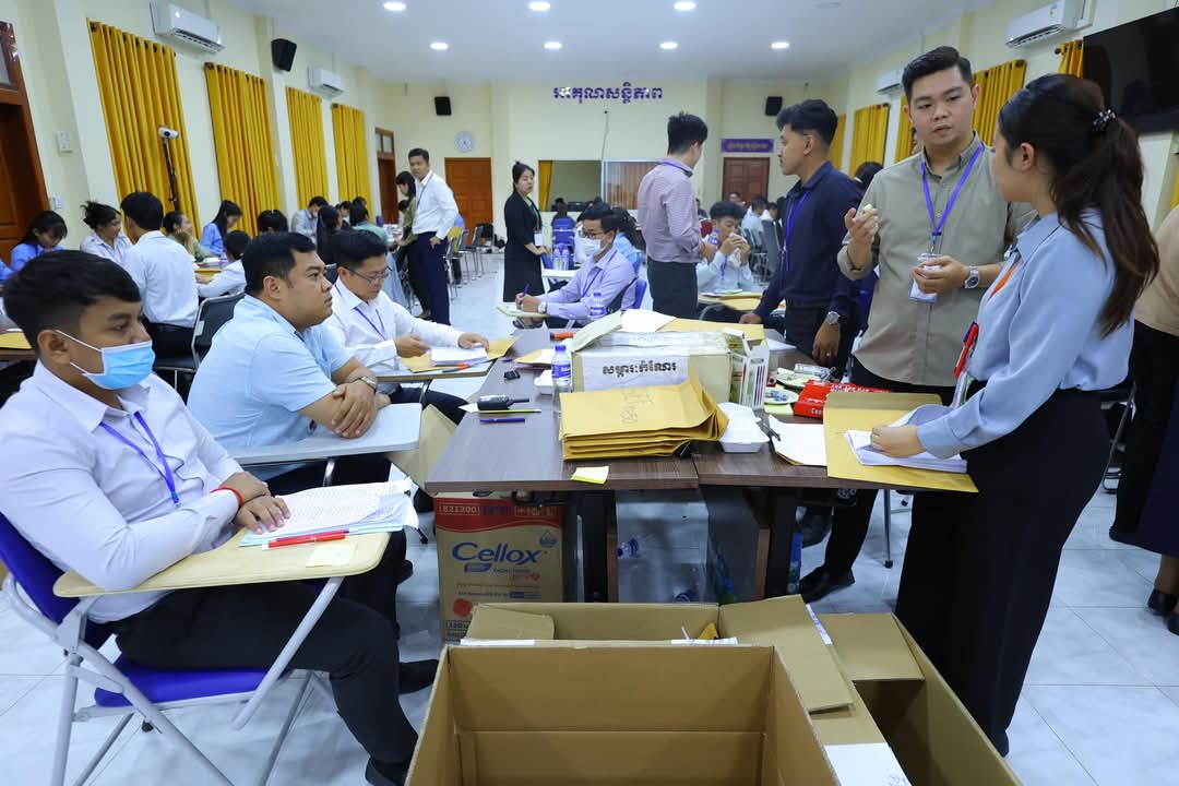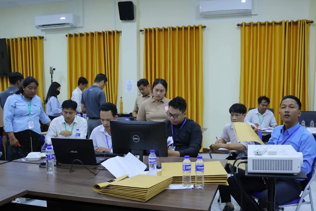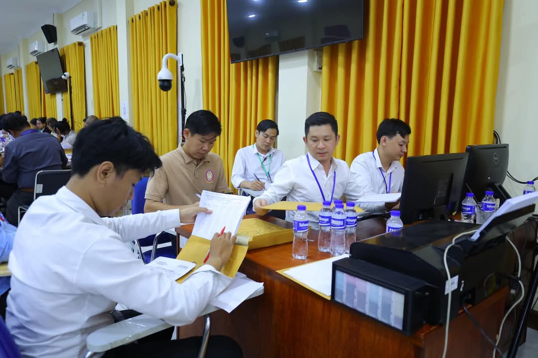 មិនថាលើសម៉ោងការងារយ៉ាងណា​ សកម្មភាពផ្ទៀងផ្ទាត់ការកែសន្លឹកកិច្ចការរបស់បេក្ខជន កំពុងតែបន្តយ៉ាងសស្រាក់សស្រាំ នៅមណ្ឌលកំណែនៃសាលាភូមិន្ទរដ្ឋបាល