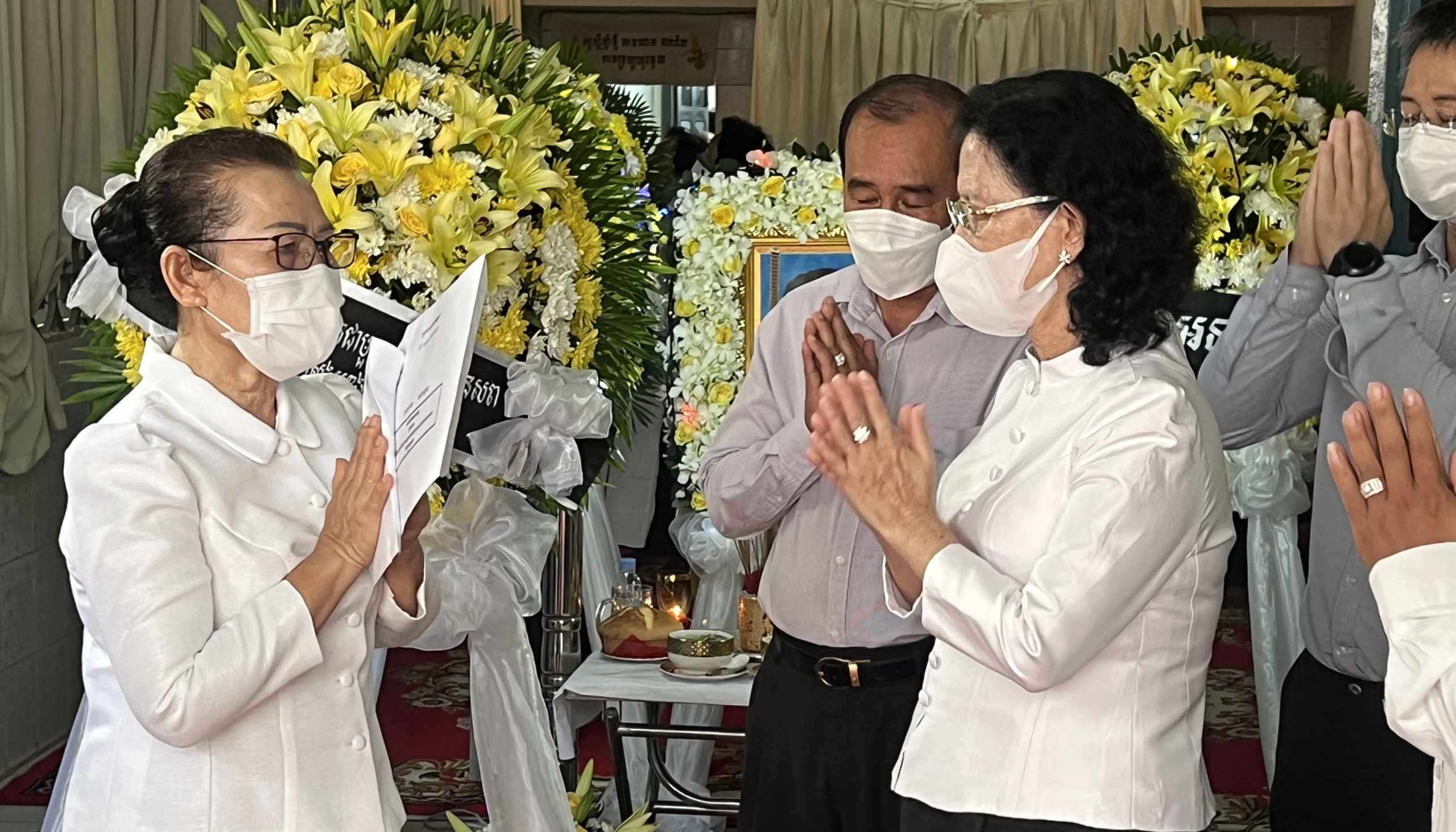 (រាជធានីភ្នំពេញ)៖ នាព្រឹកថ្ងៃពុធ ១៤កើត ខែភទ្របទ ឆ្នាំឆ្លូវ ត្រីស័ក ព.ស ២៥៦៥ ត្រូវនឹងថ្ងៃទី២០ ខែតុលា ឆ្នាំ២០២១ លោកជំទាវ វ៉ាន់ ម៉ារា រដ្ឋលេខាធិការ តំណាងដ៏ខ្ពង់ខ្ពស់របស់ឯកឧត្តមរដ្ឋមន្ត្រី ព្រុំ សុខា បានអញ្ជើញចូលរួមគោរពវិញ្ញាណក្ខន្ធឧបាសិកា អ៊ុក សារូ ត្រូវជាម្តាយបង្កើតលោកជំទាវ ស្រី សទ្ធា អនុរដ្ឋលេខាធិការក្រសួងមុខងារសាធារណៈ ដែលបានទទួលមរណភាព នៅថ្ងៃចន្ទ ១២កើត ខែអស្សុជ ឆ្នាំឆ្លូវ ត្រីស័ក ពុទ្ធសករាជ ២៥៦៥ ត្រូវនឹងថ្ងៃទី១៨ ខែតុលា ឆ្នាំ២០២១ ក្នុងជន្មាយុ ៨៨ឆ្នាំ ដោយជរាពាធ។