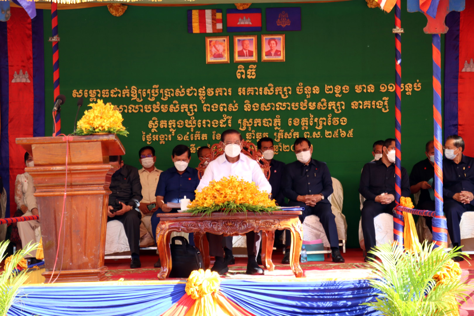 សម្ដេចក្រឡាហោម ស ខេង ឧបនាយករដ្ឋមន្ត្រី រដ្ឋមន្ត្រីក្រសួងមហាផ្ទៃ អញ្ជើញជាអធិបតីក្នុងពិធីសម្ពោធដាក់ឱ្យប្រើប្រាស់ជាផ្លូវការ អគារសិក្សា ចំនួន២ខ្នង ស្ថិតនៅឃុំរោងដំរី ស្រុកបាភ្នំ