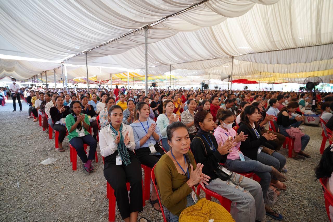 (ភ្នំពេញ)៖ ព្រឹកថ្ងៃសៅរ៍ ១៥កើត ខែជេស្ឋ ឆ្នាំថោះ បញ្ចស័ក ព.ស ២៥៦៧ ថ្ងៃទី៣ ខែមិថុនា ឆ្នាំ២០២៣ សម្តេចអគ្គមហាសេនាបតីតេជោ ហ៊ុន សែន នាយករដ្ឋមន្ត្រី នៃព្រះរាជាណាចក្រកម្ពុជា បានអញ្ជើញសួរសុខទុក្ខ និងសំណេះសំណាលជាមួយបងប្អូនកម្មករនិយោជិត នៅក្នុងសួនឧស្សាហកម្មខេមតុន (CAMTON INDUSTRIAL PARK) មកពីរោងចក្រ សហគ្រាសចំនួន១៩។ ពិធីនេះក៏មានវត្តមាន ឯកឧត្តម ឈឿន ប៊ុណ្ណារ័ត្ន រដ្ឋលេខាធិការ តំណាងដ៏ខ្ពង់ខ្ពស់ ឯកឧត្តមរដ្ឋមន្រ្តីក្រសួងមុខងារសាធារណៈចូលរួមផងដែរ។
