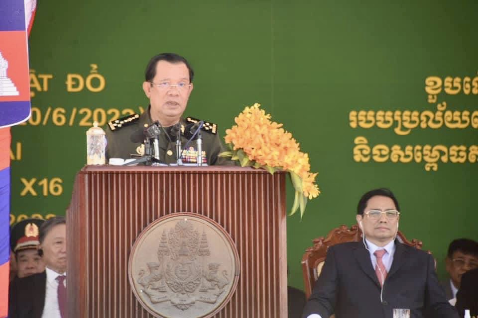 (ត្បូងឃ្មុំ)៖ នាព្រឹកថ្ងៃចន្ទ ៦រោច ខែជេស្ឋ ឆ្នាំខាល ចត្វាស័ក ព.ស. ២៥៦៦ ត្រូវនឹង ថ្ងៃទី២០ ខែមិថុនា ឆ្នាំ២០២២ សម្តេចអគ្គមហាសេនាបតីតេជោ ហ៊ុន សែន នាយករដ្ឋមន្ត្រីនៃព្រះរាជាណាចក្រកម្ពុជា និង ឯកឧត្តម Phạm Minh Chính នាយករដ្ឋមន្ត្រីវៀតណាមបាន អញ្ជើញជាអធិបតី ក្នុងខួបលើកទី៤៥នៃទិវាការចងចាំដំណើរឆ្ពោះទៅកាន់ការផ្ដួលរំលំរបបប្រល័យពូជសាសន៍ ប៉ុល ពត (២០ មិថុនា ១៩៧៧ – ២០ មិថុនា ២០២២) និង សម្ពោធសមិទ្ធផលនានានៅតំបន់ប្រវត្តិសាស្ត្រយោធាតេជោកោះថ្ម X16 ស្ថិតនៅភូមិកោះថ្ម ឃុំទន្លូង ស្រុកមេមត់ ខេត្តត្បូងឃ្មុំ។ ឯកឧត្តម ព្រុំ សុខា រដ្ឋមន្រ្តីក្រសួងមុខងារសាធារណៈ ក៏បានអញ្ជើញចូលរួមក្នុងពិធីនេះផងដែរ៕