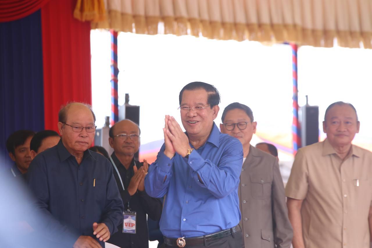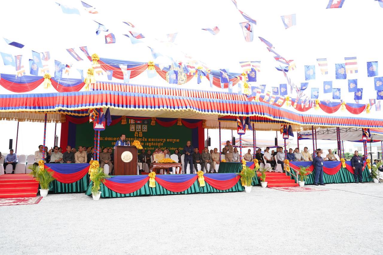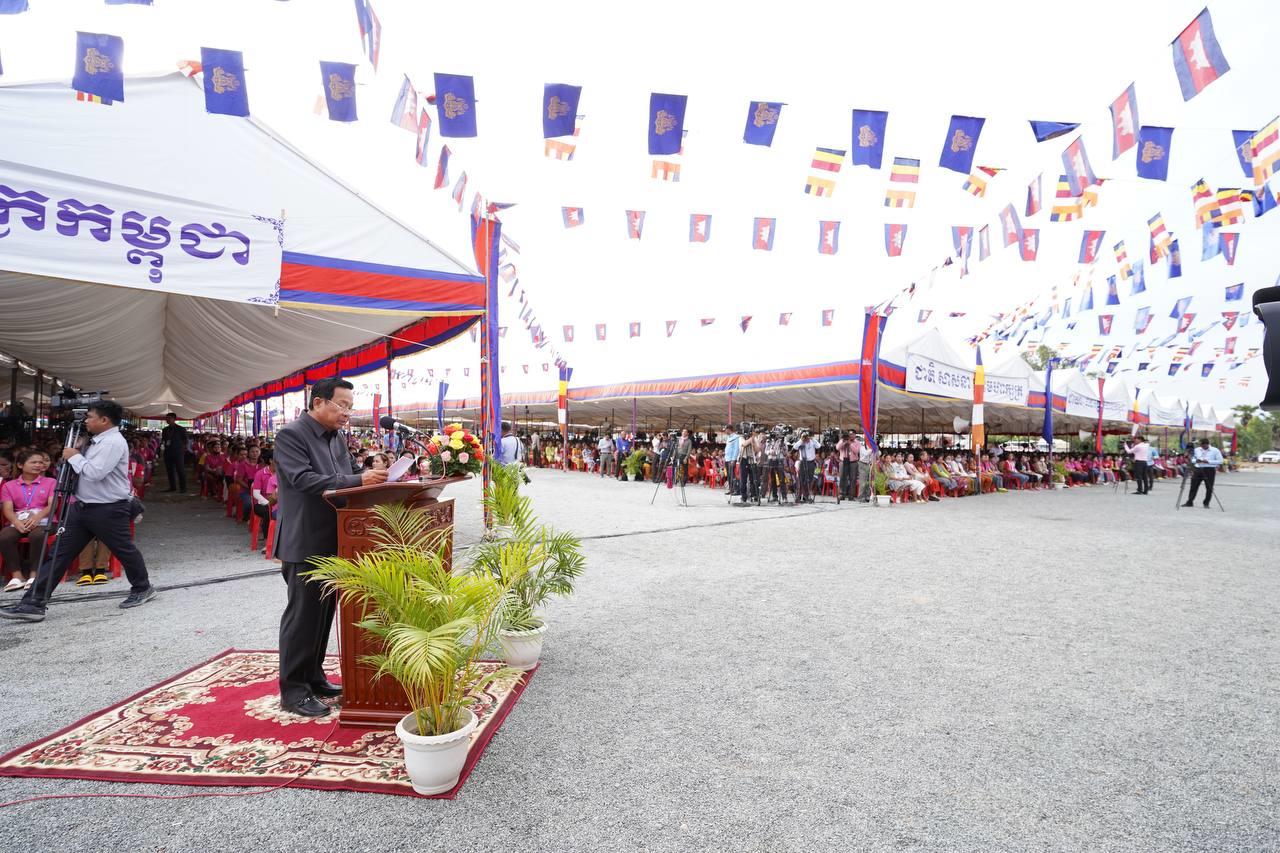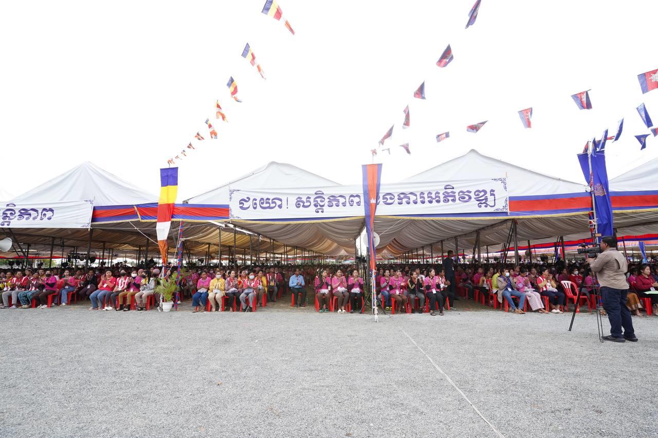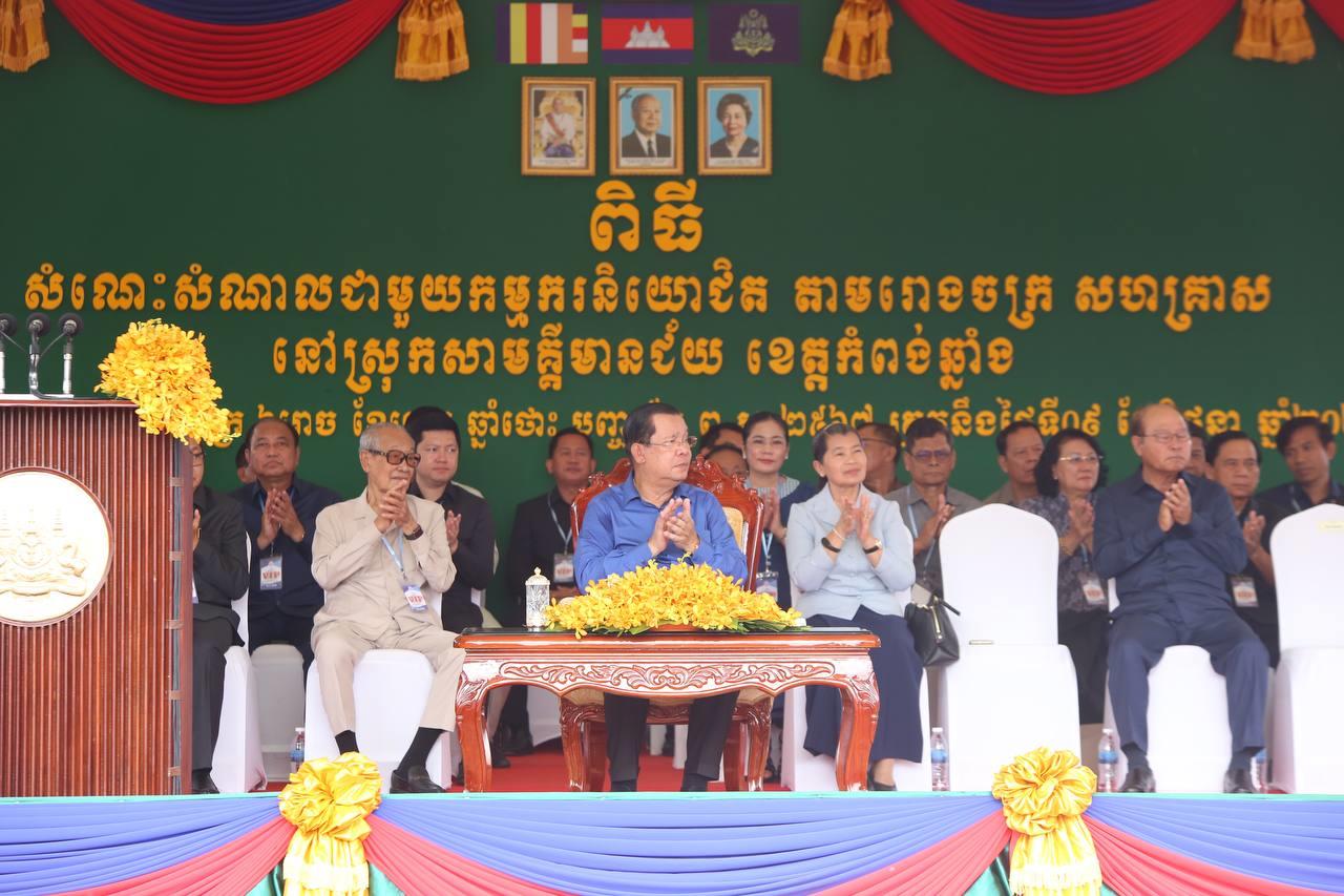 (កំពង់ឆ្នាំង)៖ នៅថ្ងៃសុក្រ ៦រោច ខែជេស្ឋ ឆ្នាំថោះ បញ្ចស័ក ព.ស.២៥៦៧ ត្រូវនឹងថ្ងៃទី៩ ខែមិថុនា ឆ្នាំ២០២៣នេះ សម្តេចតេជោ ហ៊ុន សែន នាយករដ្ឋមន្ត្រីនៃព្រះរាជាណាចក្រកម្ពុជា បន្តអញ្ជើញចុះជួបសំណេះសំណាលជាមួយកម្មករ កម្មការិនីសរុបជិត ២ម៉ឺននាក់ មកពីរោងចក្រសហគ្រាសចំនួន១១ ដែលកំពុងដំណើរអាជីវកម្មក្នុងស្រុកកំពង់ត្រឡាច និងស្រុកសាមគ្គីមានជ័យ ខេត្តកំពង់ឆ្នាំង។ ជំនួបសំណេះសំណាលធ្វើឡើងនៅភូមិចម្ការស្វាយ ឃុំសេដ្ឋី ស្រុកសាមគ្គីមានជ័យ ខេត្តកំពង់ឆ្នាំង។ ពិធីនេះក៏មានវត្តមាន ឯកឧត្តម ប៉ូល ពីឌូ រដ្ឋលេខាធិការ តំណាងឯកឧត្តមរដ្ឋមន្រ្តីក្រសួងមុខងារសាធារណៈ ចូលរួមផងដែរ៕