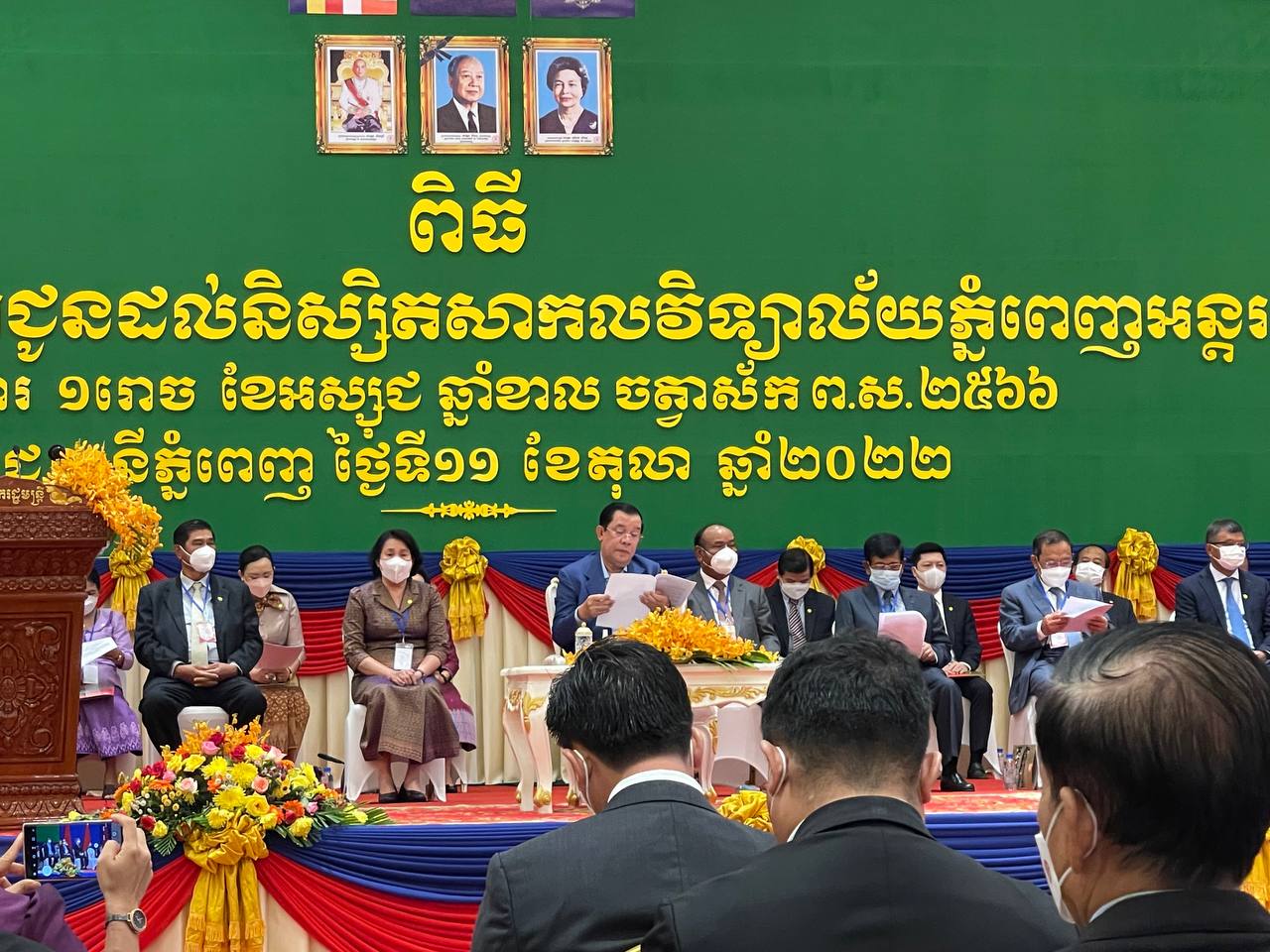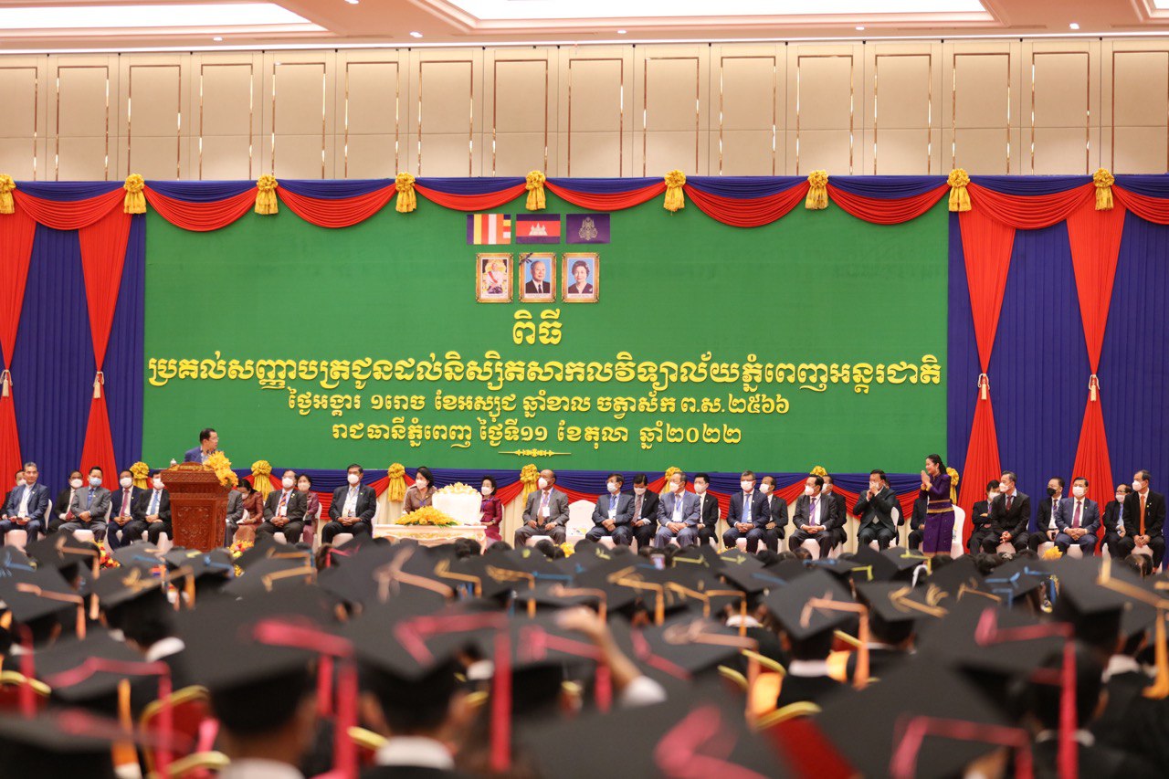 (ភ្នំពេញ)៖ ៖ នៅព្រឹក ថ្ងៃអង្គារ ១រោច ខែអស្សុជ ឆ្នាំខាល ចត្វាស័ក ព.ស. ២៥៦៦ ត្រូវនឹង ថ្ងៃទី១១ ខែតុលា ឆ្នាំ២០២២ នេះ សម្តេចអគ្គមហាសេនាបតីតេជោ ហ៊ុន សែន នាយករដ្ឋមន្ត្រីនៃព្រះរាជាណាចក្រកម្ពុជា បានអញ្ជើញជាអធិបតីក្នុងពិធីប្រគល់សញ្ញាបត្រ ជូននិស្សិតសាកលវិទ្យាល័យភ្នំពេញអន្តរជាតិ (PPIU) បន្ទាប់ពីពួកគេបានបញ្ចប់ការសិក្សាដោយជោគជ័យ។