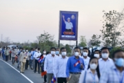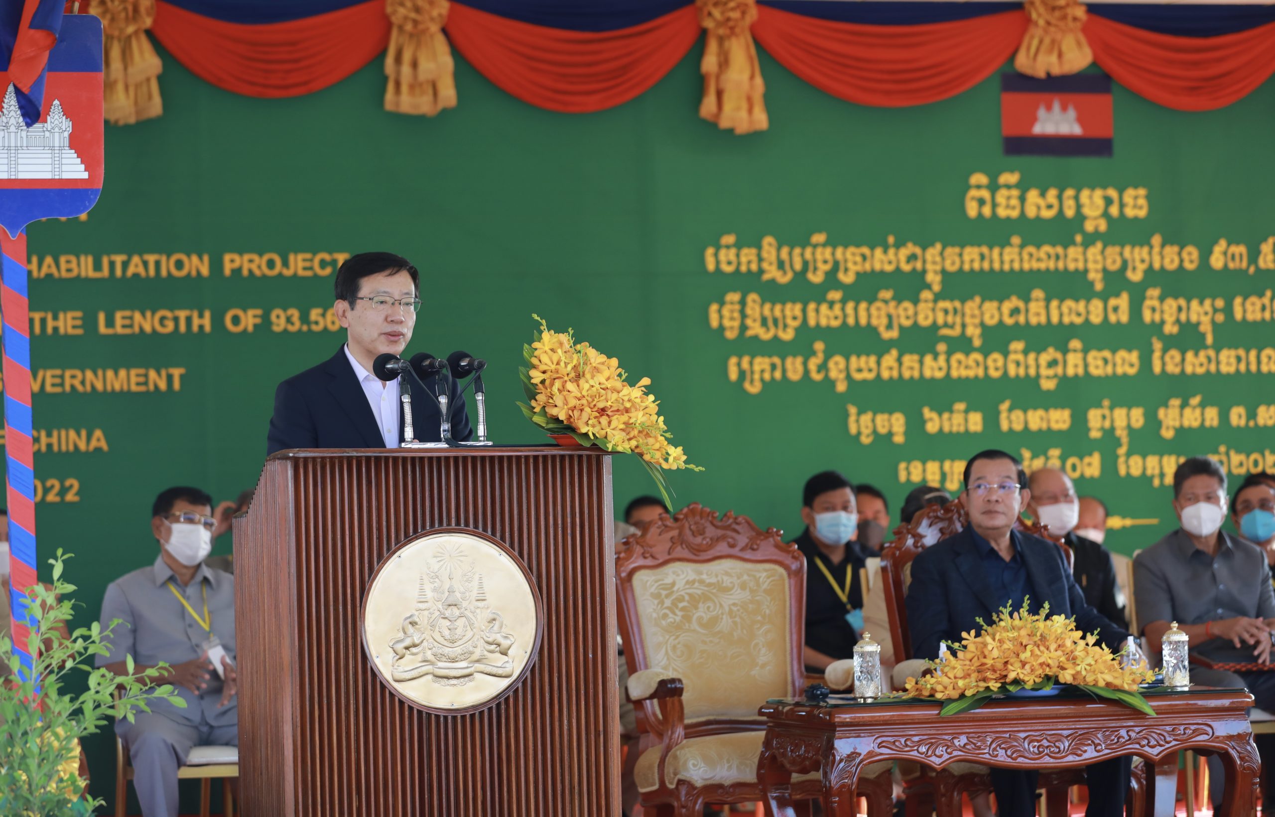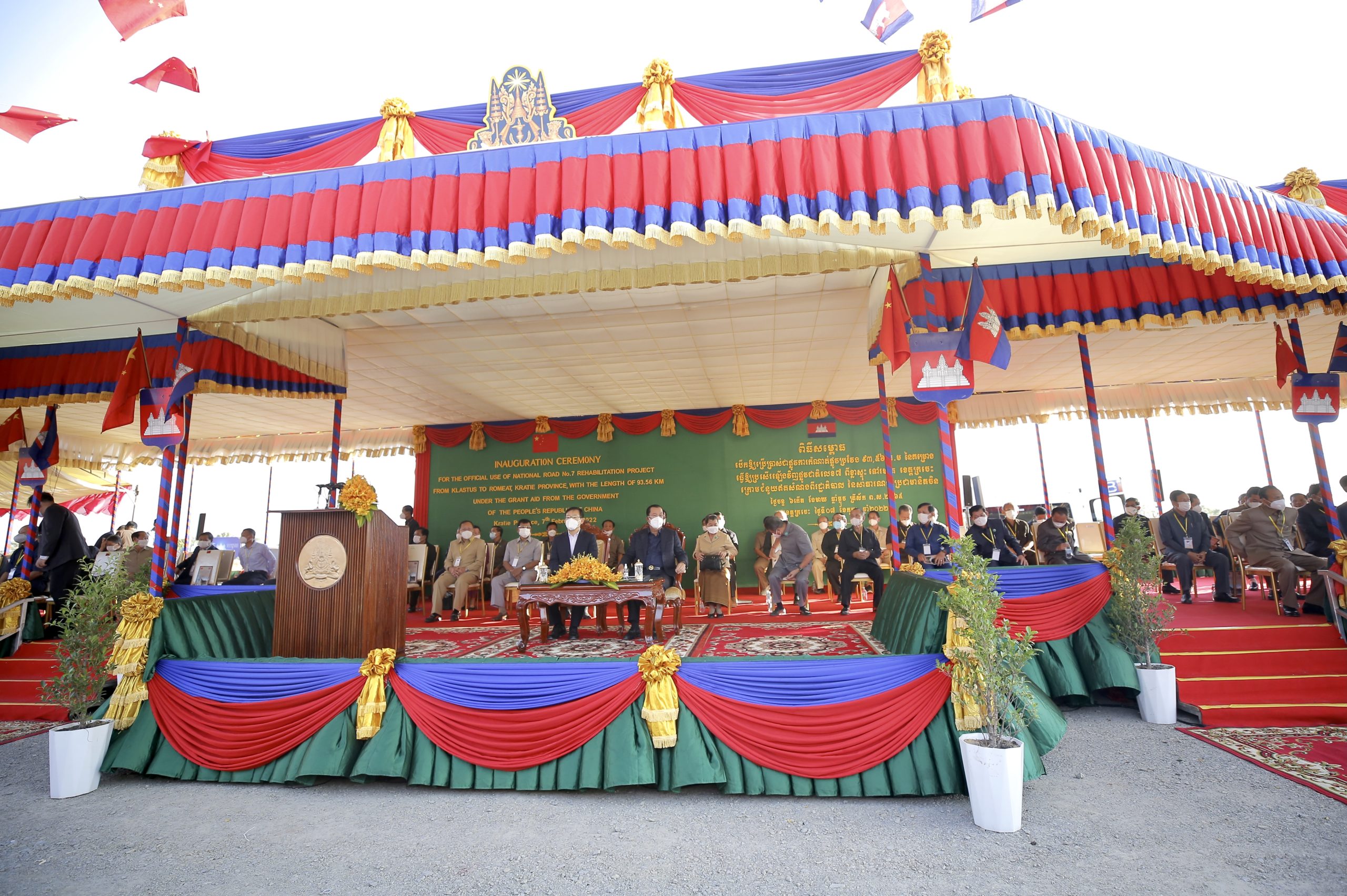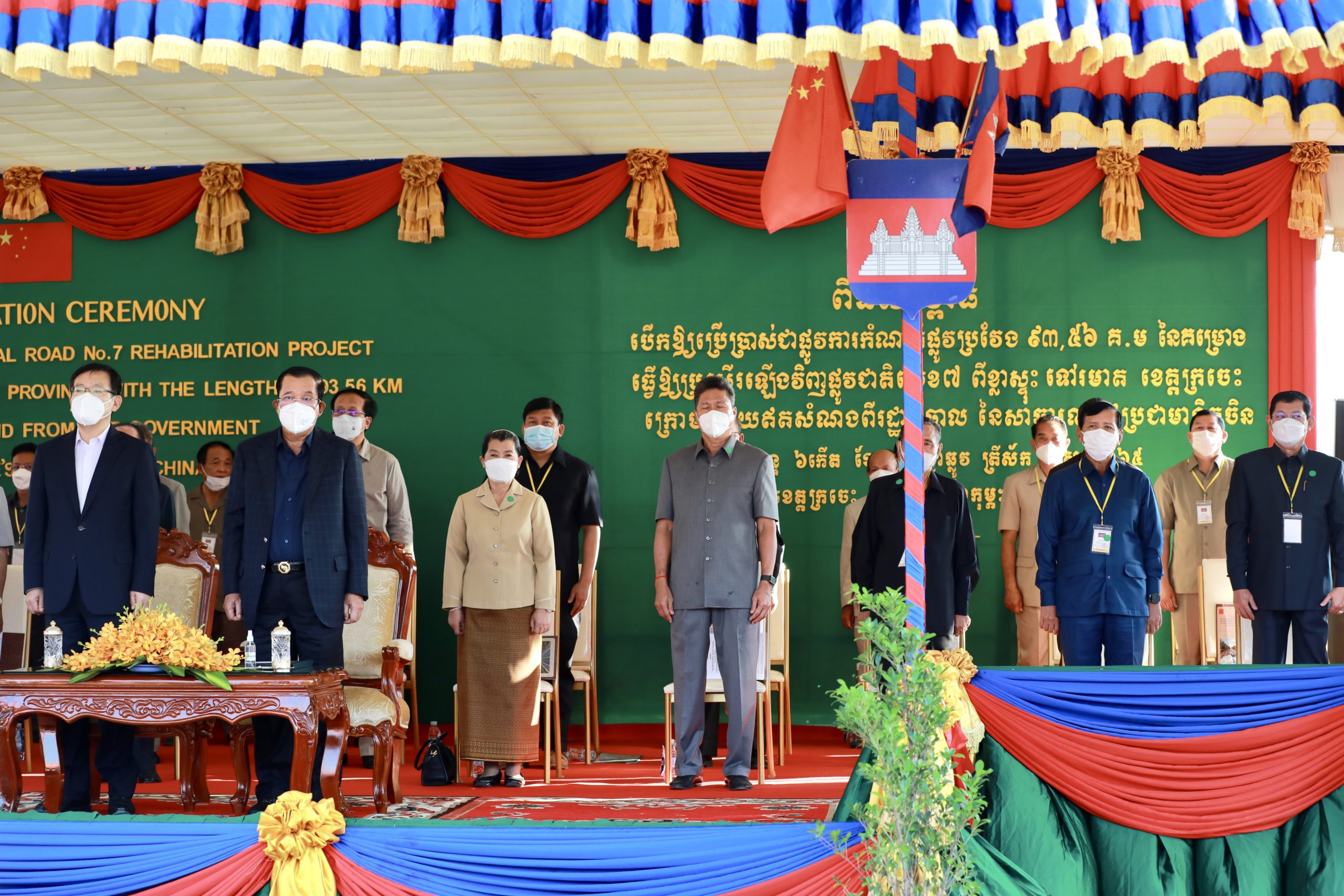 (ក្រចេះ)៖ នាព្រឹកថ្ងៃចន្ទ ៦កើត ខែមាឃ ឆ្នាំឆ្លូវ ត្រីស័ក ព.ស ២៥៦៥ ត្រូវនឹងថ្ងៃទី៧ ខែកុម្ភៈ ឆ្នាំ២០២២នេះ សម្តេចអគ្គមហាសេនាបតីតេជោ ហ៊ុន សែន នាយករដ្ឋមន្ត្រីនៃព្រះរាជាណាចក្រកម្ពុជា បានអញ្ជើញជាអធិបតីសម្ពោធដាក់ឱ្យប្រើប្រាស់ជាផ្លូវការកំណាត់ផ្លូវជាតិលេខ៧ ពីចំណុចរង្វង់មូលខ្លាស្ទុះ ក្រុងក្រចេះ ទៅភូមិរមាត ឃុំអូរគ្រៀង ស្រុកសំបូរ ខេត្តក្រចេះ ប្រវែងប្រមាណ ៩៣.៥៦គីឡូម៉ែត្រ ដែលសាងសង់ក្រោមជំនួយឥតសំណងរបស់រដ្ឋាភិបាលចិន។ ឯកឧត្តម ព្រុំ សុខា រដ្ឋមន្រ្តីក្រសួងមុខងារសាធារណៈ និងជាប្រធានក្រុមការងារខេត្តក្រចេះ ក៏បានអញ្ជើញចូលរួមក្នុងពិធីនេះផងដែរ៕