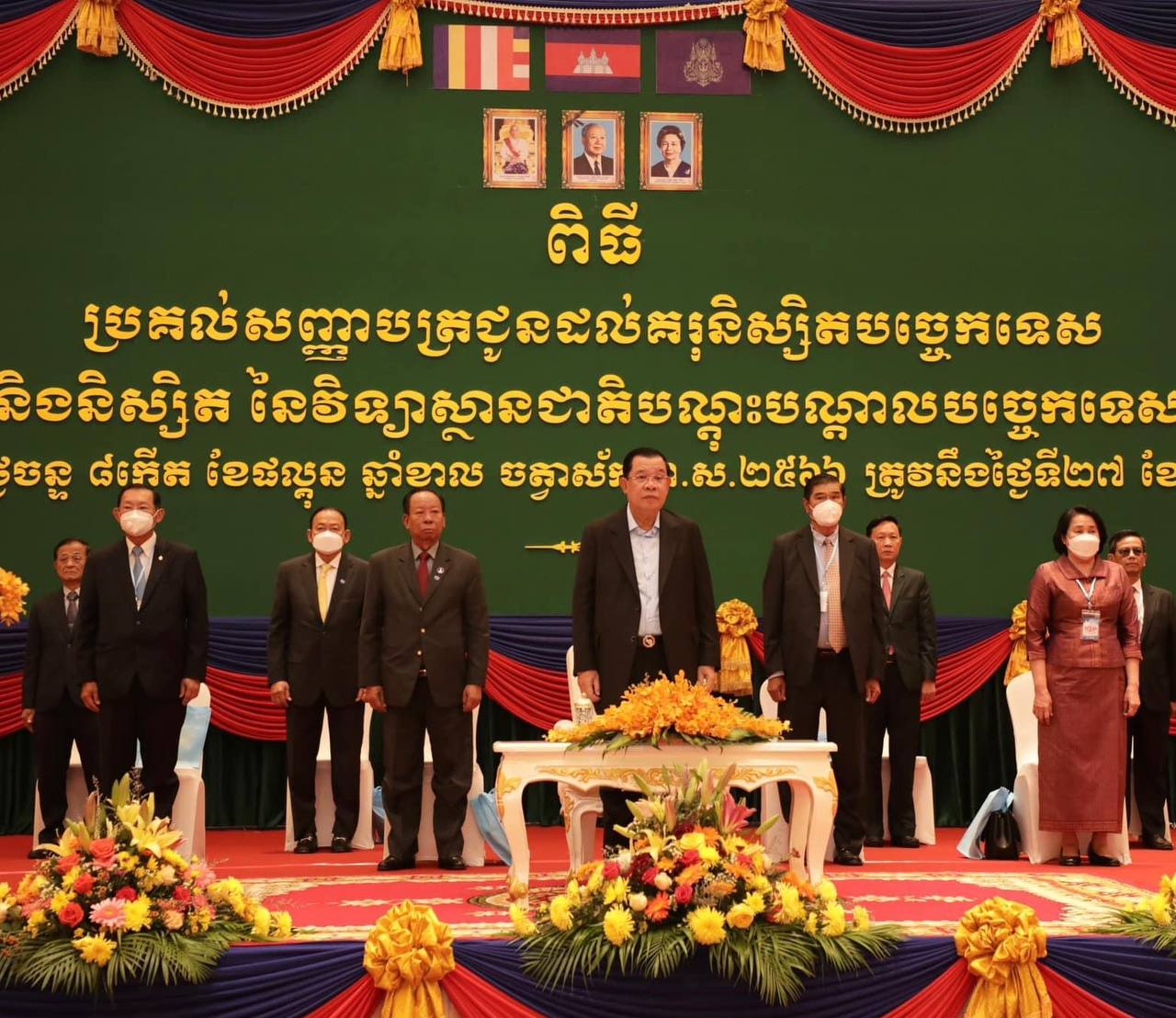 សម្តេចតេជោ ហ៊ុន សែន អញ្ជើញជាអធិបតីប្រគល់សញ្ញាបត្រ ដល់គរុនិស្សិតបច្ចេកទេស និងនិស្សិតនៃវិទ្យាស្ថានជាតិបណ្ដុះបណ្ដាលបច្ចេកទេស
