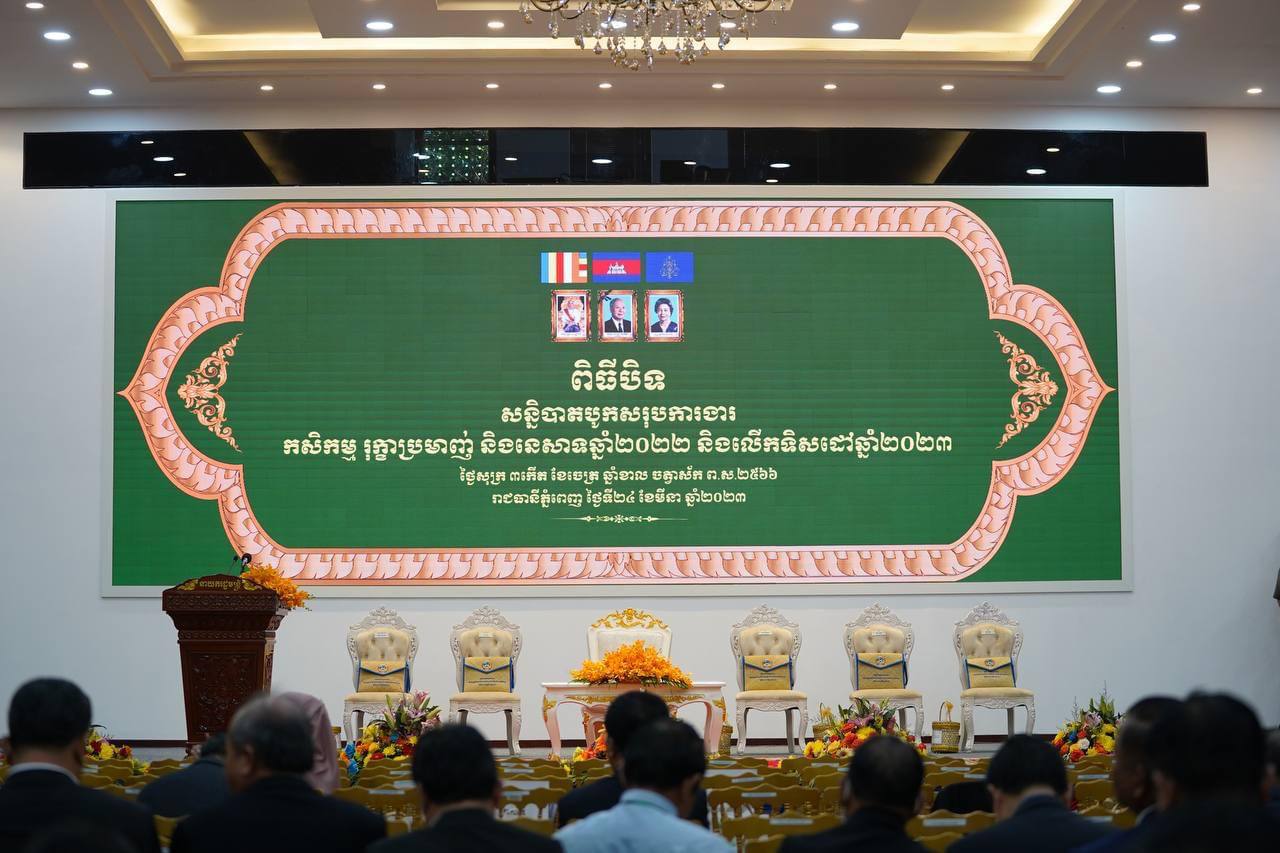 (ភ្នំពេញ)៖ រសៀលថ្ងៃសុក្រ ទី២៤ ខែមីនា ឆ្នាំ២០២៣ សម្តេចអគ្គមហាសេនាបតីតេជោ ហ៊ុន សែន នាយករដ្ឋមន្ត្រីនៃព្រះរាជាណាចក្រកម្ពុជា បានអញ្ជើញជាអធិបតីបិទសន្និបាតបូក​សរុប​​​ការងារឆ្នាំ២០២២ និងលើកទិសដៅការងារឆ្នាំ ២០២៣ ក្រសួងកសិកម្ម រុក្ខាប្រមាញ់ និងនេសាទ។​ ក្នុងពិធី​នេះក៏មានវត្តមាន​ឯកឧត្ដម​ ប៉ូល​ ពីឌូ​ រដ្ឋលេខាធិការតំណាង​ឯកឧត្តម​រដ្ឋមន្រ្តីក្រសួងមុខងារសាធារណៈចូលរួមផងដែរ៕