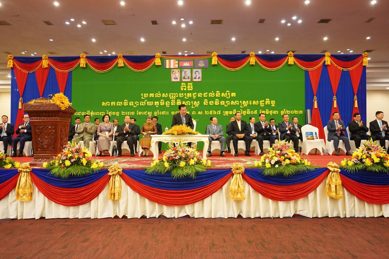 សម្តេចតេជោ ហ៊ុន សែន អញ្ជើញប្រគល់សញ្ញាបត្រជូននិស្សិត សាកលវិទ្យាល័យភូមិន្ទនីតិសាស្រ្ត និងវិទ្យាសាស្ត្រសេដ្ឋកិច្ច