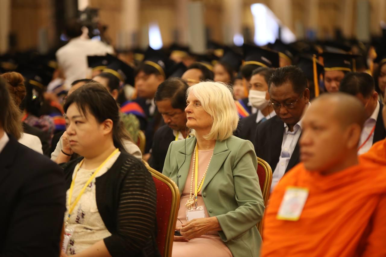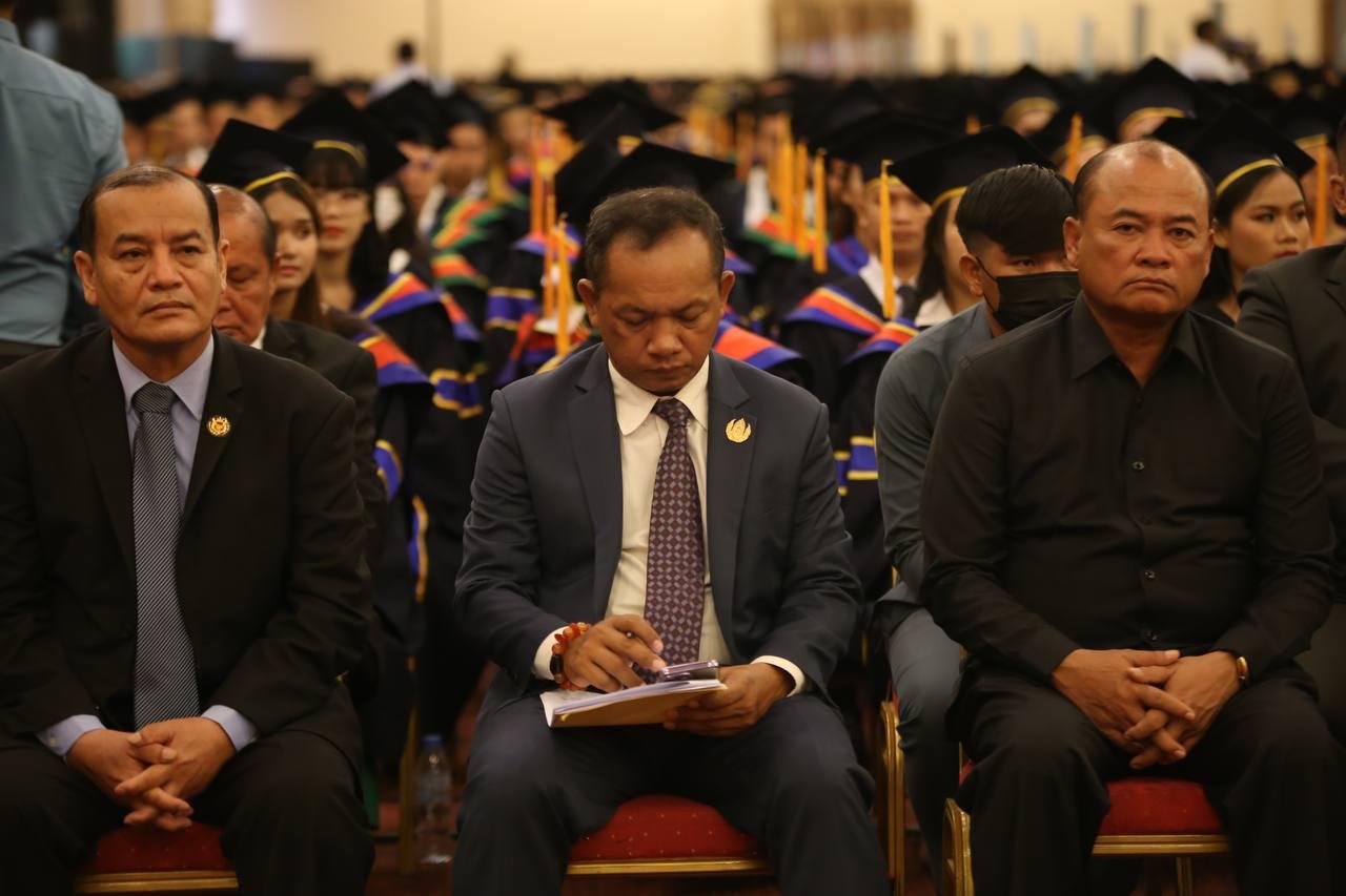 (ភ្នំពេញ)៖ នៅព្រឹកថ្ងៃចន្ទ ២រោច ខែជេស្ឋ ឆ្នាំថោះ បញ្ចស័ក ព.ស.២៥៦៧ ត្រូវនឹង ថ្ងៃទី ០៥ ខែមិថុនា ឆ្នាំ២០២៣នេះ សម្តេចតេជោ ហ៊ុន សែន នាយករដ្ឋមន្ត្រីនៃព្រះរាជាណាចក្រកម្ពុជា បានអញ្ជើញជាអធិបតីក្នុងពិធីប្រគល់សញ្ញាបត្រ ជូននិស្សិតបញ្ចប់ការសិក្សាពីសាកលវិទ្យាល័យភូមិន្ទនីតិសាស្រ្ត និងវិទ្យាសាស្រ្តសេដ្ឋកិច្ចសរុបជិត ៦ពាន់នាក់។ ឯកឧត្ដម ព្រុំ សុខា រដ្ឋមន្ត្រីក្រសួងមុខងារសាធារណៈ ក៏មានវត្តមានចូលរួមក្នុងពិធីនេះផងដែរ៕