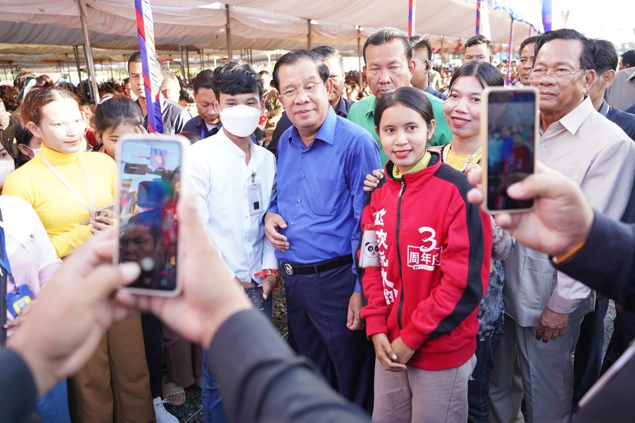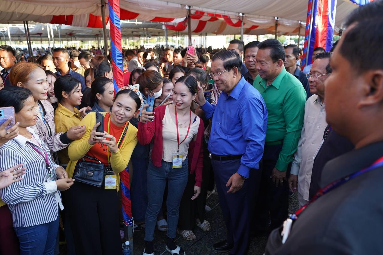 សម្តេចតេជោ ហ៊ុន សែន អញ្ជើញចុះជួបកម្មករ កម្មការិនីជិត ២ម៉ឺននាក់ នៅស្រុកអង្គស្នួល ខេត្តកណ្តាល