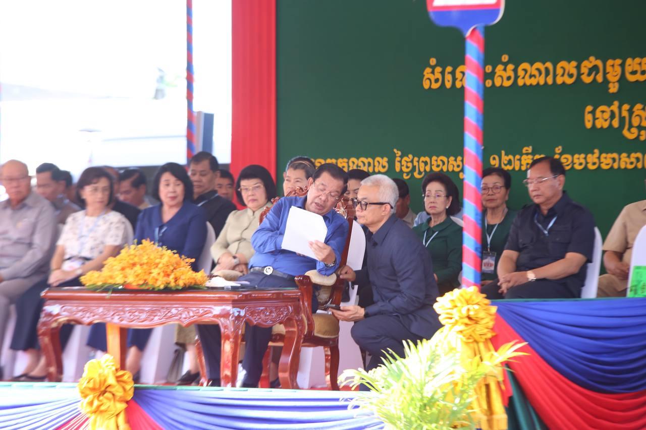 (កណ្តាល)៖ នៅថ្ងៃព្រហស្បតិ៍ ១២កើត ខែបឋមាសាឍ ឆ្នាំថោះ បញ្ចស័ក ព.ស.២៥៦៧ ត្រូវនឹងថ្ងៃទី២៩ ខែមិថុនា ឆ្នាំ២០២៣នេះ សម្តេចតេជោ ហ៊ុន សែន នាយករដ្ឋមន្ត្រីព្រះរាជាណាចក្រកម្ពុជា បានអញ្ជើញចុះជួបសំណេះសំណាលជាមួយកម្មករ កម្មការិនីសរុបប្រមាណ ១៨,២៥៥នាក់ មកពីរោងចក្រសហគ្រាសចំនួន១១ ក្នុងស្រុកអង្គស្នួល ខេត្តកណ្តាល។ ក្នុងពិធីនេះក៏មានវត្តមាន ឯកឧត្តម រស់ សុផាន់ រដ្ឋលេខាធិការតំណាងឯកឧត្តមរដ្ឋមន្ត្រីក្រសួងមុខងារសាធារណៈចូលរួមផងដែរ៕