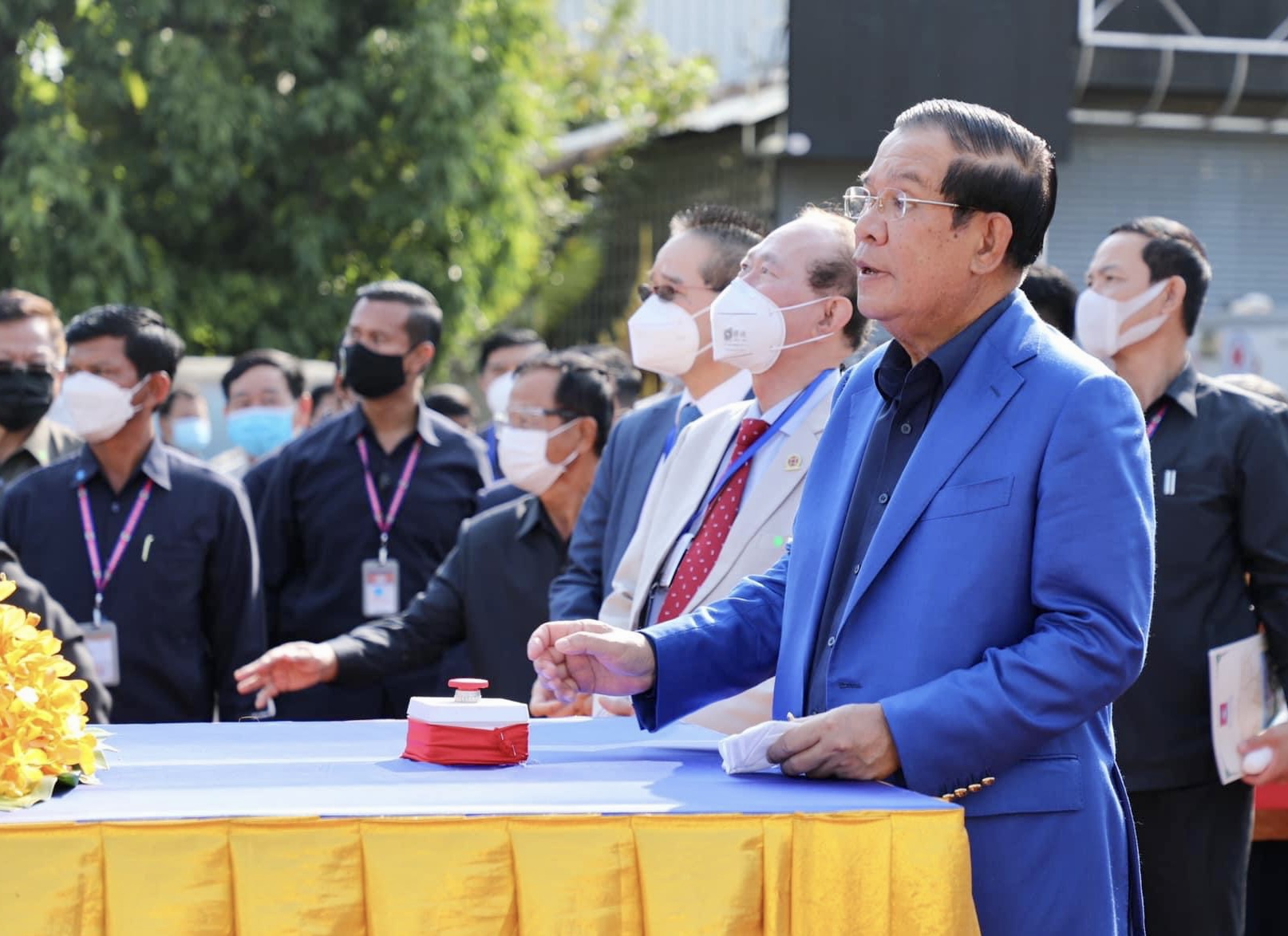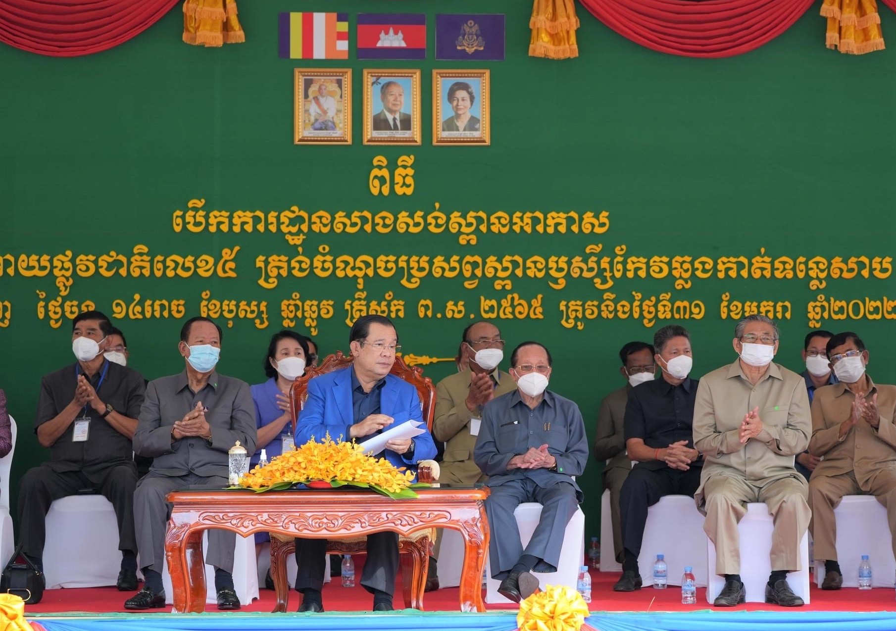 (រាជធានីភ្នំពេញ)៖ កាលពីព្រឹកថ្ងៃចន្ទ ១៤រោច ខែបុស្ស ឆ្នាំឆ្លូវ ត្រីស័ក ព.ស. ២៥៦៥ ត្រូវនឹងថ្ងៃទី៣១ ខែមករា ឆ្នាំ២០២២ សម្ដេចអគ្គមហាសេនាបតីតេជោ ហ៊ុន សែន នាយករដ្ឋមន្ត្រីនៃព្រះរាជាណាចក្រកម្ពុជា បានអញ្ជើញជាអធិបតីភាពដ៏ខ្ពង់ខ្ពស់ ក្នុងពិធីបើកការដ្ឋានសាងសង់ស្ពានអាកាសថ្មីមួយទៀត ស្ថិតនៅផ្លូវជាតិលេខ៥ ភូមិឃ្លាំងសាំង សង្កាត់ឫស្សីកែវ ខណ្ឌឫស្សីកែវ រាជធានីភ្នំពេញ។ ឯកឧត្តមរដ្ឋមន្រ្តីក្រសួងមុខងារសាធារណៈ ក៏បានអញ្ជើញចូលរួមក្នុងពិធីនេះផងដែរ៕