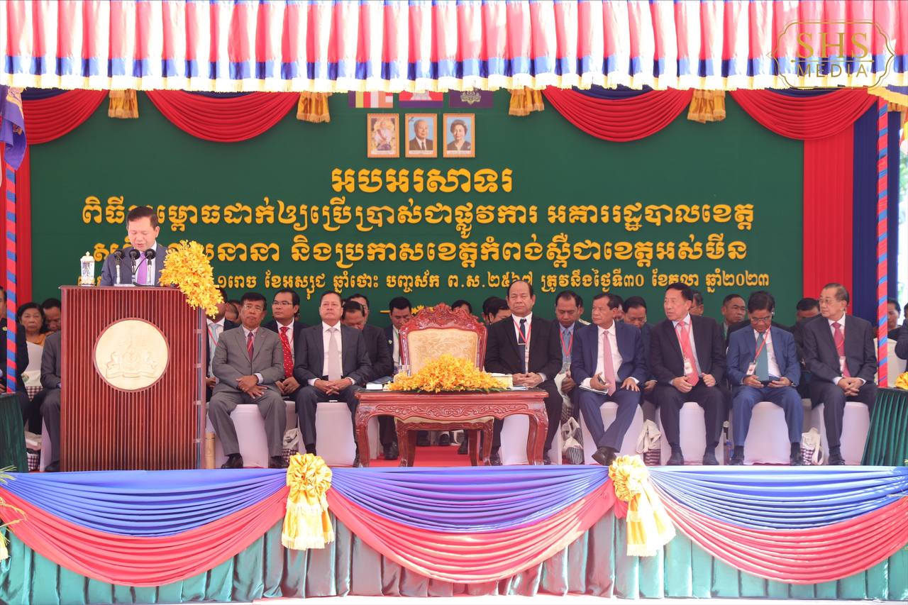 ក្នុងពិធីសម្ពោធដាក់ឱ្យប្រើប្រាស់ជាផ្លូវការអគាររដ្ឋបាលថ្មី និងសមិទ្ធផលនៅខេត្តកំពង់ស្ពឺ និងប្រកាសជាខេត្តអស់មីន នាព្រឹកថ្ងៃទី៣០ ខែតុលា ឆ្នាំ២០២៣ សម្តេចធិបតី មានប្រសាសន៍ថា សេវាសាធារណៈ ត្រូវតែពង្រឹង ដើម្បីឆ្លើយតបតម្រូវការប្រជាពលរដ្ឋ។ សម្តេចបានលើកឡើងជុំវិញវិធានគន្លឹះទី១ គឺការពង្រឹងរដ្ឋបាលសាធាណៈ ថ្នាក់ជាតិ និងថ្នាក់ក្រោមជាតិ សម្រាប់រាជរដ្ឋាភិបាលអាណត្តិទី៧ ជាការពង្រឹង ជាជាងពង្រីក ដោយការប្រើប្រាស់ធនធានដែលមានស្រាប់ឱ្យចំគោលដៅ។