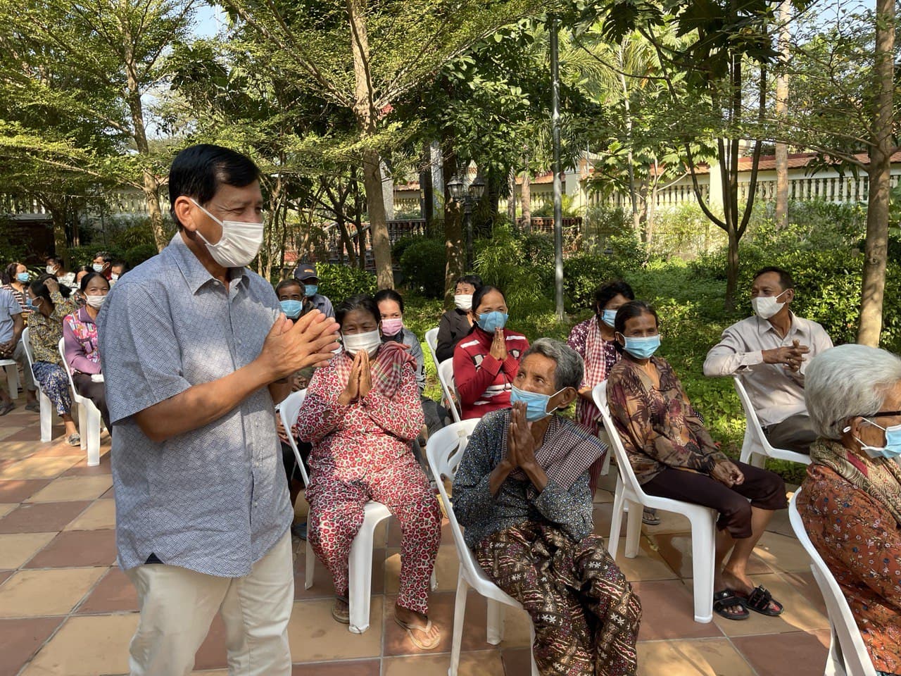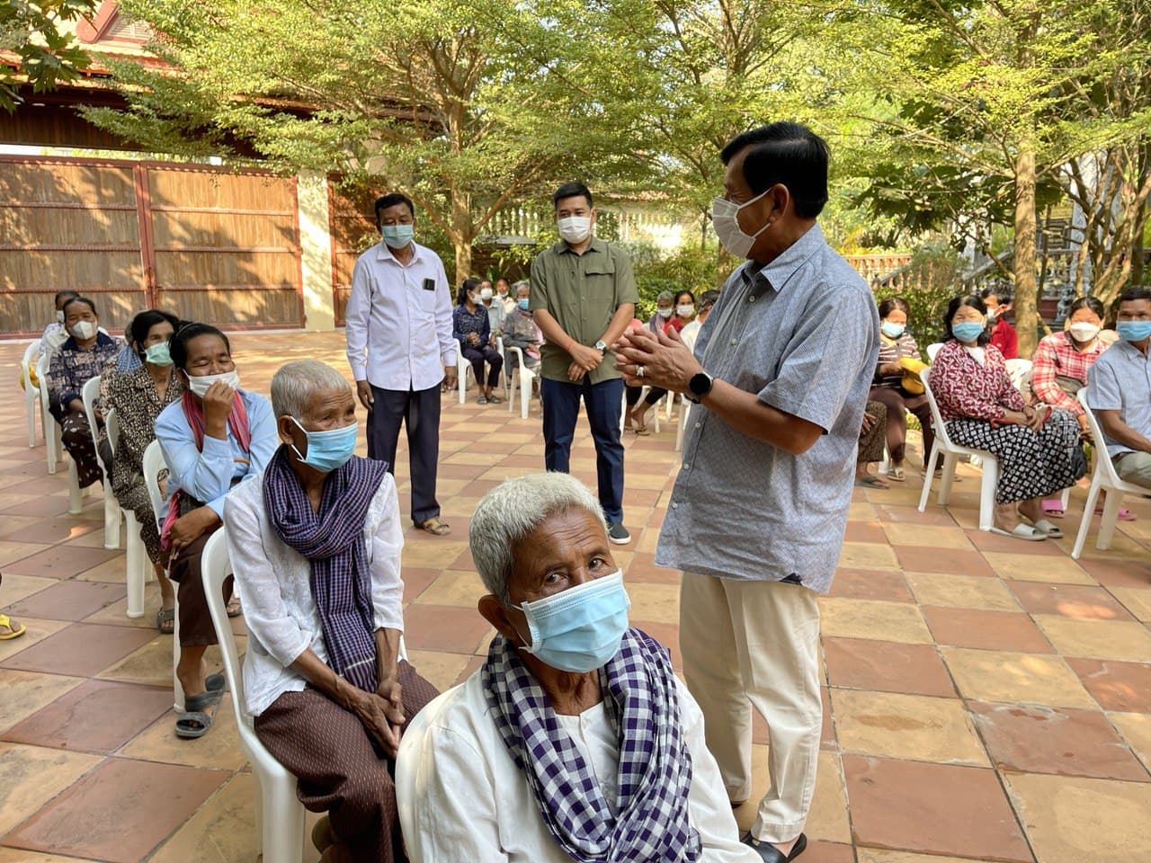 (ស្រុកបាភ្នំ-ខេត្តព្រៃវែង)៖ ព្រឹកថ្ងៃទី២១ ខែមករា ឆ្នាំ២០២២ ឆ្លៀតក្នុងពេលចុះទៅប្រជុំការងារនៅស្រុកបាភ្នំ ខេត្តព្រៃវែង ឯកឧត្តម ព្រុំ សុខា រដ្ឋមន្ត្រីក្រសួងមុខងារសាធារណៈ បានជួបសាកសួរសុខទុក្ខបងប្អូនពលរដ្ឋចាស់ៗប្រមាណ ១៧០នាក់ ដែលធ្លាប់រស់នៅជាមួយគ្នាក្នុងភូមិឃ្លាំង ឃុំឈើកាច់កាលពីជំនាន់ប៉ុលពត តាំងពីជាង៤០ឆ្នាំមុន។