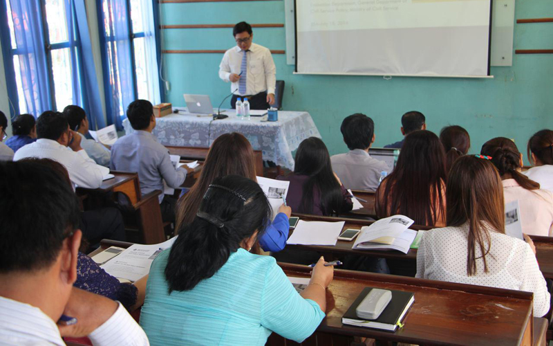 សាលាភូមិន្ទរដ្ឋបាល៖ នាព្រឹកថ្ងៃទី១៨ ខែកក្កដា ឆ្នាំ២០១៦ ក្រសួងមុខងារសាធារណៈ និងលេខាធិការដ្ឋាននៃគណៈកម្មាធិការកែទម្រង់រដ្ឋបាលសាធារណៈ បាននឹងកំពុងរៀបចំសិក្ខាសាលាស្តីពីការចែករំលែកបទពិសោធន៍និងចំណេះដឹង ក្រោមអធិបតីភាពដ៏ខ្ពង់ខ្ពស់របស់ឯកឧត្តម យក់ ប៊ុនណា រដ្ឋលេខាធិការ និងជានាយកសាលាភូមិន្ទរដ្ឋបាល នៃក្រសួងមុខងារសាធារណៈ។ សិក្ខាសាលានេះចាប់ផ្តើមពីថ្ងៃទី១៨ ដល់ថ្ងៃទី២២ ខែកក្កដា ឆ្នាំ២០១៦ ដែលមានសមាសភាពចូលរួមពីប្រធានការិយាល័យនៃក្រសួងមុខងារសាធារណៈចំនួន៥០រូប។ គោលបំណងនៃការរៀបចំសិក្ខាសាលានេះគឺដើម្បីការចែករំលែកនូវទស្សនាទានថ្មីៗ បទពិសោធន៍ល្អៗ និងការអនុវត្តល្អៗដែលវាគ្មិននៃសិក្ខាសាលានេះបានសិក្សាស្វែងយល់ពីវគ្គបណ្តុះបណ្តាលនិងសិក្ខាសាលានានានៅបរទេស។ កម្មវិធីចែករំលែកចំណេះដឹងនិងបទពិសោធន៍នេះគឺជាវប្បធម៌មួយដ៏ល្អដែលជំរុញឱ្យសិក្ខាកាមដែលទទួលការបណ្តុះបណ្តាលពីប្រទេសក្រៅយកចិត្តទុកដាក់ខ្លាំងក្នុងការសិក្សានិងត្រៀមខ្លួនសម្រាប់ធ្វើការចែករំលែកអ្វីដែលខ្លួនបានសិក្សាដល់មន្រ្តីរាជការផ្ទៃក្នុងរបស់ក្រសួង និងជាឱកាសដ៏ល្អផងដែរសម្រាប់មន្រ្តីទាំងនេះដែលត្រូវទទួលបានចំណេះដឹងបន្តពីវាគ្មិនទាំងនេះ។
