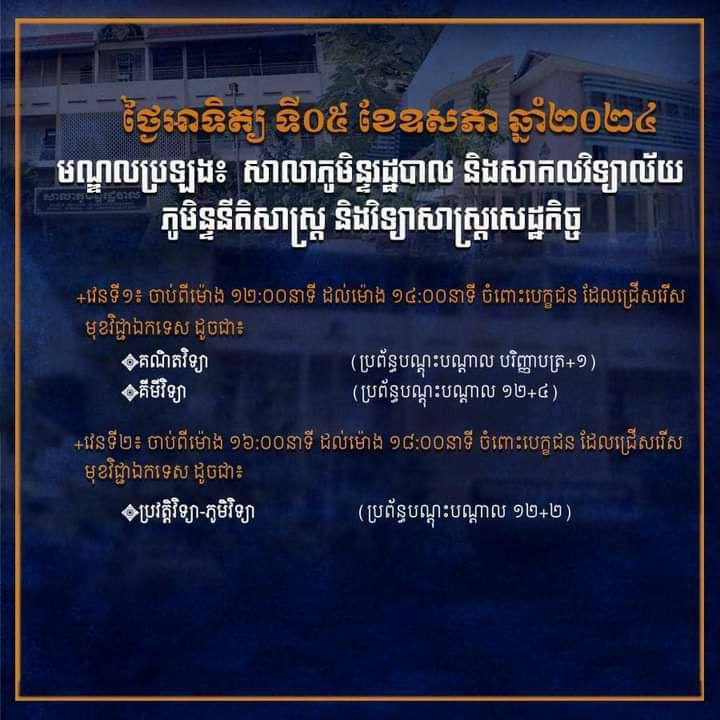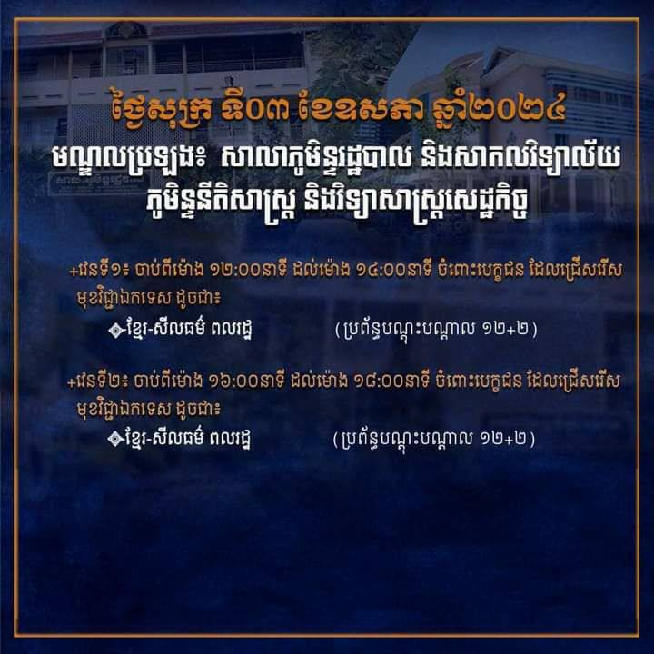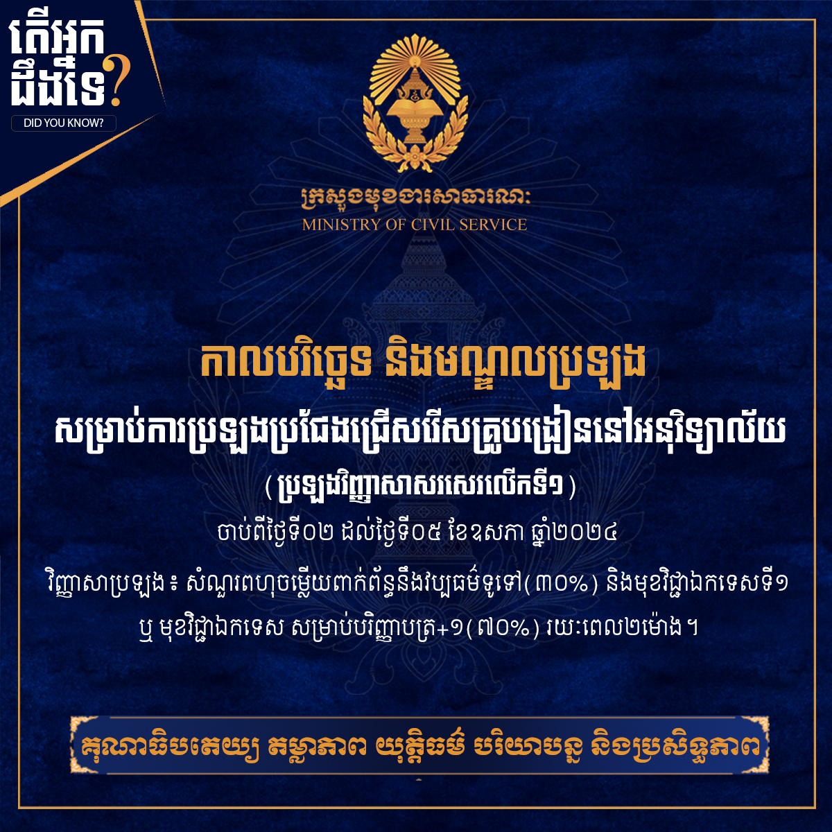 សូមបេក្ខជនប្រឡងគ្រូអនុវិទ្យាល័យ ពិនិត្យការបែងចែកសម័យប្រឡង មណ្ឌលប្រឡង និងវេនប្រឡង