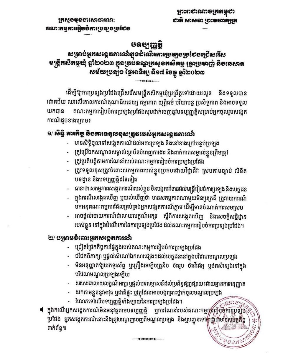 – បទប្បញ្ញត្តិអ្នកសង្កេតការណ៍ នៅមណ្ឌលសំណេរ សាកលវិទ្យាល័យភូមិន្ទភ្នំពេញ