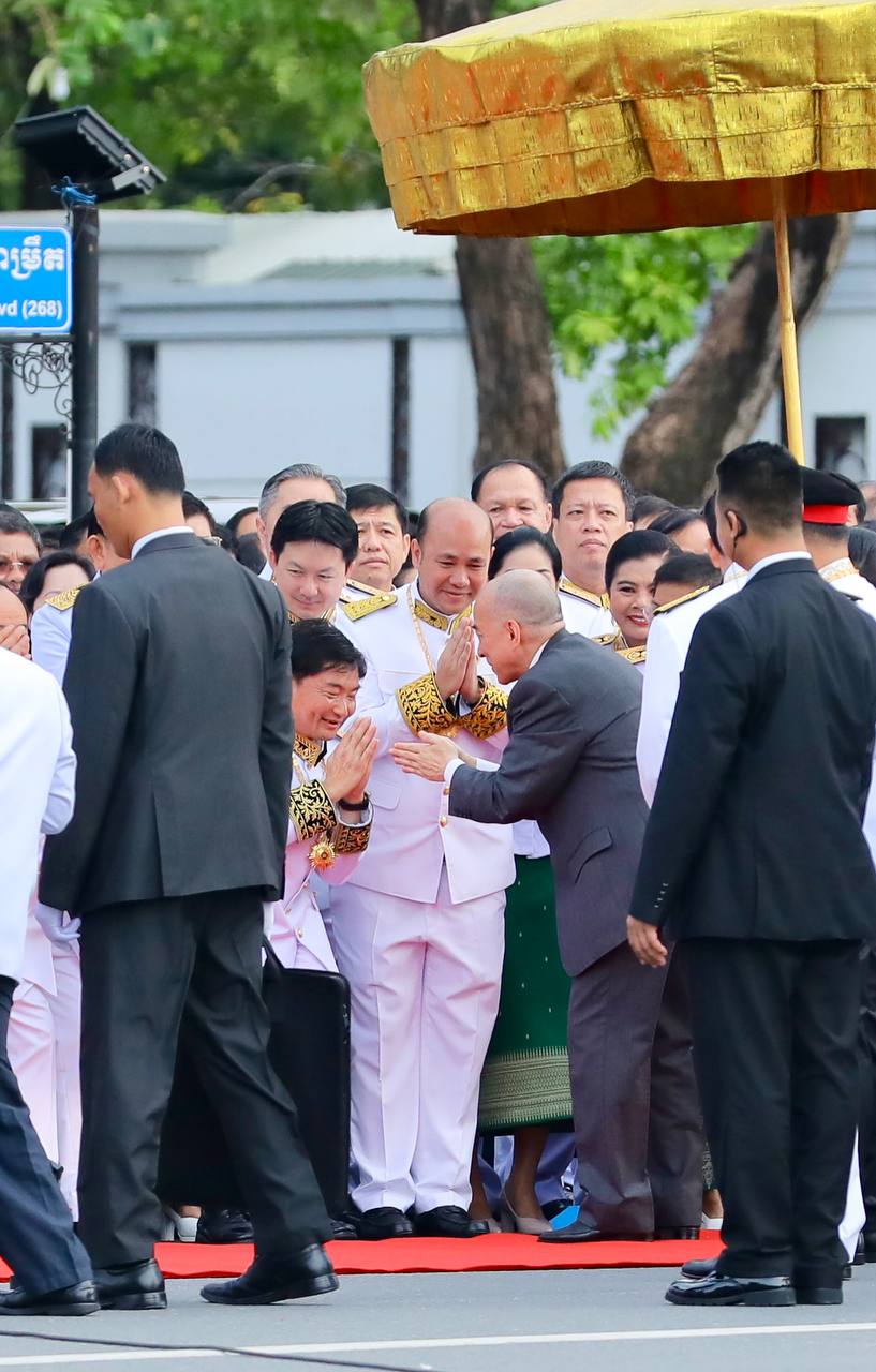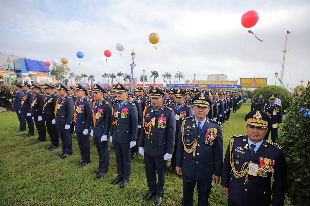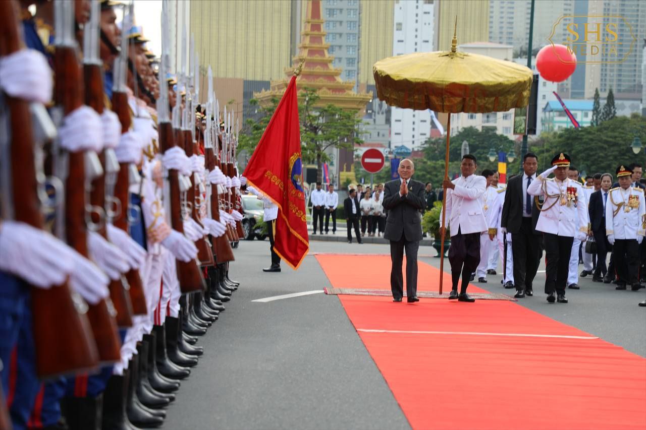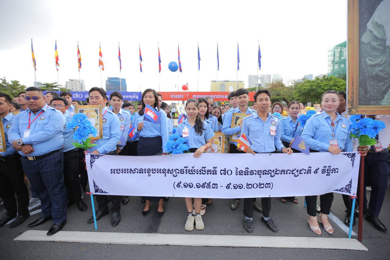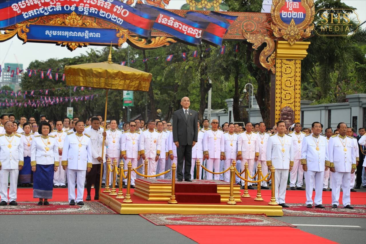 នាព្រឹកដ៏មហានក្ខត្តឫក្សនេះផងដែរ វត្តមានរបស់ថ្នាក់ដឹកនាំកំពូលរបស់កម្ពុជា រួមទាំងថ្នាក់ដឹកនាំជាន់ខ្ពស់នៃរាជរដ្ឋាភិបាល មន្ត្រីរាជការ កងកម្លាំងការពារជាតិ កងយោធពលខេមរភូមិន្ទ សិស្សានុសិស្ស យុវជន និងប្រជាពលរដ្ឋជាច្រើនរូប ក៏ចូលរួមសាមគ្គីមូលមីនៅខាងមុខព្រះបរមរាជវាំង ដើម្បីអបអរសាទទិវាបុណ្យឯករាជ្យជាតិ ផង និងទិវាកំណើតនៃកងយោធពលខេមរភូមិន្ទឆ្នាំ២០២៣ផង។ ទិវាបុណ្យឯករាជ្យជាតិ ៩ វិច្ឆិកា បានរំលឹកឱ្យប្រជាជនខ្មែរគ្រប់ៗរូបចងចាំជានិច្ចនូវព្រះរាជបូជនីយកិច្ចដ៏ឧត្តុង្គឧត្តម និងព្រះរាជបេសកកម្ម ដើម្បីជាតិមាតុភូមិ និងប្រជារាស្ត្រខ្មែររបស់ព្រះករុណា ព្រះបាទសម្តេចព្រះនរោត្តម សីហនុ ព្រះបិតាឯករាជ្យជាតិ ព្រះបរមរតនកោដ្ឋ ដែលព្រះអង្គបានលះបង់ព្រះកាយពល និងព្រះបញ្ញាញាណ តស៊ូក្នុងព្រះរាជបូជនីយកិច្ច ទាមទារឯករាជ្យពេញលេញជូនកម្ពុជា ប្រកបដោយសន្តិវិធី។ រយៈ៧០ ឆ្នាំកន្លងមកនេះ កម្ពុជាបានឆ្លងកាត់នូវដំណើរវិវឌ្ឍន៍លើភាពជាម្ចាស់នៃជោគវាសនា និងអនាគតប្រទេសរបស់ខ្លួន រហូតយើងមានការរីកចម្រើនលូតលាស់បានដូចសព្វថ្ងៃ ក្រោមដំបូលនៃសុខសន្តិភាពដ៏ត្រជាក់ ហើយបន្តឆ្ពោះទៅមុខប្រកបដោយភាពស្វាហាប់។