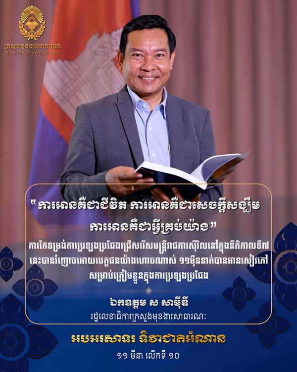 ឯកឧត្តម ស សាម៉ីឌី រដ្ឋលេខាធិការក្រសួងមុខងារសាធារណៈ ធ្លាប់បានលើកឡើងថា “តាមរយៈការកែទម្រង់ការប្រឡងប្រជែងជ្រើសរើសមន្ត្រីរាជការស៊ីវិល ក្នុងនីតិកាលទី៧ នេះ​ បានរំញោចឱ្យបេក្ខជន យ៉ាងហោចណាស់ ១១ម៉ឺននាក់ បានអានសៀវភៅ សម្រាប់ត្រៀមខ្លួនការប្រឡងប្រជែង។” “អានគឺជាជីវិត អានគឺជាសេចក្តីសង្ឃឹម អានគឺជាអ្វីគ្រប់យ៉ាងសម្រាប់ពួកយើង” ឯកឧត្តមបន្ថែម។