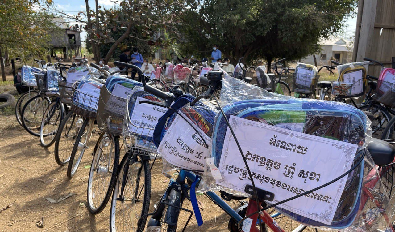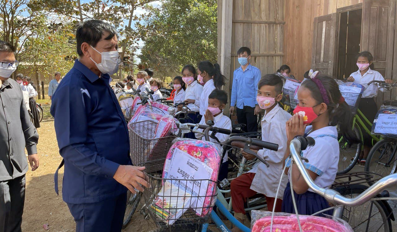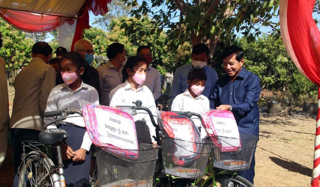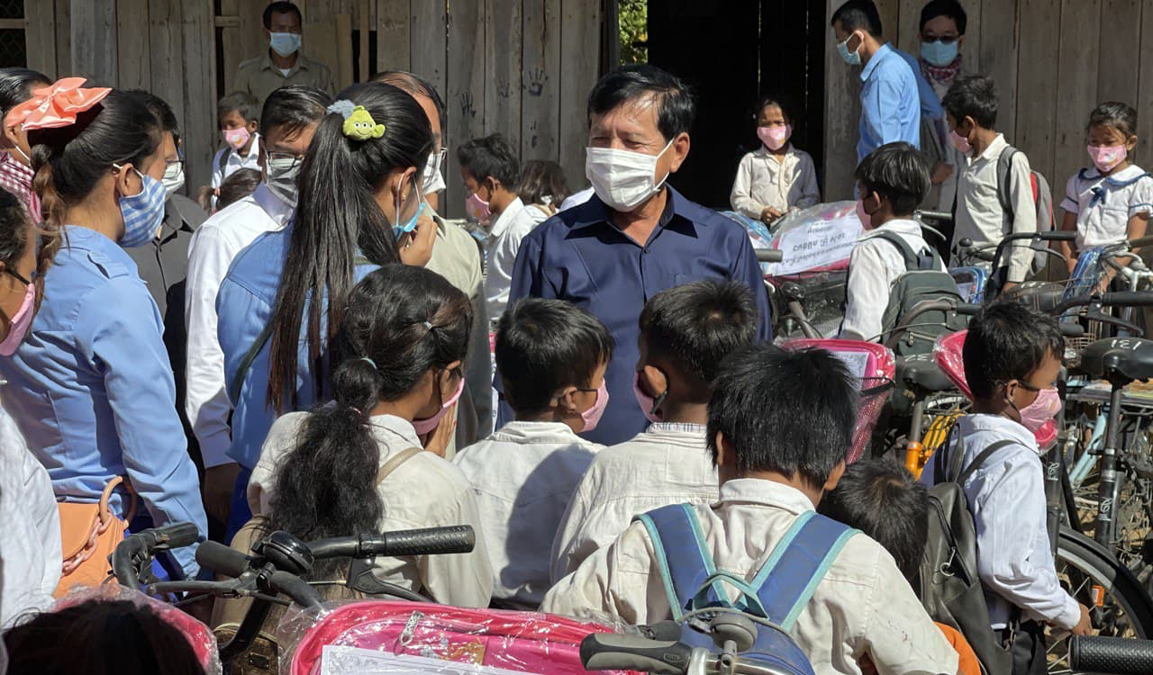អំណោយជាទោចក្រយាន និងសម្ភារៈសិក្សា ត្រូវបានផ្តល់ជូន សិស្សានុសិស្ស ៣៧២នាក់ នៃសាលាបឋមសិក្សា ២កន្លែង នៅស្រុកចិត្របុរី ក្នុងឱកាសបវេសនកាល ឆ្នាំសិក្សា ២០២០-២០២១