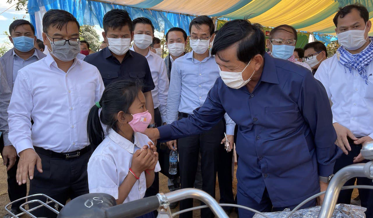 ខេត្តក្រចេះ៖ នាព្រឹកថ្ងៃទី១១ ខែមករា ឆ្នាំ២០២១នេះ នាឱកាសប្រារព្វពិធីបើកបវេសនកាលថ្មីឆ្នាំ២០២១ នៅសាលាបឋមសិក្សាល្អ និងត្រពាំងទ្រាំង ក្នុងឃុំចង្រ្កង់ ស្រុកចិត្របុរី ខេត្តក្រចេះ មានការចែកអំណោយទោចក្រយាន និងសម្ភារៈសិក្សាដល់សិស្សានុសិស្សចំនួន ៣៧២នាក់ និងលោកគ្រូ អ្នកគ្រូចំនួន ១៣នាក់។