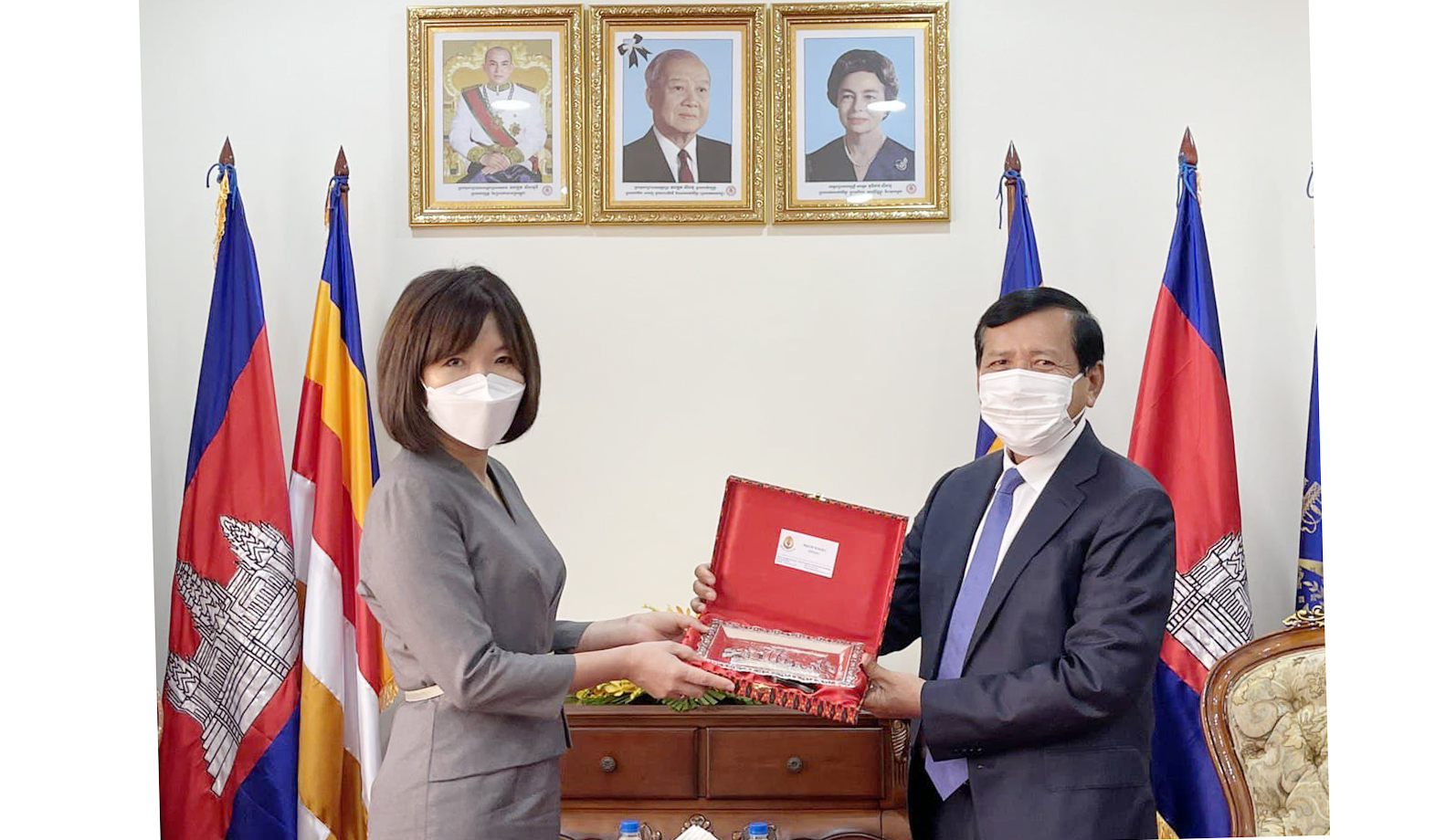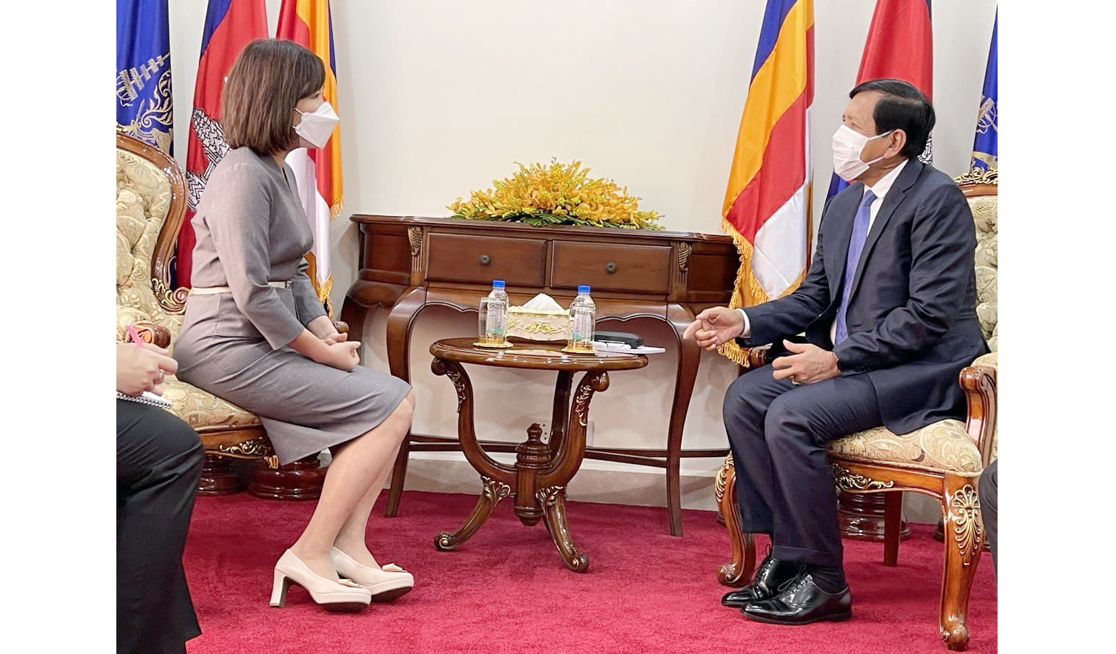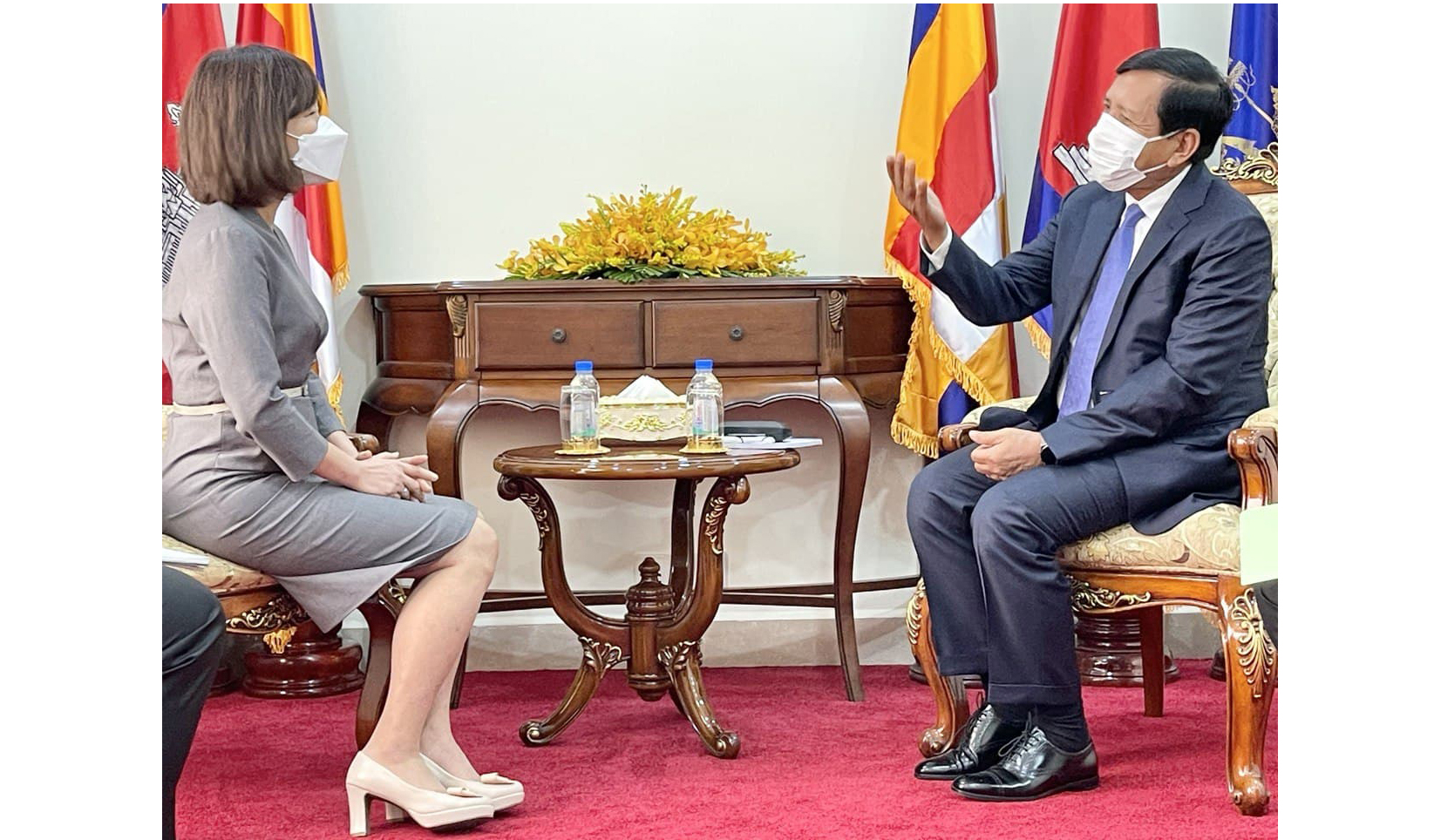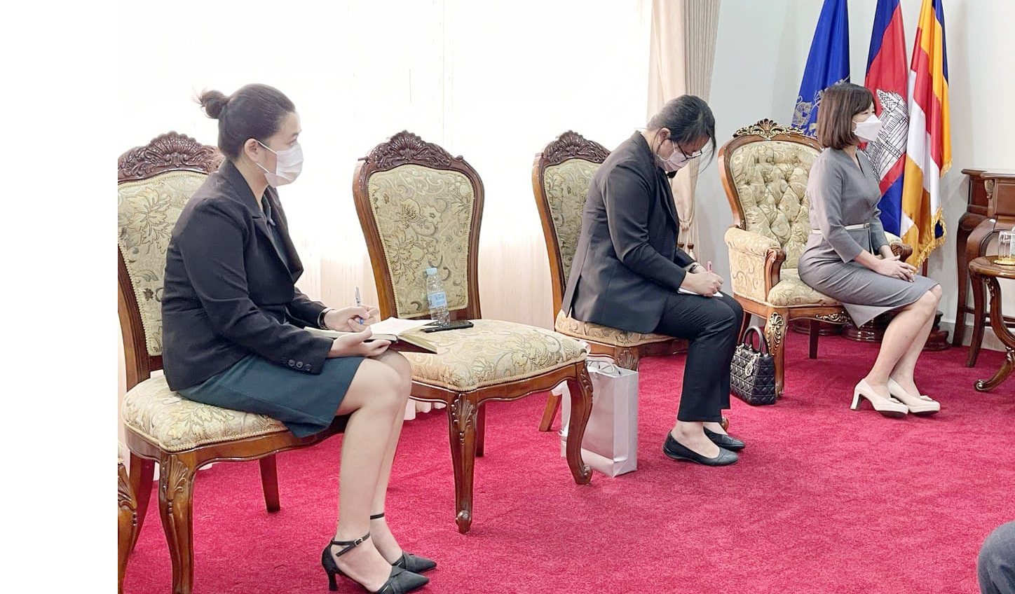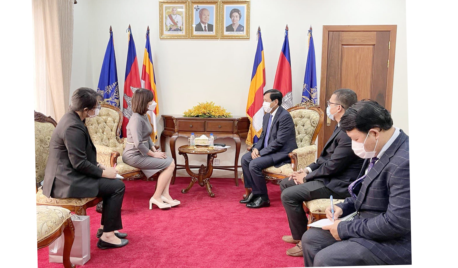 រាជធានីភ្នំពេញ៖ លោកជំទាវ ធាវ ឡេ ឈិង (TEO Lay Cheng) ឯកអគ្គរដ្ឋទូតវិសាមញ្ញ និងពេញសមត្ថភាព នៃសាធារណរដ្ឋសិង្ហបុរីប្រចាំ កម្ពុជាបានចូលជួបសម្ដែងការគួរសមនិងពិភាក្សាការងារជាមួយឯកឧត្តម ព្រុំ សុខា រដ្ឋមន្ត្រីក្រសួងមុខងារសាធារណៈ នាព្រឹកថ្ងៃទី០៦ ខែមេសា ឆ្នាំ២០២១ នៅទីស្ដីការក្រសួងមុខងារសាធារណៈ។