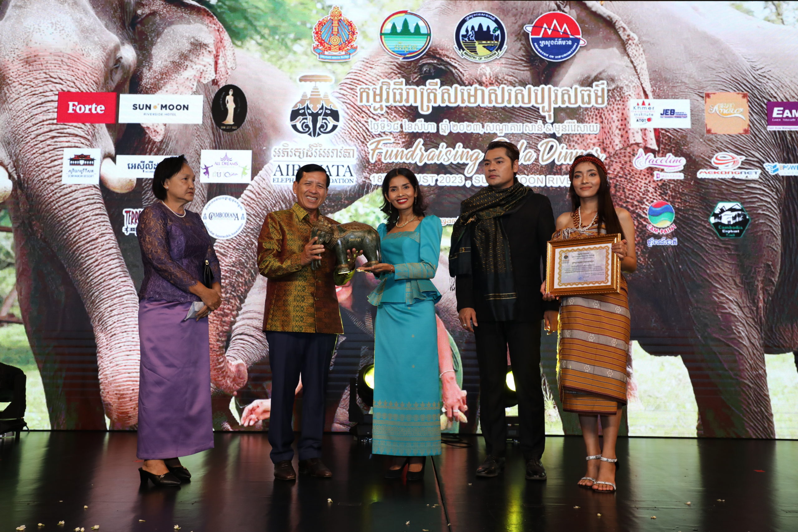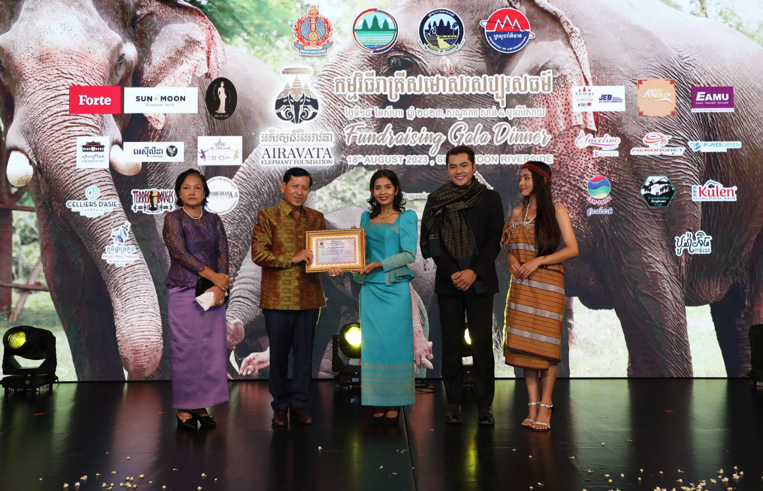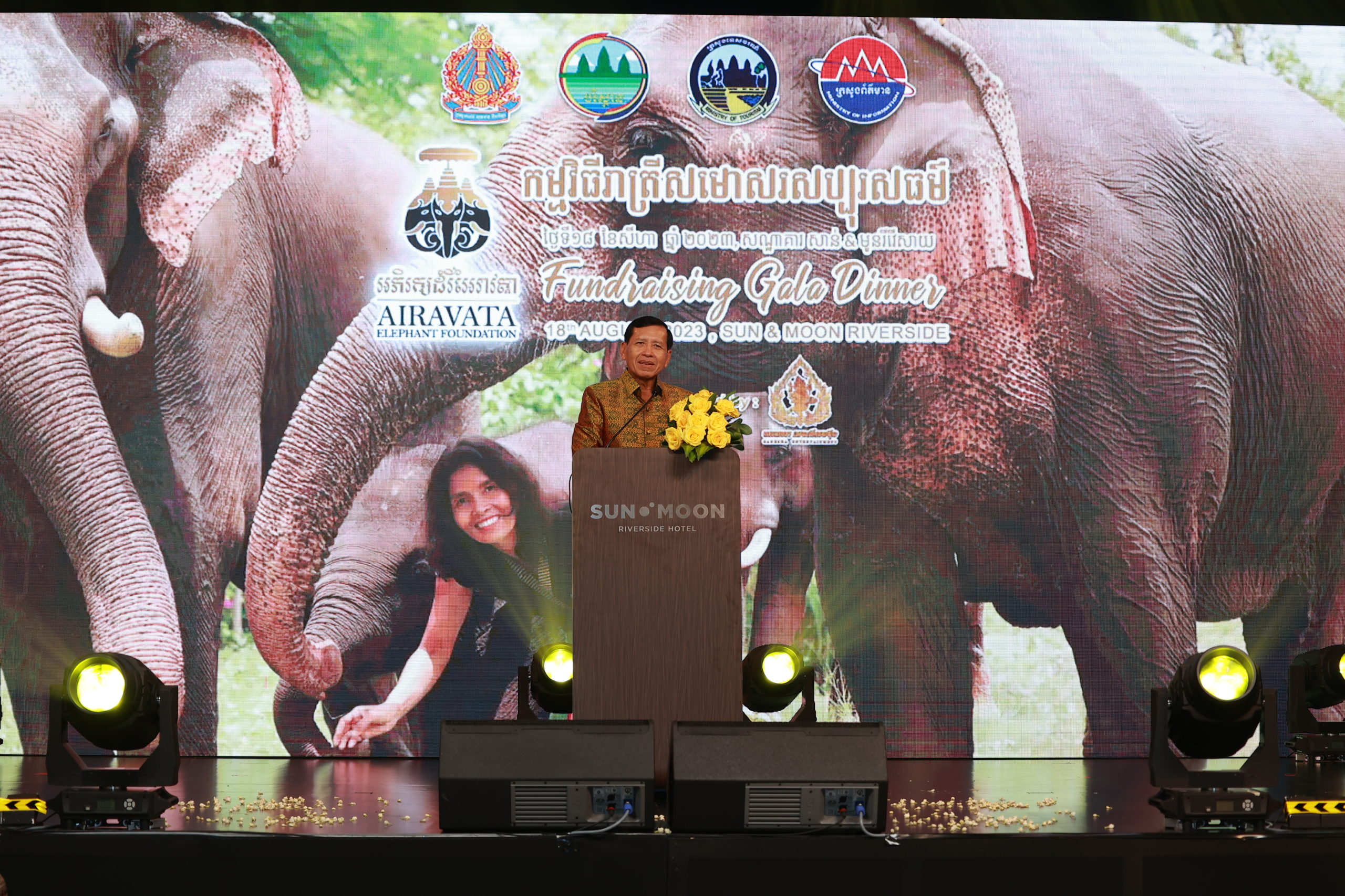 (ភ្នំពេញ)៖ ឯកឧត្ដម ព្រុំ សុខា រដ្ឋមន្រ្តីក្រសួងមុខងារសាធារណៈ កាលពីរាត្រីថ្ងៃទី១៨ ខែសីហា ឆ្នាំ២០២៣បានអញ្ជើញចូលរួមជាអធិបតីភាពក្នុងពិធីរាត្រីសមោសរសប្បុរសធម៌រៃអង្គាសថវិកាលើកទី៥ នៃសមាគមអភិរក្សដំរីអៃរាវត្តា (Airavata Elephant Foundation)នៅសណ្ឋាគារសាន់ អែន មូន រីវើសាយ រាជធានីភ្នំពេញ ដោយមានការចូលរួមពីលោក លោកស្រី ជាថ្នាក់ដឹកនាំក្រសួងស្ថាប័ន និងវិស័យឯកជនមួយចំនួនផងដែរ។