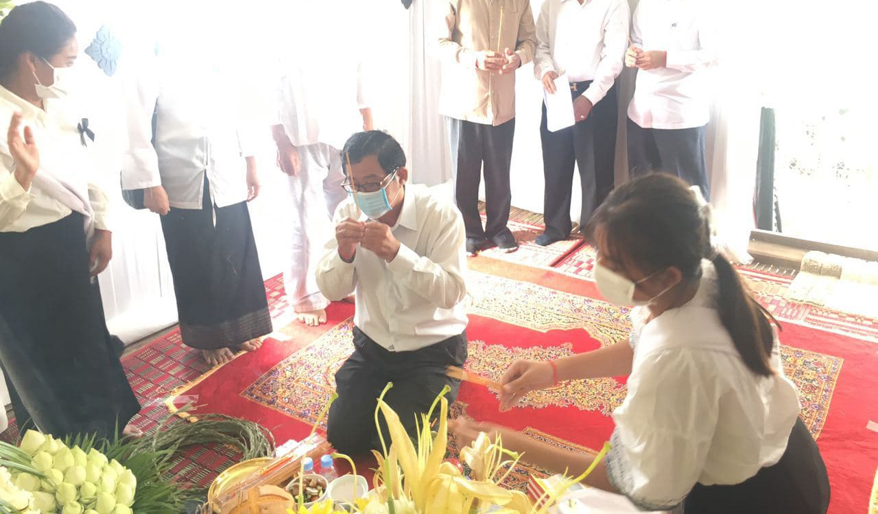 ខេត្តកណ្ដាល៖ កាកពីព្រឹកថ្ងៃអង្គារ ១០រោច ខែកត្ដិក ឆ្នាំជូត ទោស័ក ព.ស ២៥៦៤ ត្រូវនឹងថ្ងៃទី១០ ខែវិច្ឆិកា ឆ្នាំ២០២០ នេះ ឯកឧត្ដម ហង្ស ឆាំឆាន រដ្ឋលេខាធិការ តំណាងដ៏ខ្ពង់ខ្ពស់ឯកឧត្ដម ព្រុំ សុខា រដ្ឋមន្ត្រីក្រសួងមុខងារសាធារណៈ បានអញ្ជើញដឹកនាំគណៈប្រតិភូក្រសួងចូលរួមគោរពវិញ្ញាណក្ខន្ធឧបាសិកា ប៉ាង ឆេងវ៉ាត់ ត្រូវជាម្ដាយបង្កើតឯកឧត្ដម ទិន សុខឃួន អនុរដ្ឋលេខធិការក្រសួងមុខងារសាធារណៈ នៅភូមិព្រែកតាទន់ ឃុំព្រះប្រសប់ ស្រុកខ្សាច់កណ្ដាល ខេត្តកណ្ដាល។