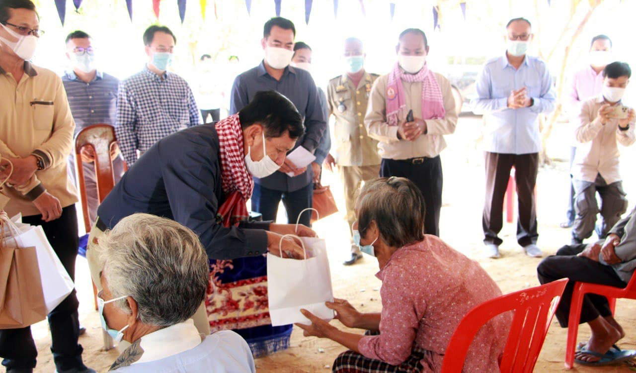 ខេត្តក្រចេះ៖ ដើម្បីចូលរួមអបអរសាទរទិវាសិទ្ធិនារីអន្តរជាតិ៨មីនា ឯកឧត្តម ព្រុំ សុខា រដ្ឋមន្ត្រីក្រសួងមុខងារសាធារណៈនិងជាប្រធានក្រុមការងារខេត្តក្រចេះរួមជាមួយសហការីជាមន្ត្រីដឹកនាំក្រសួង មន្ទីរ និងអស់លោក លោកស្រី ជាអភិបាលស្រុក មេឃុំ ព្រមទាំងមន្ត្រីមូលដ្ឋានភូមិ ឃុំមួយចំនួនទៀត បានចុះទៅសាកសួរសុខទុក្ខលោកយាយ លោកតាចាស់ៗដែលមានជីវភាពលំបាកខ្វះខាត។