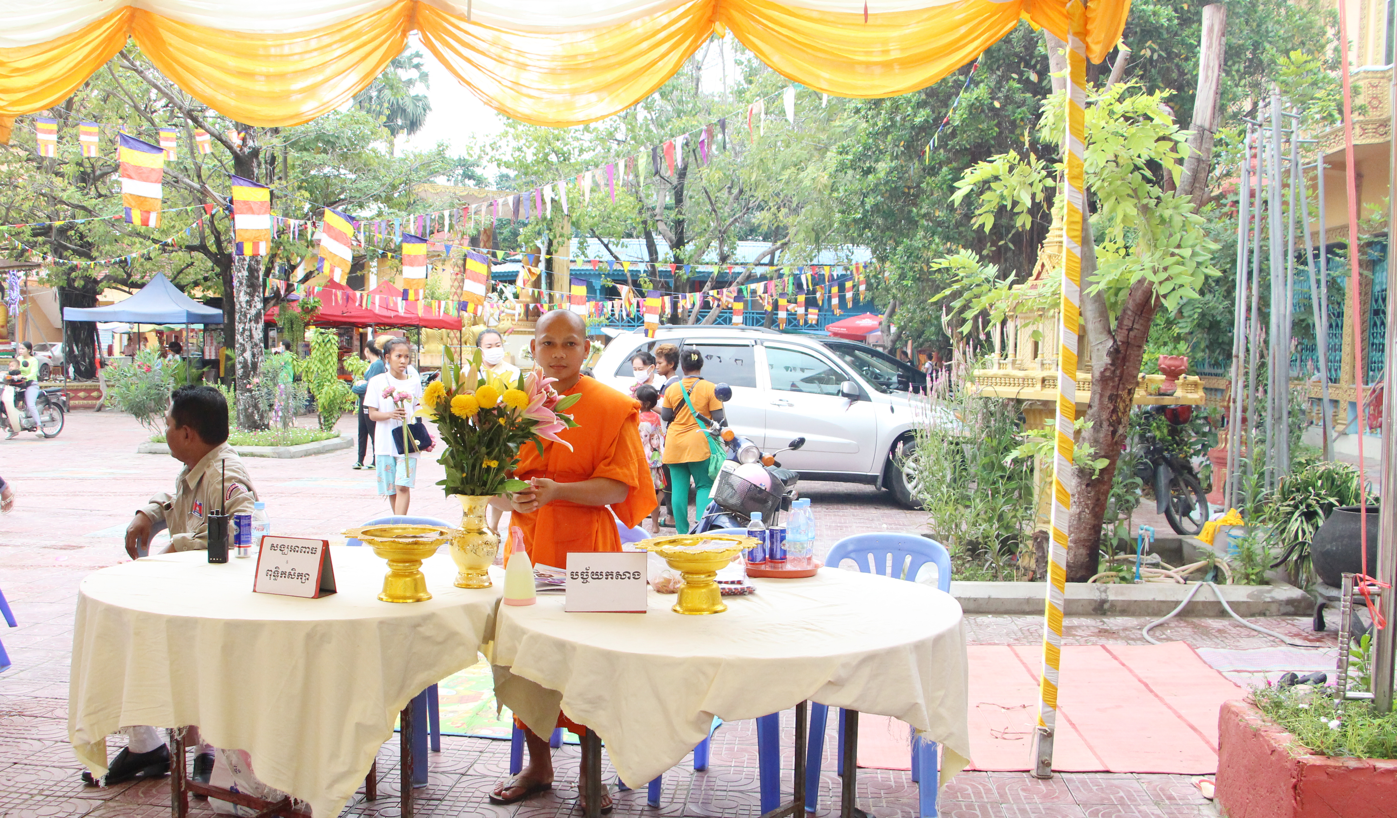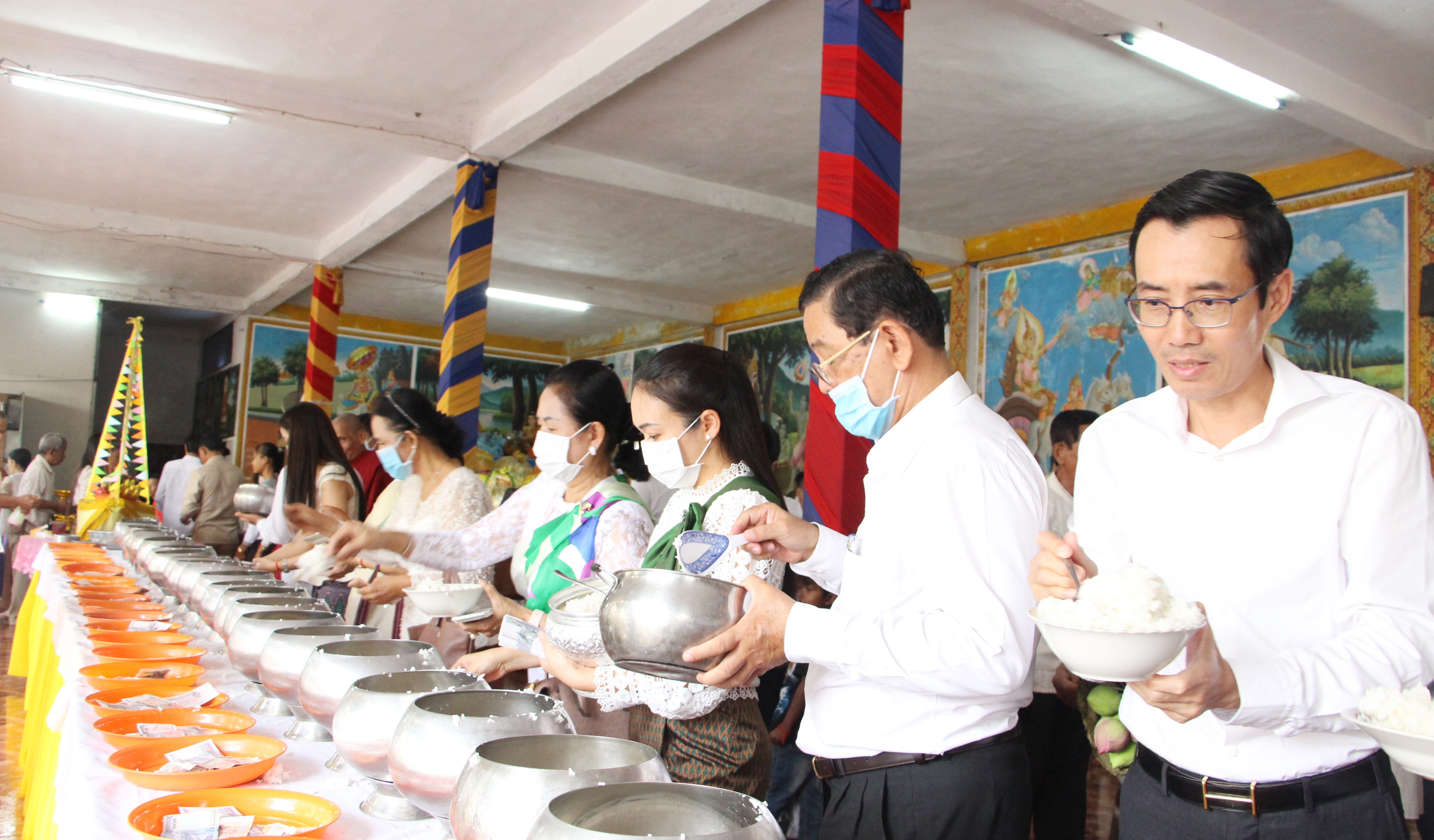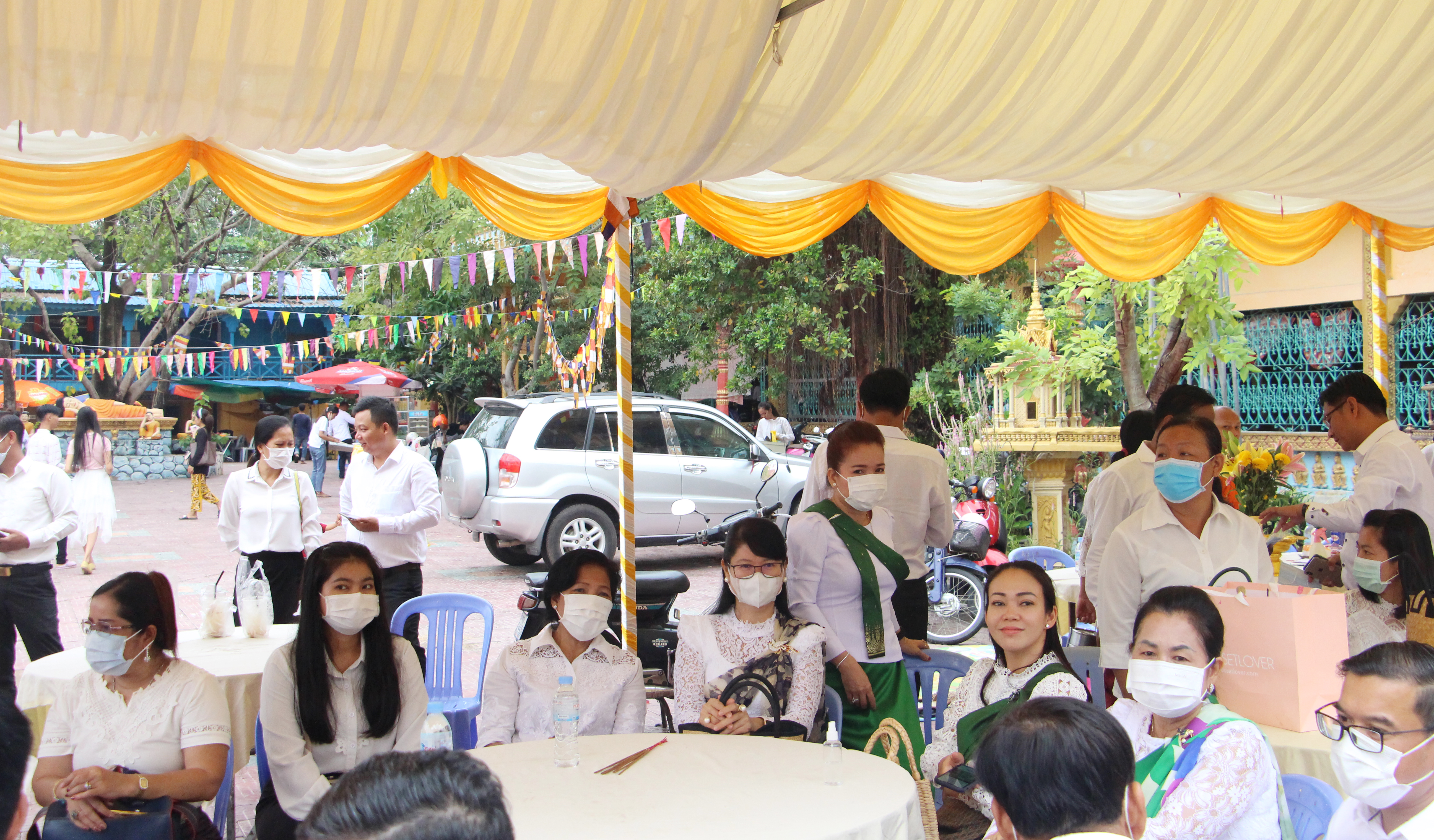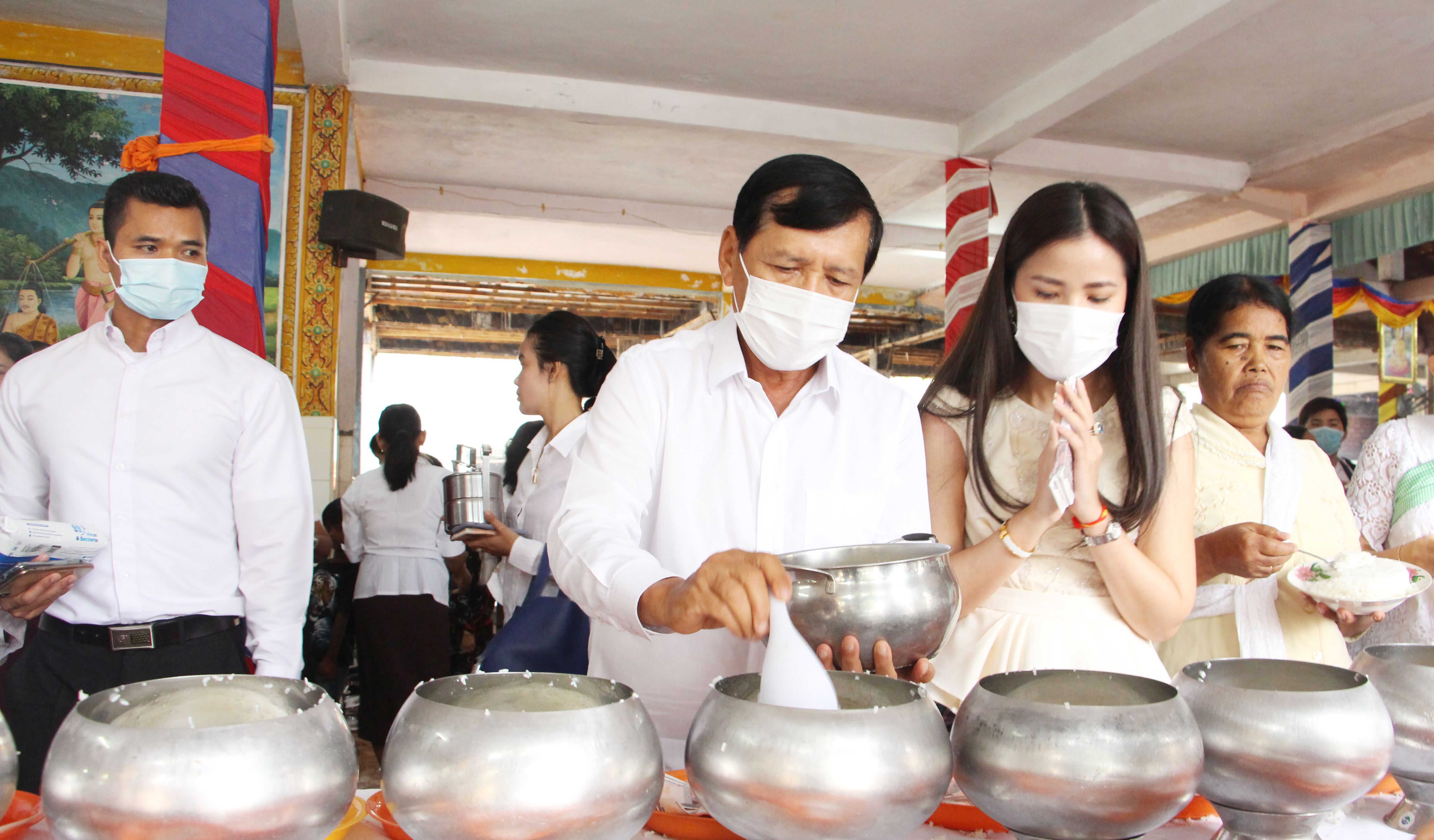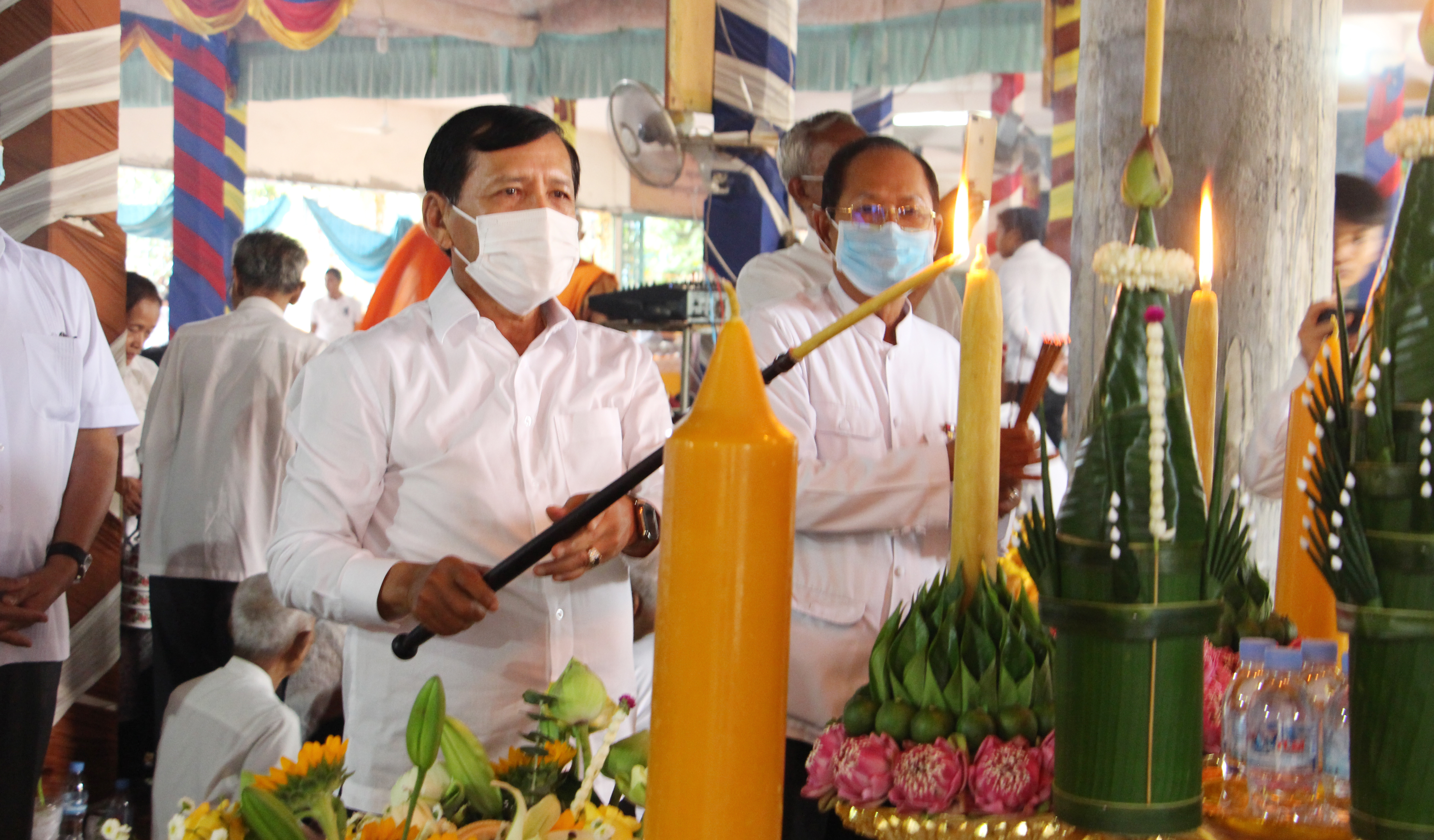 រាជធានីភ្នំពេញ៖ នាព្រឹកថ្ងៃព្រហស្បតិ៍ ១រោច ខែភទ្របទ ឆ្នាំជូត ទោស័ក ពុទ្ធសករាជ ២៥៦៤ ត្រូវនឹងថ្ងៃទី០៣ ខែកញ្ញា ឆ្នាំ២០២០ ឯកឧត្តម ព្រុំ សុខា រដ្ឋមន្ត្រី និងឯកឧត្តម លោកជំទាវ លោក លោកស្រី រដ្ឋលេខាធិការ អនុរដ្ឋលេខាធិការ នាយកខុទ្ទកាល័យ អគ្គនាយក អគ្គាធិការ ព្រមទាំងមន្ត្រីរាជការក្រសួងមុខងារសាធារណៈ បានអញ្ជើញចូលរួមពិធីបុណ្យកាន់បិណ្ឌវេនទី១ នៅវត្តអង្គតាម៉ិញ ខណ្ឌពោធិ៍សែនជ័យ រាជធានីភ្នំពេញ។ ក្នុងពិធីនេះដែរ ក៏មានការអញ្ជើញចូលរួមពីសំណាក់ លោកអភិបាលខណ្ឌពោធិ៍សែនជ័យ មន្ត្រីរាជការខណ្ឌ ចៅសង្កាត់ និងប្រជាពលរដ្ឋ ពុទ្ធបរិស័ទចំណុះជើងវត្តជិតឆ្ងាយ យ៉ាងច្រើនកុះករ ពោរពេញដោយសេចក្តីជ្រះថ្លា រីករាយដែលថ្នាក់ដឹកនាំ មន្ត្រីរាជការ ព្រមទាំងប្រជាពលរដ្ឋបានមកធ្វើបុណ្យកាន់បិណ្ឌវេនទី១នេះរួមគ្នា តាមប្រពៃណីព្រះពុទ្ធសាសនា។