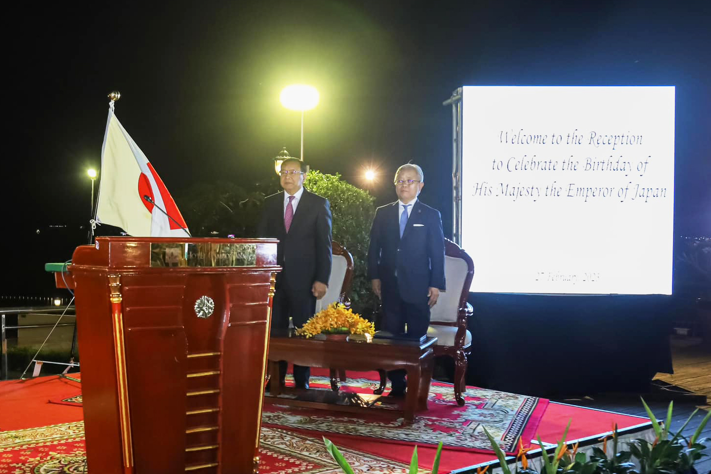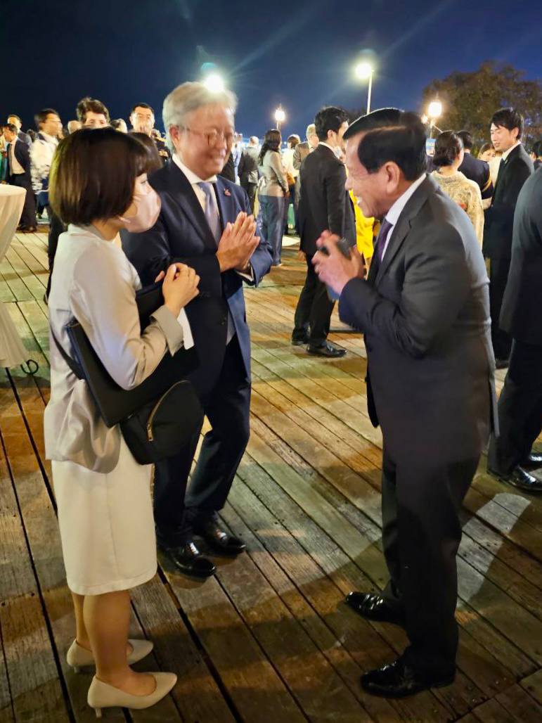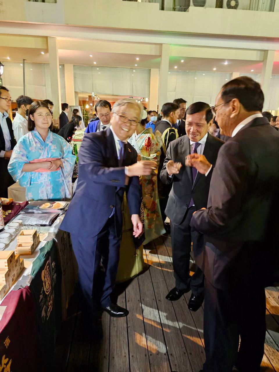 (ភ្នំពេញ)៖ ឯកឧត្តមរដ្ឋមន្ត្រីក្រសួងមុខងារសាធារណៈបានអញ្ជើញចូលរួមពិសាអាហារពេលល្ងាច ជាមួយឯកអគ្គរាជទូតជប៉ុន ក្នុងឱកាសអបអរសាទរព្រះរាជពិធីចម្រើនព្រះជន្មាយុព្រះចៅអធិរាជជប៉ុន ដែលប្រព្រឹត្តទៅនៅថ្ងៃទី២៧ ខែកុម្ភៈ ឆ្នាំ២០២៣ នៅសណ្ឋាគារកាំបូឌីយ៉ាណា៕