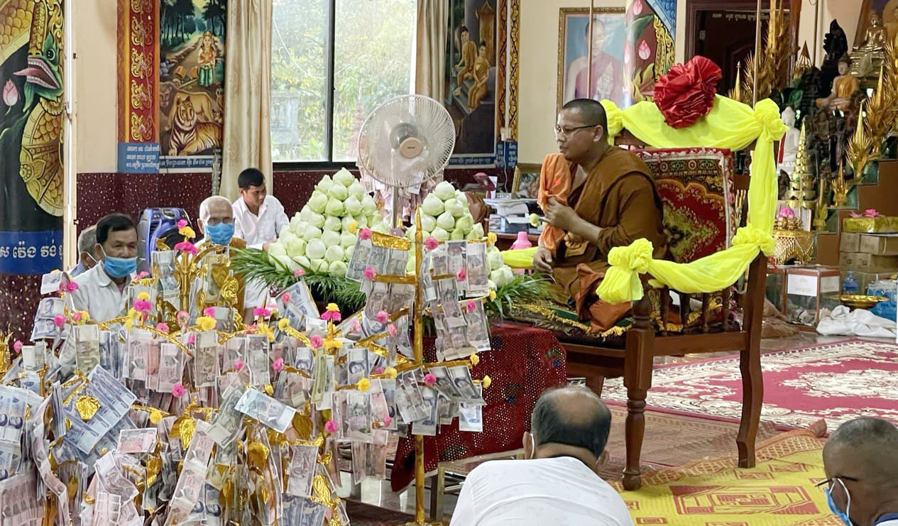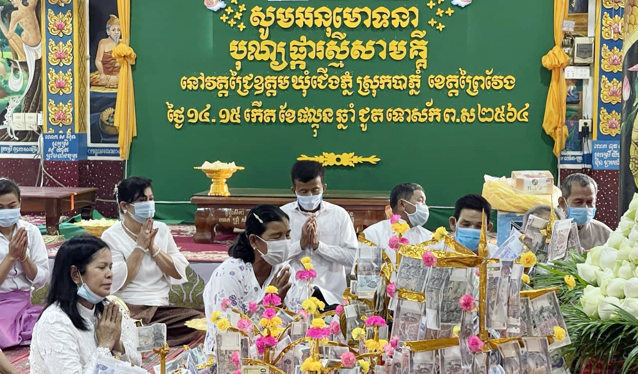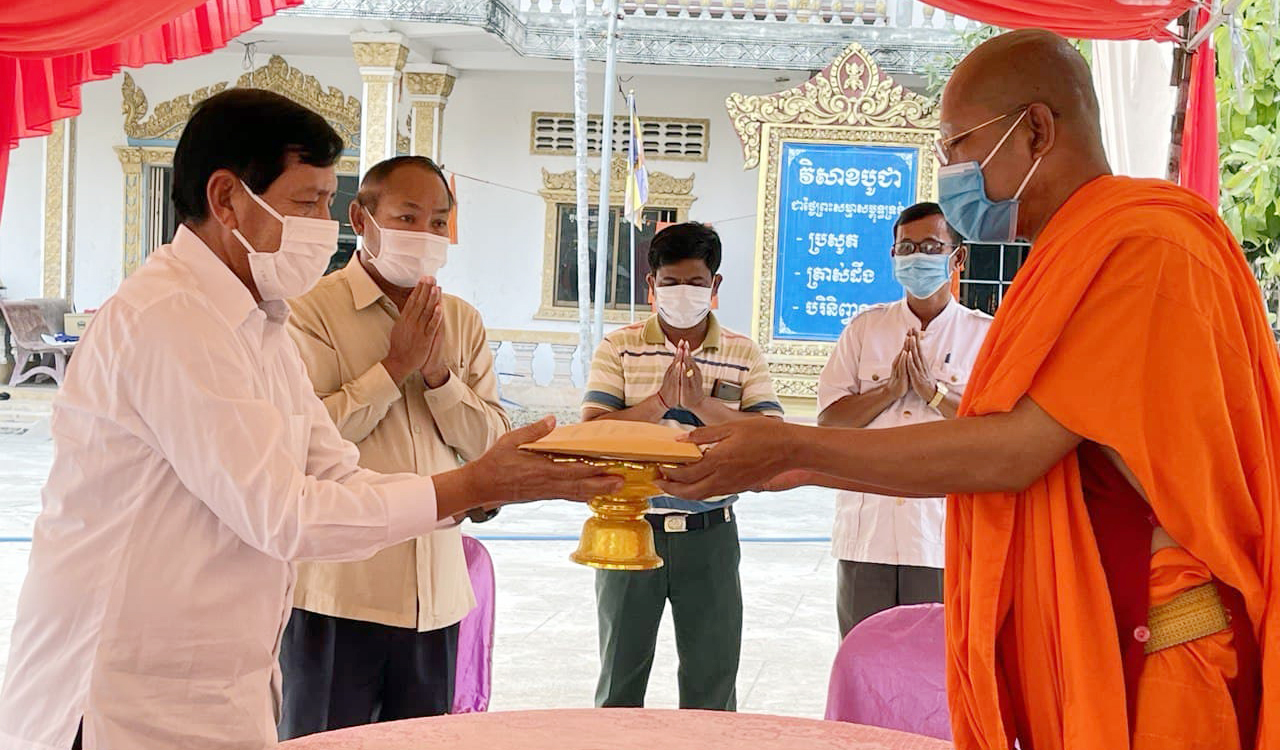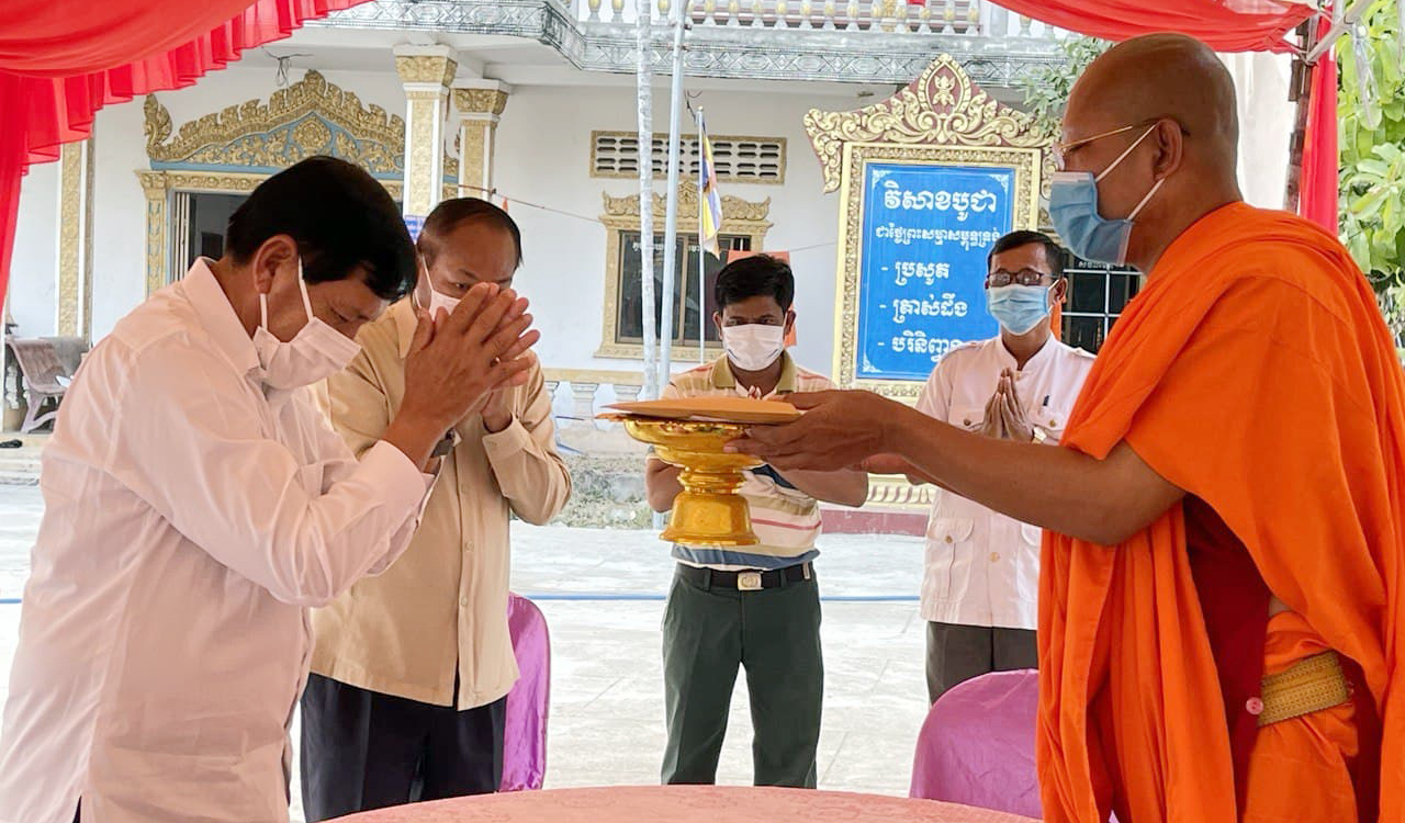 ខេត្តព្រៃវែង៖នារសៀលថ្ងៃព្រហស្បតិ៍ ១៤កើត ខែផល្គុន ឆ្នាំជូត ទោស័ក ព.ស ២៥៦៤ ត្រូវនឹងថ្ងៃទី២៥ ខែកុម្ភៈ ឆ្នាំ២០២១នេះ ឯកឧត្តមរដ្ឋមន្ត្រី ព្រុំ សុខា និងឯកឧត្តម អែវ ប៊ុនថុល រដ្ឋលេខាធិការក្រសួងមុខងារសាធារណៈ បានអញ្ជើញចូលរួមបុណ្យផ្ការស្មីសាមគ្គីកសាងមហាកុដិ នៅវត្តជ្រៃឧត្តម ស្ថិតក្នុងឃុំជើងភ្នំ ស្រុកបាភ្នំ ខេត្តព្រៃវែង ដោយបាននាំយកនូវបច្ច័យរបស់ឯកឧត្តម និងក្រុមគ្រួសារ ព្រមទាំងមន្ត្រីក្រោមឱវាទផ្ទាល់ ចំនួន ១០.៧៣០.០០០រៀល (ដប់លាន ចិតសិបបីម៉ឺនរៀល) ដើម្បីចូលរួមក្នុងពិធីបុណ្យនេះ។