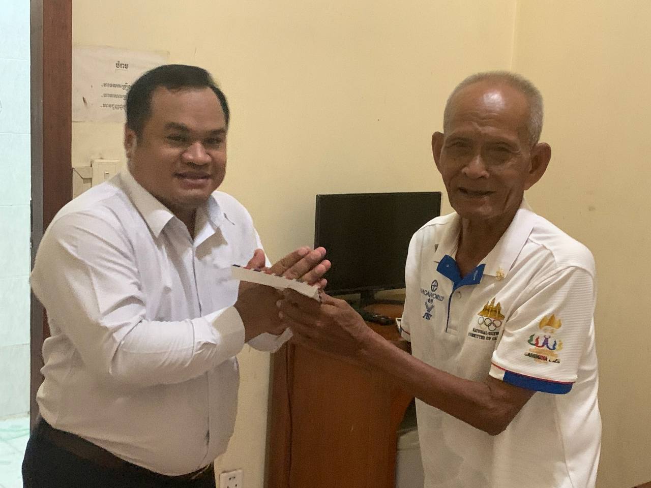 (រាជធានីភ្នំពេញ)៖ ឯកឧត្តម ព្រុំ សុខា រដ្ឋមន្ត្រីក្រសួងមុខងារសាធារណៈ និងជាប្រធានក្រុមការងាររាជរដ្ឋាភិបាលចុះមូលដ្ឋានខេត្តក្រចេះ មានសទ្ធាជ្រះថ្លាឧបត្ថម្ភថវិកា ១០០ ដុល្លារអាមេរិក ជូនដល់លោកតា ហាក់ ស៊ាងឡាយ អាយុ ៨៦ឆ្នាំ ដែលបានជិះម៉ូតូដោយខ្លួនឯងនិងតែម្នាក់ឯងពីស្រុកស្នួល ខេត្តក្រចេះ ដើម្បីមកមើលការប្រកួតស៊ីហ្គេម កីឡាអុកចត្រង្គ ដែលកំពុងប្រព្រឹត្តទៅនៅរាជធានីភ្នំពេញ។