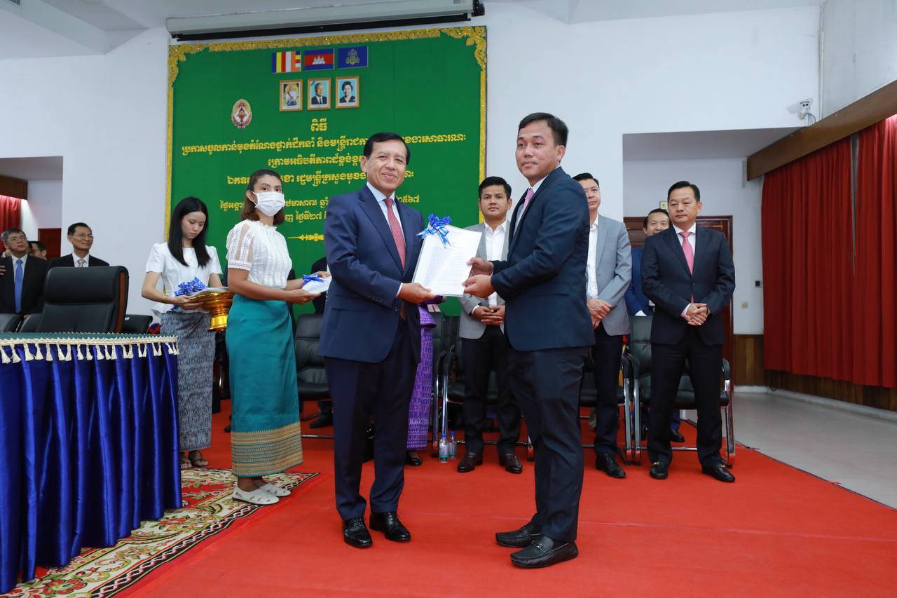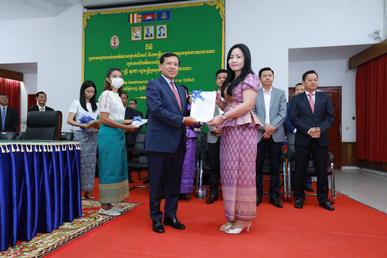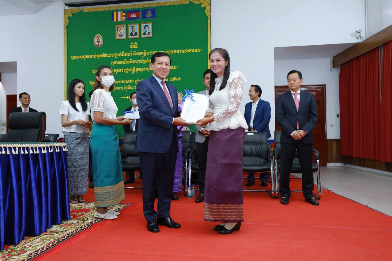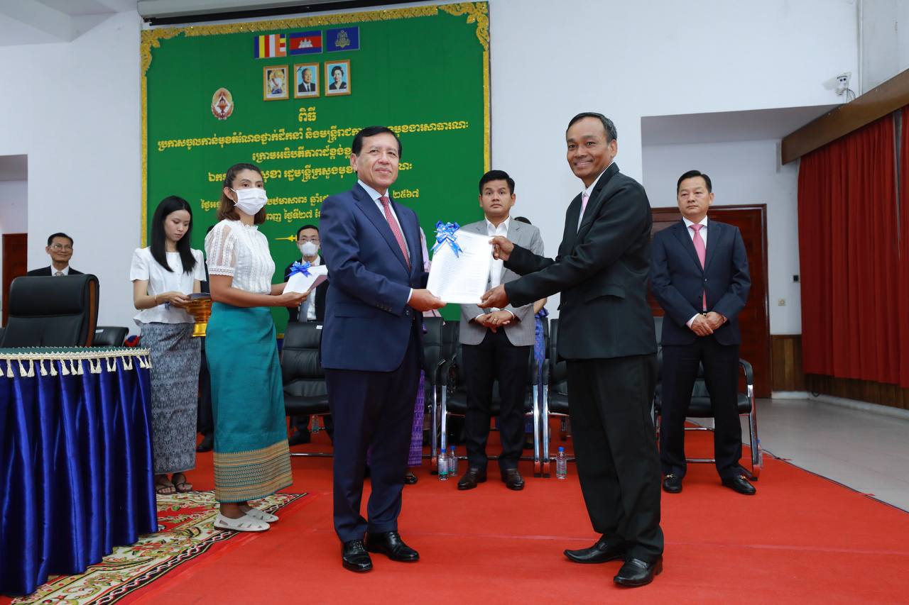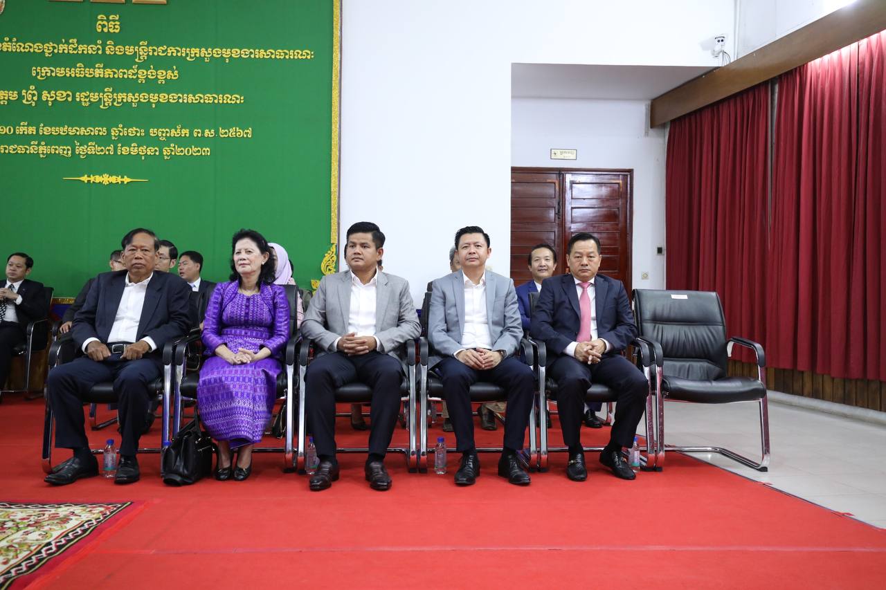 (ភ្នំពេញ)៖ រសៀលថ្ងៃទី២៧ ខែមិថុនា ឆ្នាំ២០២៣ ឯកឧត្តម ព្រុំ សុខា រដ្ឋមន្ត្រីក្រសួងមុខងារសាធារណៈបានអញ្ជើញជាអធិបតីភាពក្នុងពិធីប្រកាសចូលកាន់មុខតំណែងថ្នាក់ដឹកនាំ និងមន្ត្រីរាជការ នៃក្រសួងមុខងារសាធារណៈ។