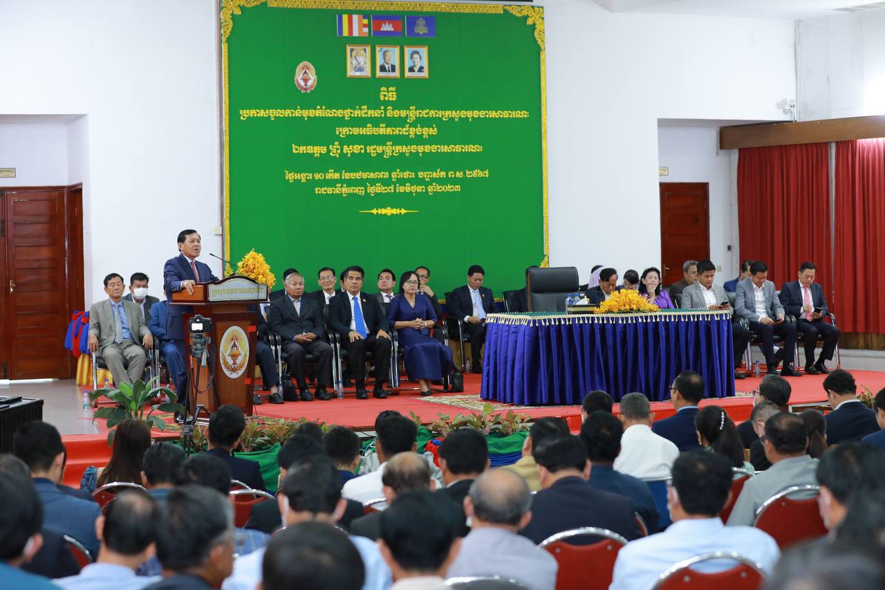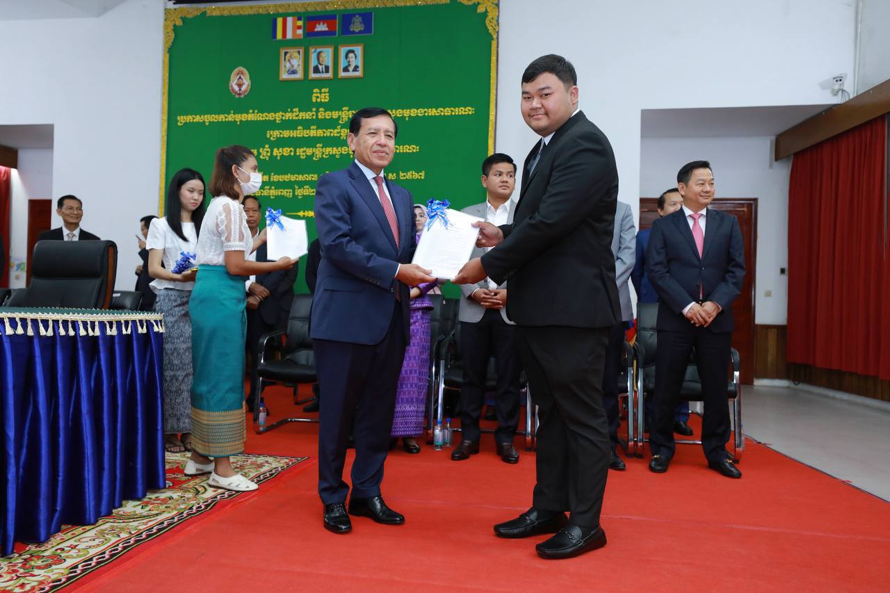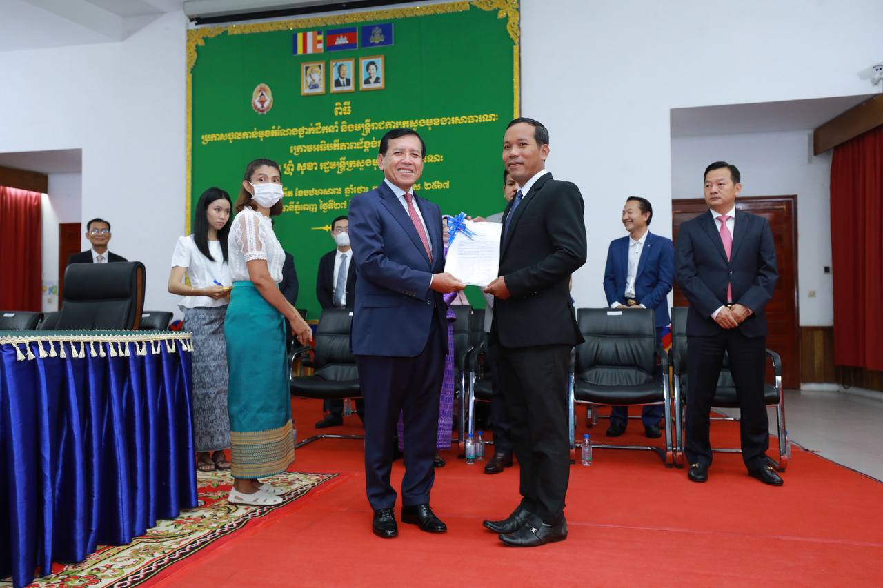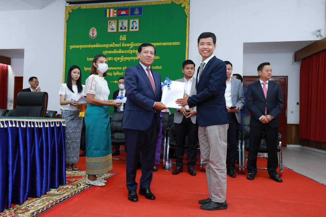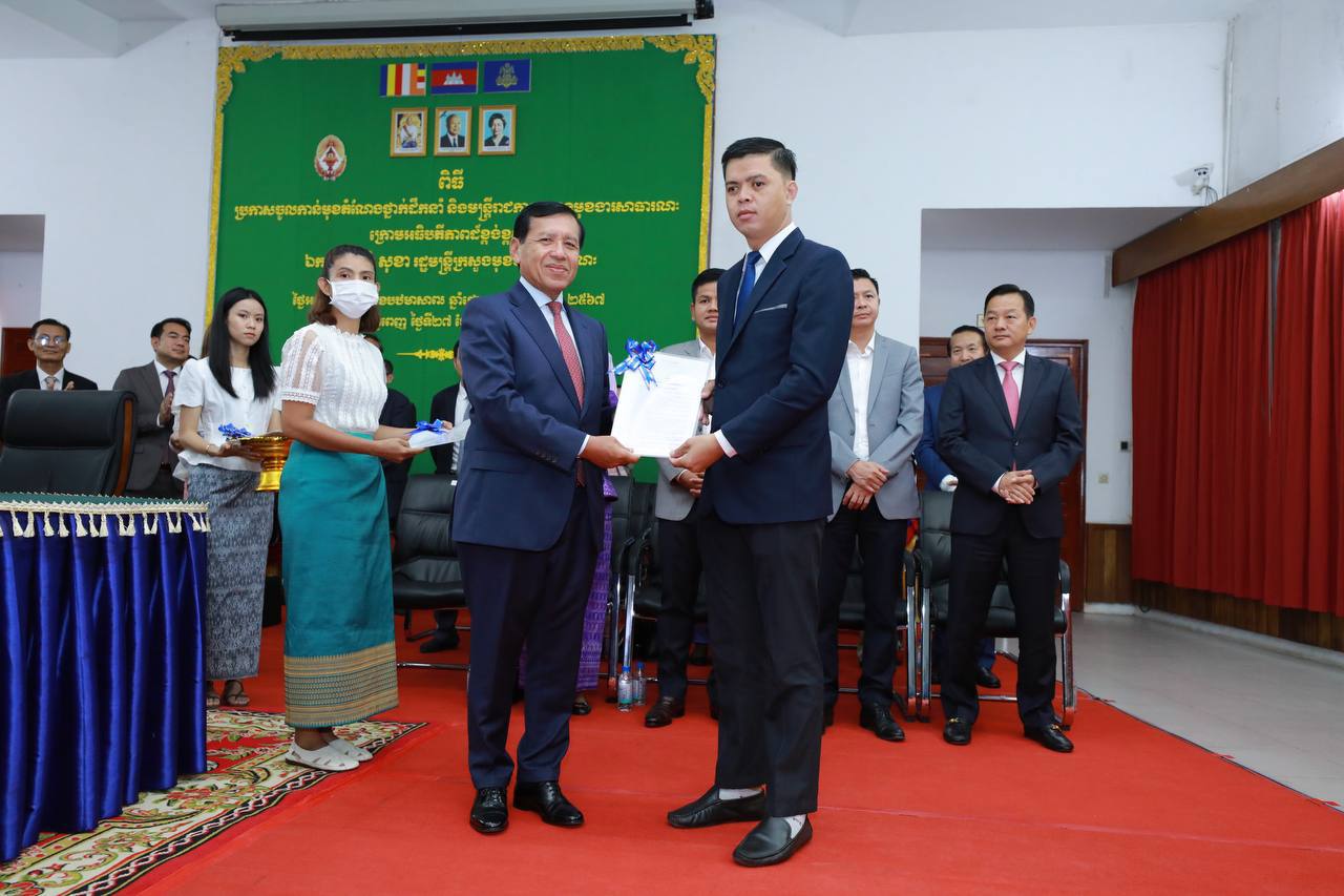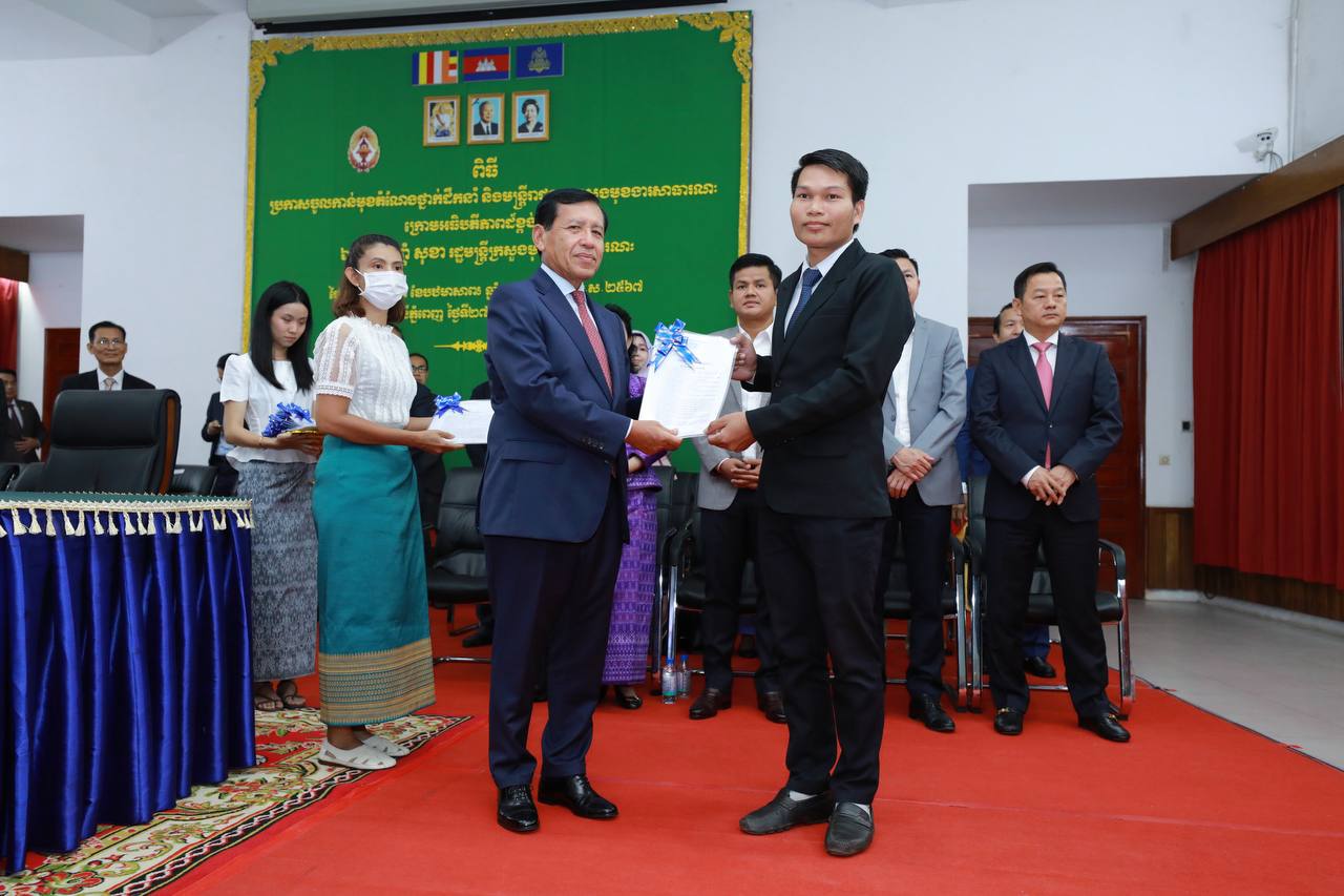 (ភ្នំពេញ)៖ រសៀលថ្ងៃទី២៧ ខែមិថុនា ឆ្នាំ២០២៣ ឯកឧត្តម ព្រុំ សុខា រដ្ឋមន្ត្រីក្រសួងមុខងារសាធារណៈបានអញ្ជើញជាអធិបតីភាពក្នុងពិធីប្រកាសចូលកាន់មុខតំណែងថ្នាក់ដឹកនាំ និងមន្ត្រីរាជការ នៃក្រសួងមុខងារសាធារណៈ។
