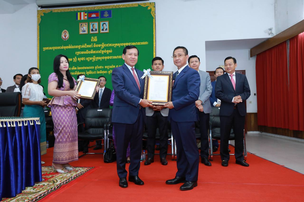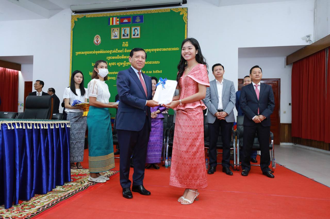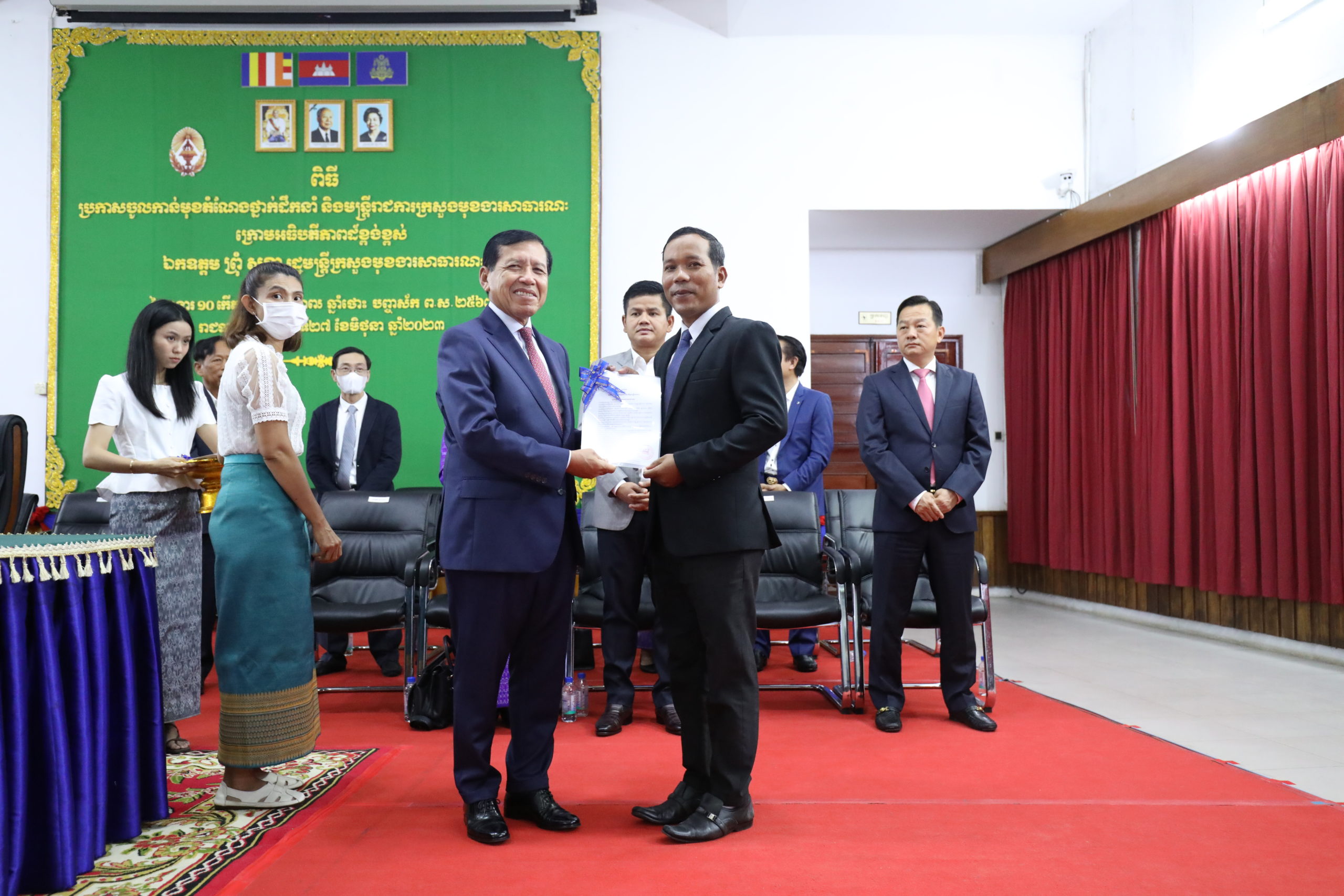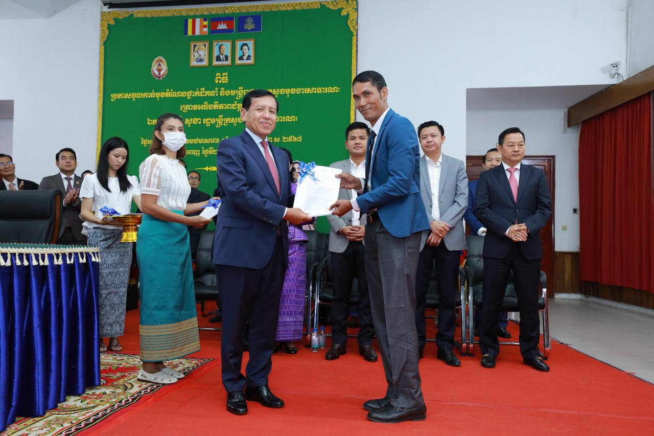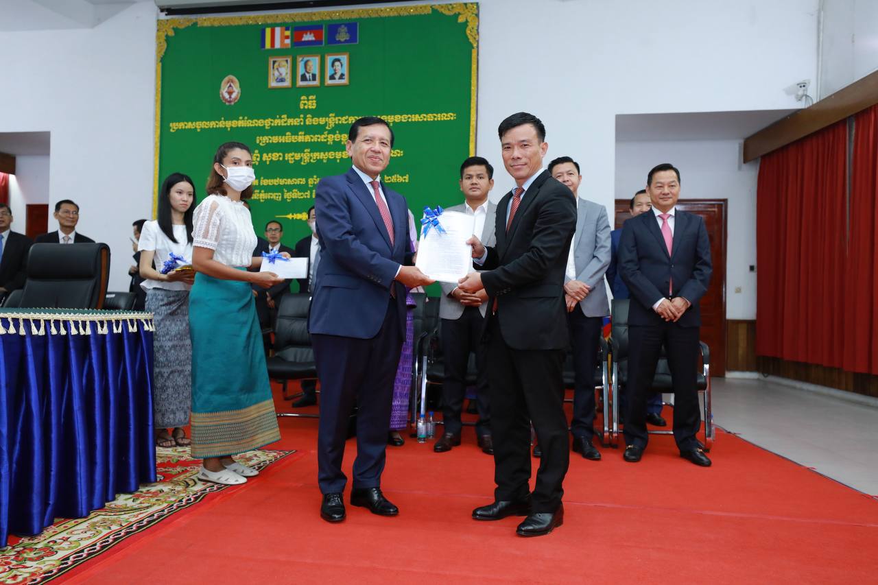 (ភ្នំពេញ)៖ រសៀលថ្ងៃទី២៧ ខែមិថុនា ឆ្នាំ២០២៣ ឯកឧត្តម ព្រុំ សុខា រដ្ឋមន្ត្រីក្រសួងមុខងារសាធារណៈបានអញ្ជើញជាអធិបតីភាពក្នុងពិធីប្រកាសចូលកាន់មុខតំណែងថ្នាក់ដឹកនាំ និងមន្ត្រីរាជការ នៃក្រសួងមុខងារសាធារណៈ។