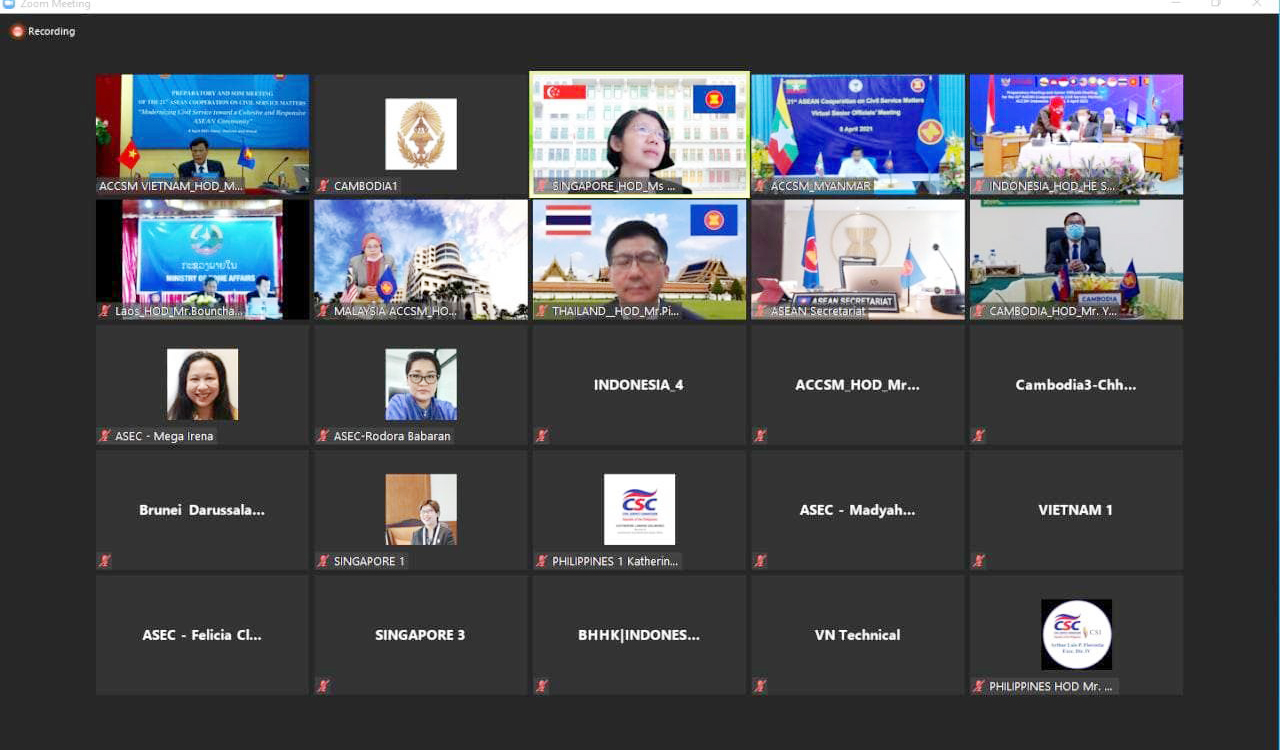 កិច្ចប្រជុំនេះបានពិនិត្យ និងពិភាក្សាលើវឌ្ឍនភាពនៃការអនុវត្តផែនការការងារ ក្នុងកិច្ចសហប្រតិបត្តិការអាស៊ានលើវិស័យមុខងារសាធារណៈ និងមុខងារសាធារណៈបូកបី ឆ្នាំ២០២១-២០២៥ ដែលក្នុងនោះកម្ពុជាមានគម្រោងចំនួន៥ ដែលនឹងត្រូវអនុវត្តចាប់ពីឆ្នាំ២០២១ តទៅ ។