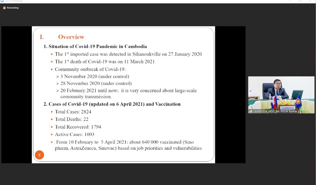 រាជធានីភ្នំពេញ៖ នៅថ្ងៃទី០៨ ខែមេសា ឆ្នាំ២០២១នេះ ឯកឧត្តម យក់ ប៊ុនណា រដ្ឋលេខាធិការប្រចាំការនៃក្រសួងមុខងារសាធារណៈ និងជានាយកសាលាភូមិន្ទរដ្ឋបាល បានដឹកនាំគណៈប្រតិភូក្រសួងមុខងារ សាធារណៈកម្ពុជា ចូលរួមកិច្ចប្រជុំត្រៀម និងកិច្ចប្រជុំមន្ត្រីជាន់ខ្ពស់មុខងារសាធារណៈអាស៊ាន លើកទី២១ (Preparatory Meeting and Senior Officials’ Meeting of the 21st ACCSM) តាមប្រព័ន្ធវីដេអូ រៀបចំដោយក្រសួងមហាផ្ទៃនៃប្រទេសវៀតណាម។