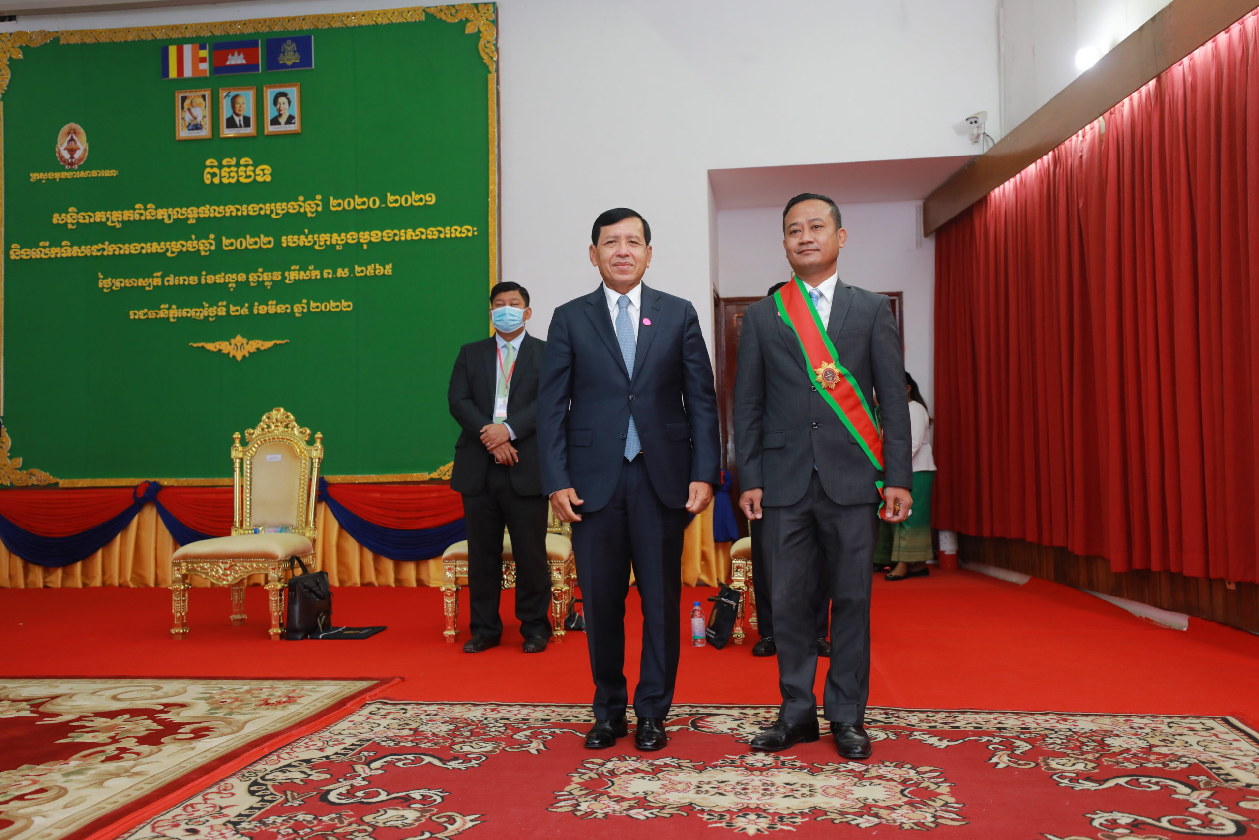 (ភ្នំពេញ)៖ ឯកឧត្តមអគ្គបណ្ឌិតសភាចារ្យ អូន ព័ន្ធមុនីរ័ត្ន ឧបនាយករដ្ឋមន្រ្តី រដ្ឋមន្រ្តីក្រសួងសេដ្ឋកិច្ច និងហិរញ្ញវត្ថុ តំណាងដ៏ខ្ពង់ខ្ពស់សម្តេចអគ្គមហាសេនាបតីតេជោ ហ៊ុន សែន នាយករដ្ឋមន្រ្តី នៃព្រះរាជាណាចក្រកម្ពុជា បានអញ្ជើញជាអធិបតីក្នុងពិធីបិទសន្និបាតត្រួតពិនិត្យលទ្ធផលការងារប្រចាំឆ្នាំ២០២០-២០២១ និងលើកទិសដៅការងារសម្រាប់ឆ្នាំ២០២២ របស់ក្រសួងមុខងារសាធារណៈ។