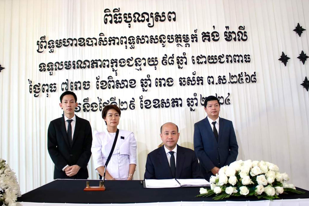 នារសៀលថ្ងៃទី៣១ ខែឧសភា ឆ្នាំ២០២៤ ឯកឧត្តម ហ៊ុន ម៉ានី ឧបនាយករដ្ឋមន្ត្រី រដ្ឋមន្ត្រីក្រសួងមុខងារសាធារណៈ បានដឹកនាំប្រតិភូ អញ្ជើញចូលរួមគោរពវិញ្ញាណក្ខន្ធ ព្រឹទ្ធមហាឧបាសិកាពុទ្ធសាសនូបត្ថម្ភក៏ គង់ ម៉ាលី ត្រូវជាបងស្រីបង្កើត សម្ដេចចៅហ្វាវាំងវរវៀងជ័យ អធិបតីស្រឹង្គា ឧបនាយករដ្ឋមន្ត្រី រដ្ឋមន្ត្រីក្រសួងព្រះបរមរាជវាំង បានទទួលអនិច្ចកម្ម កាលពីថ្ងៃពុធ ៧រោច ខែពិសាខ ឆ្នាំរោង ឆស័ក ព.ស.២៥៦៨ ត្រូវនឹងថ្ងៃទី២៩ ខែឧសភា ឆ្នាំ២០២៤ វេលាម៉ោង ១៦:២០នាទី ក្នុងជន្មាយុ ៩៨ឆ្នាំ ដោយជរាពាធ។