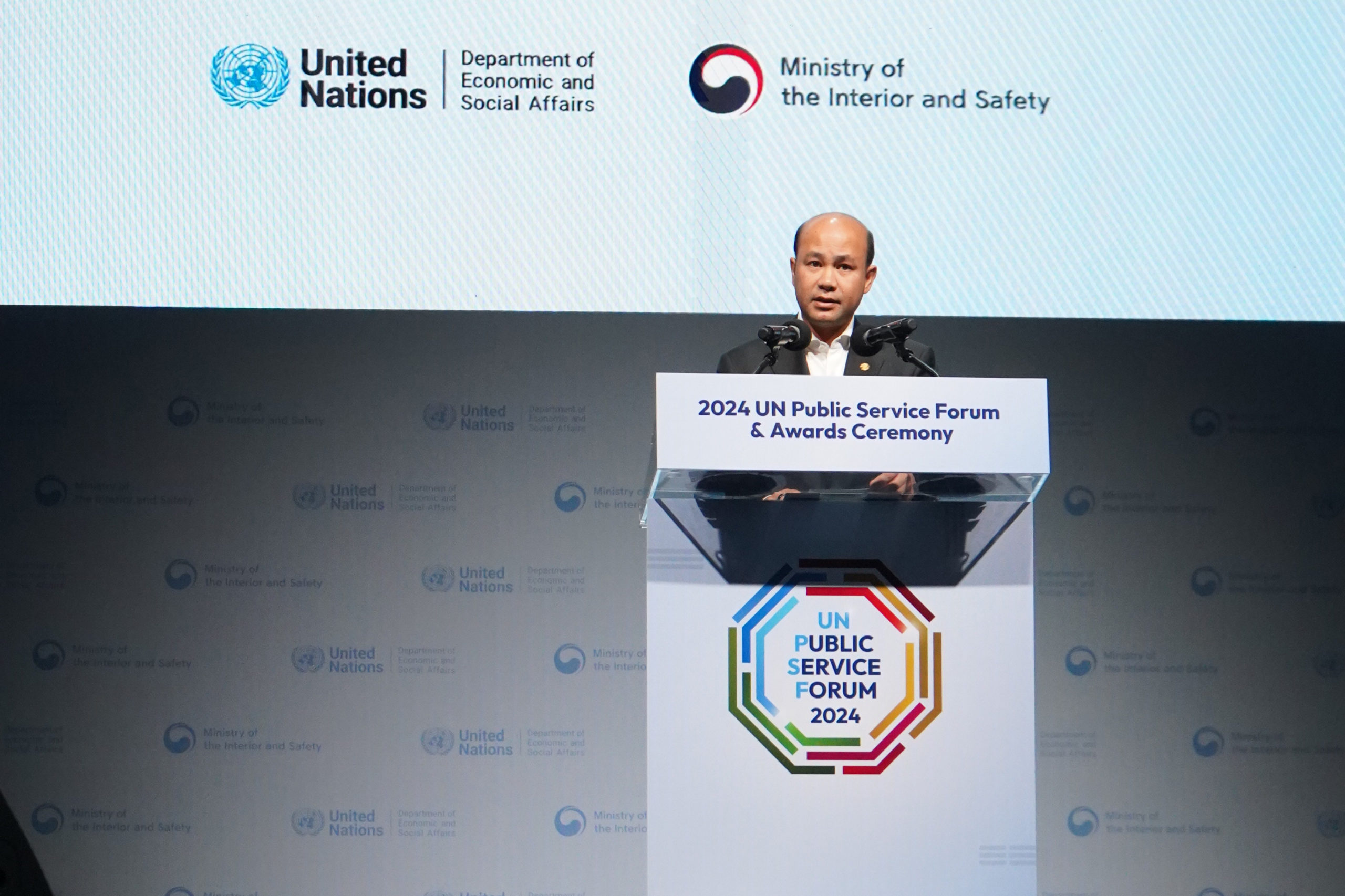 ឯកឧត្តមឧបនាយករដ្ឋមន្ត្រីហ៊ុន ម៉ានី ថ្លែងសារក្នុងវេទិកា UN Public Service នៅសាធារណរដ្ឋកូរ៉េ