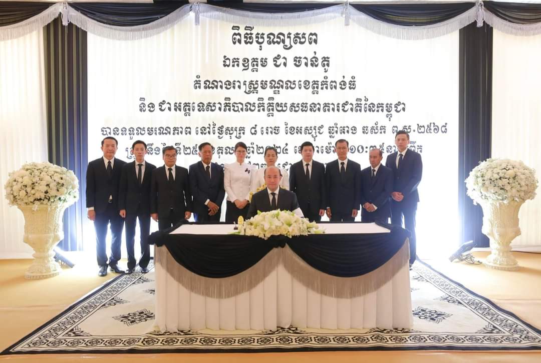 នៅរសៀលថ្ងៃសៅរ៍ ៩រោច ខែអស្សុជ ឆ្នាំរោង ឆស័ក ព.ស.២៥៦៨ ត្រូវនឹងថ្ងៃទី២៦ ខែតុលា ឆ្នាំ២០២៤ ឯកឧត្តម ហ៊ុន ម៉ានី ឧបនាយករដ្ឋមន្ត្រី រដ្ឋមន្ត្រីក្រសួងមុខងារសាធារណៈ បានអញ្ជើញដឹកនាំគណៈប្រតិភូ គោរពវិញ្ញាណក្ខន្ធសពឯកឧត្តម ជា ចាន់តូ អគ្គទេសាភិបាលកិត្តិយសធនាគារជាតិនៃកម្ពុជា ដែលបានទទួលមរណៈភាពកាលពីថ្ងៃនៅថ្ងៃសុក្រ ៨រោច ខែអស្សុជ ឆ្នាំរោង ឆស័ក ព.ស.២៥៦៨ ត្រូវនឹងថ្ងៃទី២៥ ខែតុលា ឆ្នាំ២០២៤ វេលាម៉ោង ១០:៣០នាទីព្រឹក ក្នុងជន្មាយុ ៧៣ឆ្នាំ ដោយរោគាពាធ។
