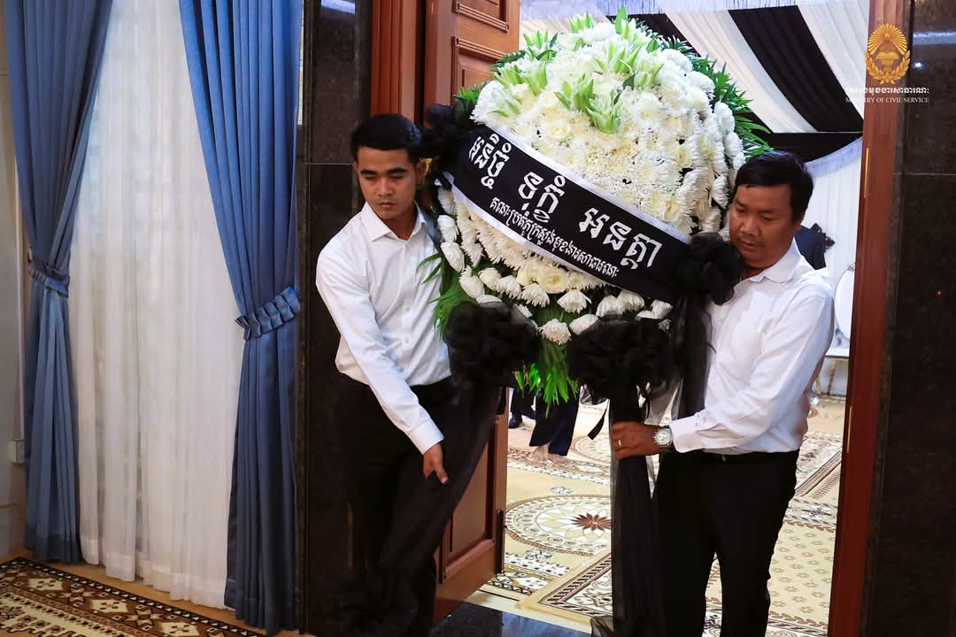 ឯកឧត្តមឧបនាយករដ្ឋមន្ត្រី ហ៊ុន ម៉ានី ព្រមទាំងប្រតិភូទាំងអស់​ រួមទាំងថ្នាក់ដឹកនាំ​ និងមន្ត្រីរាជការនៃក្រសួងមុខងារសាធារណៈ សូមចូលរួមរំលែកមរណទុក្ខដ៏សែនក្រៀមក្រំបំផុតជាមួយ ឯកឧត្តម រស់ សូផាន់ និងលោកជំទាវ ព្រមទាំងក្រុមគ្រួសារទាំងមូល និងសូមឧទ្ទិសបួងសួងដល់ដួងវិញ្ញាណក្ខន្ធឧបាសិកា ជង សាវ៉េន ឆាប់បានយោនយកកំណើតកើតក្នុងសុគតិភពគ្រប់ៗជាតិ កុំបីឃ្លៀងឃ្លាតឡើយ៕