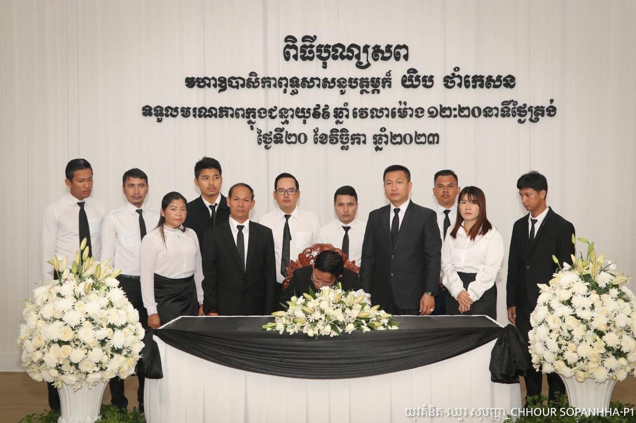 ឯកឧត្តម ឈួរ សុបញ្ញា រដ្ឋលេខាធិការក្រសួងមុខងារសាធារណៈ តំណាងដ៏ខ្ពស់ខ្ពង់ឯកឧត្តម ហ៊ុន ម៉ានី រដ្ឋមន្រ្តីក្រសួងមុខងារសាធារណៈបានអញ្ជើញដឹកនាំប្រតិភូគោរពវិញ្ញាណក្ខន្ធមហាឧបាសិកាពុទ្ធសាសនូបត្ថម្ភក៍ យិប ថាំកេសន ត្រូវជាម្តាយក្មេករបស់សម្តេចពិជ័យសេនា ទៀ បាញ់ ឧត្តមក្រុមប្រឹក្សាផ្ទាល់ព្រះមហាក្សត្រ នៃព្រះរាជាណាចក្រកម្ពុជា